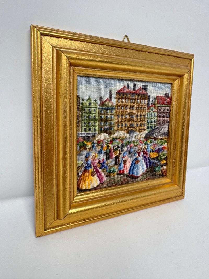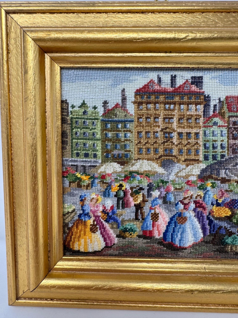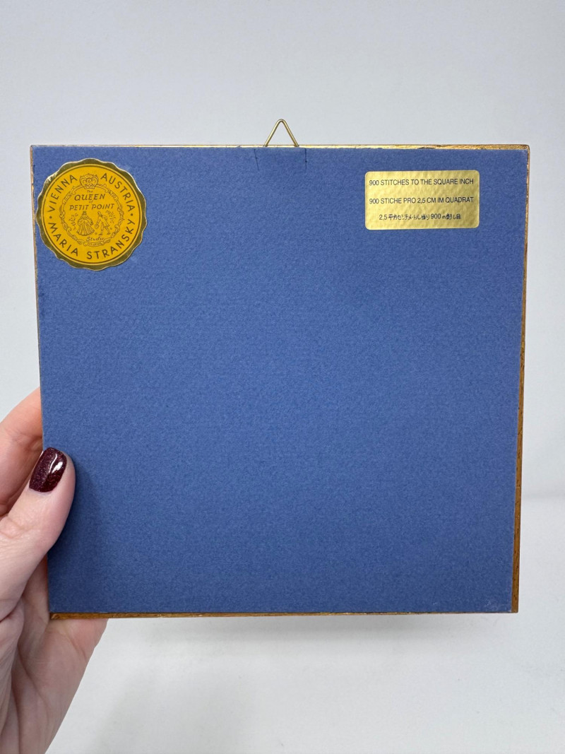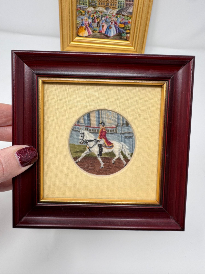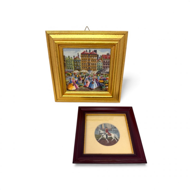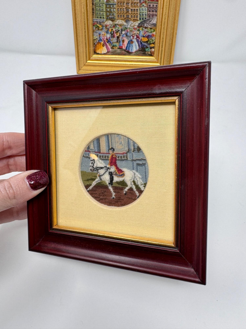 Maria Stransky Vienna Petit Point Art – 2 Framed Hand-Stitched Pieces.