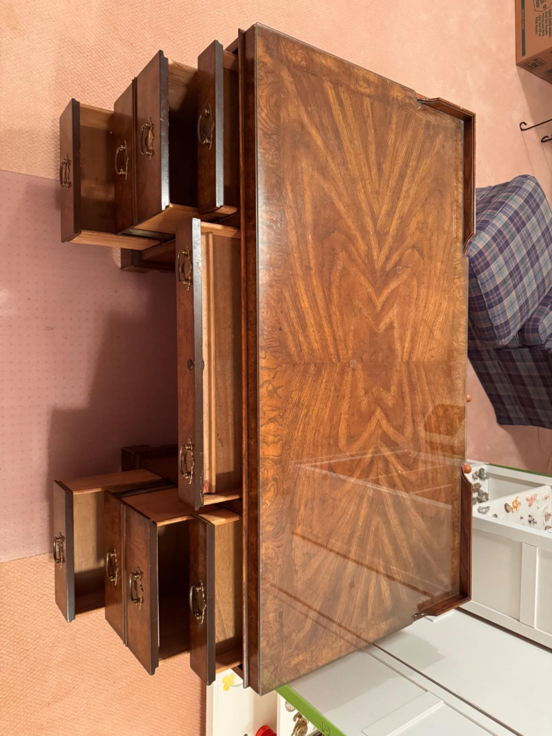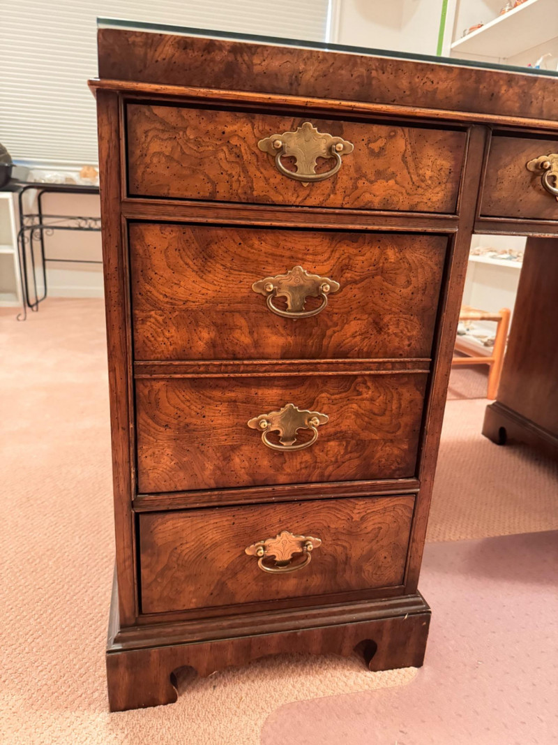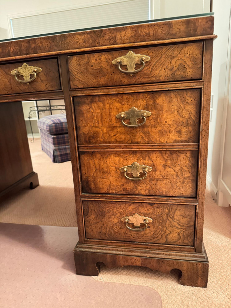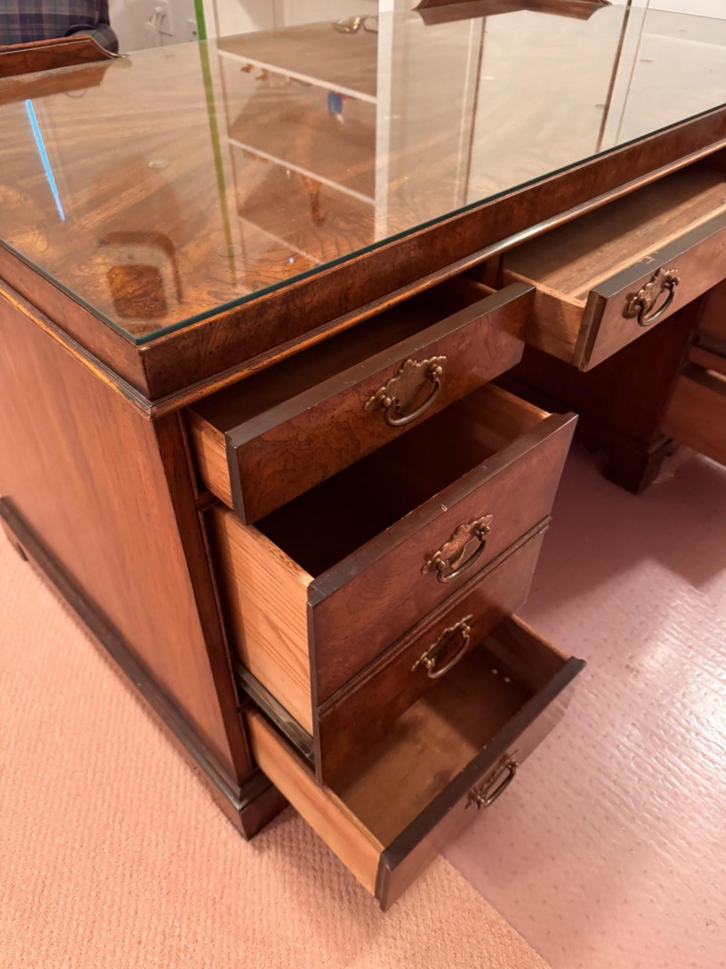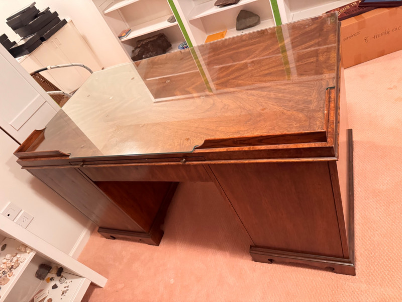 National Mt. Airy Georgian-Style Desk w/ Glass Top.
