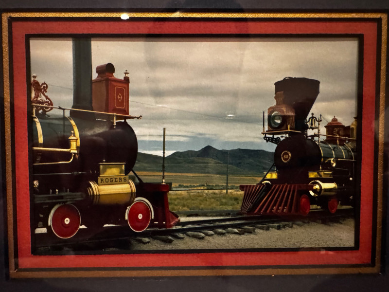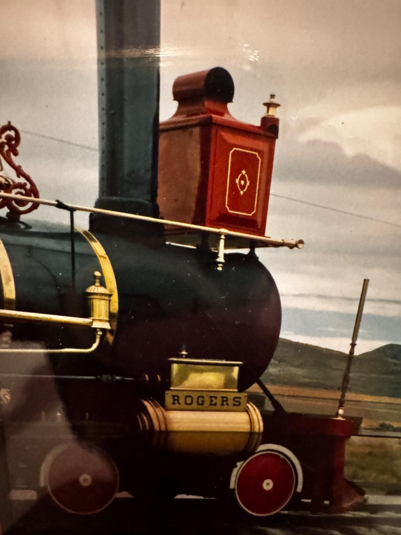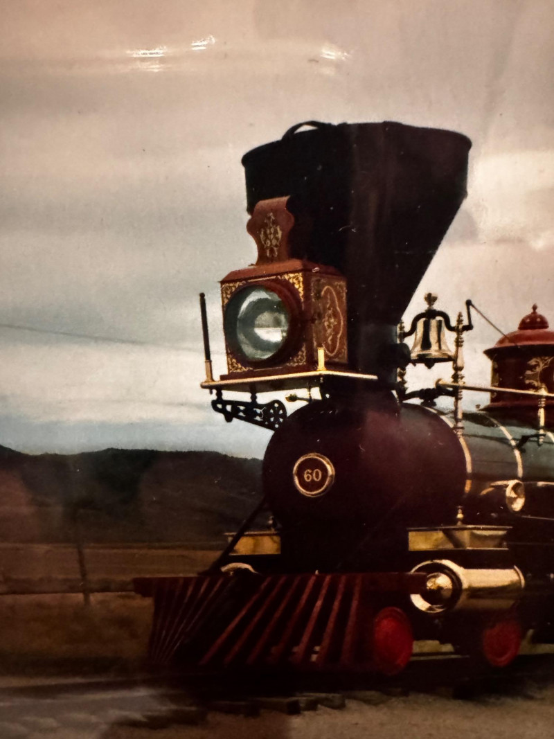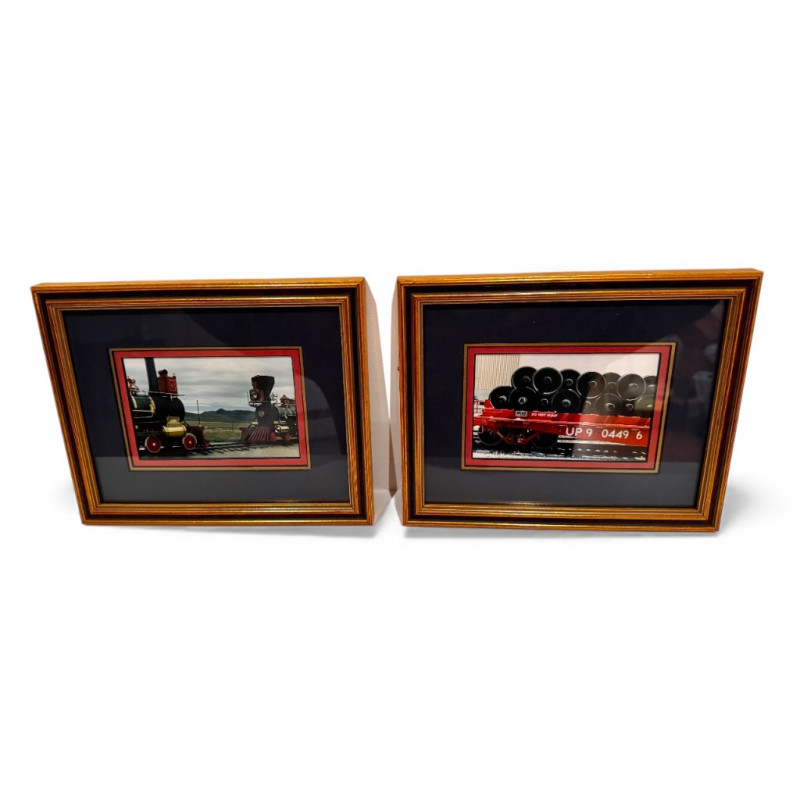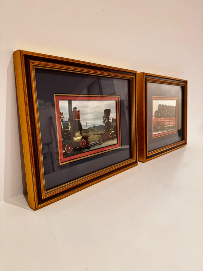 Pair of Framed Train Photographs – Historic Steam Engine & Freight Car.