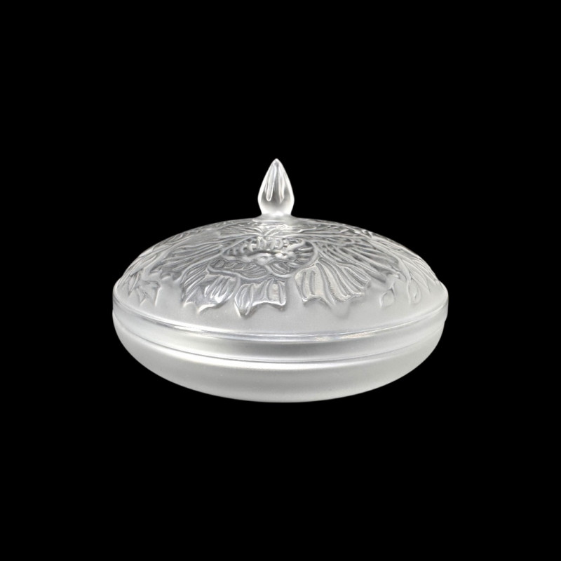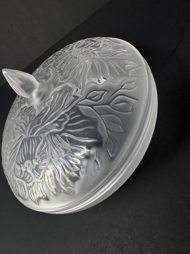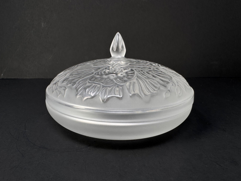 Lalique France Frosted Crystal Floral Lidded Powder Box.