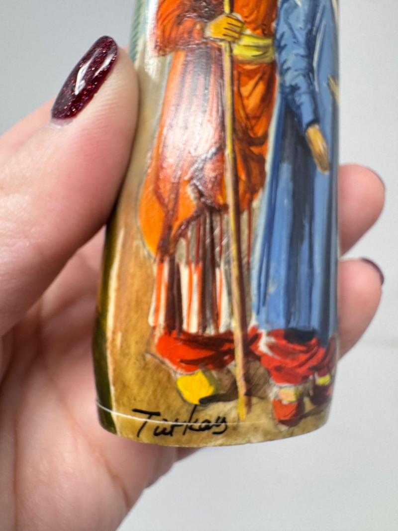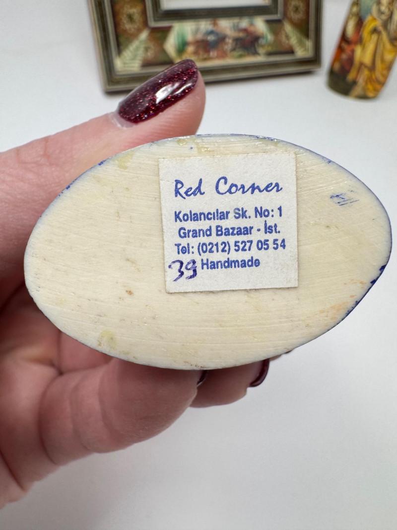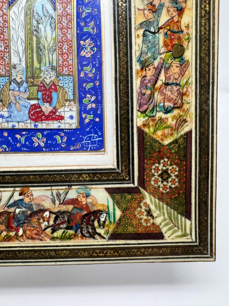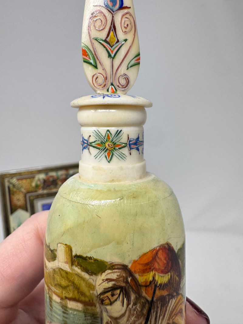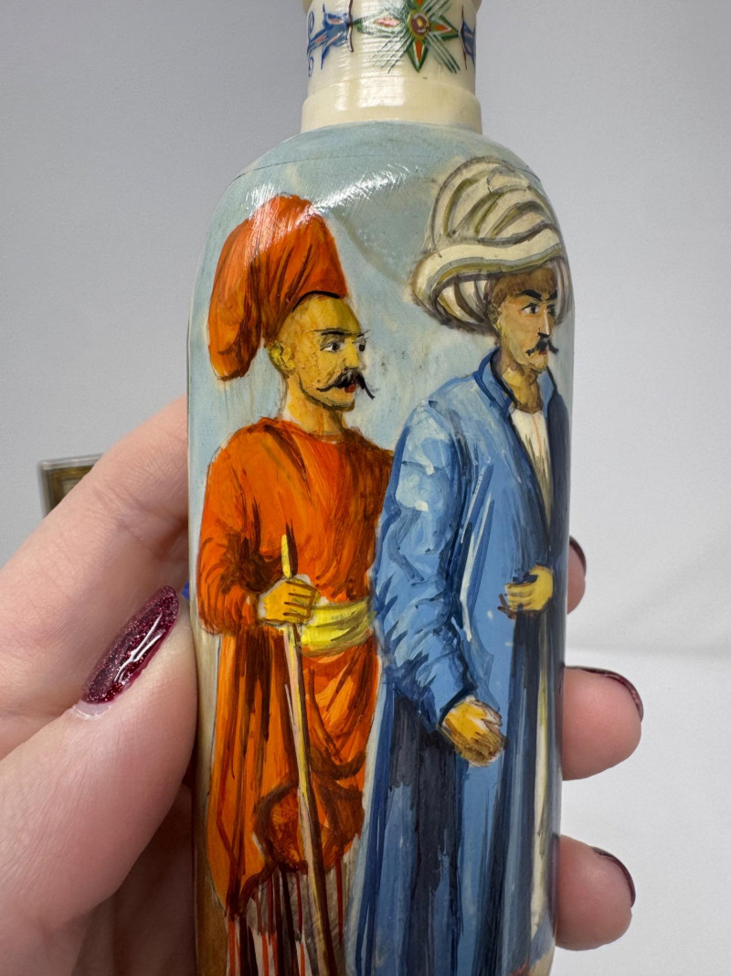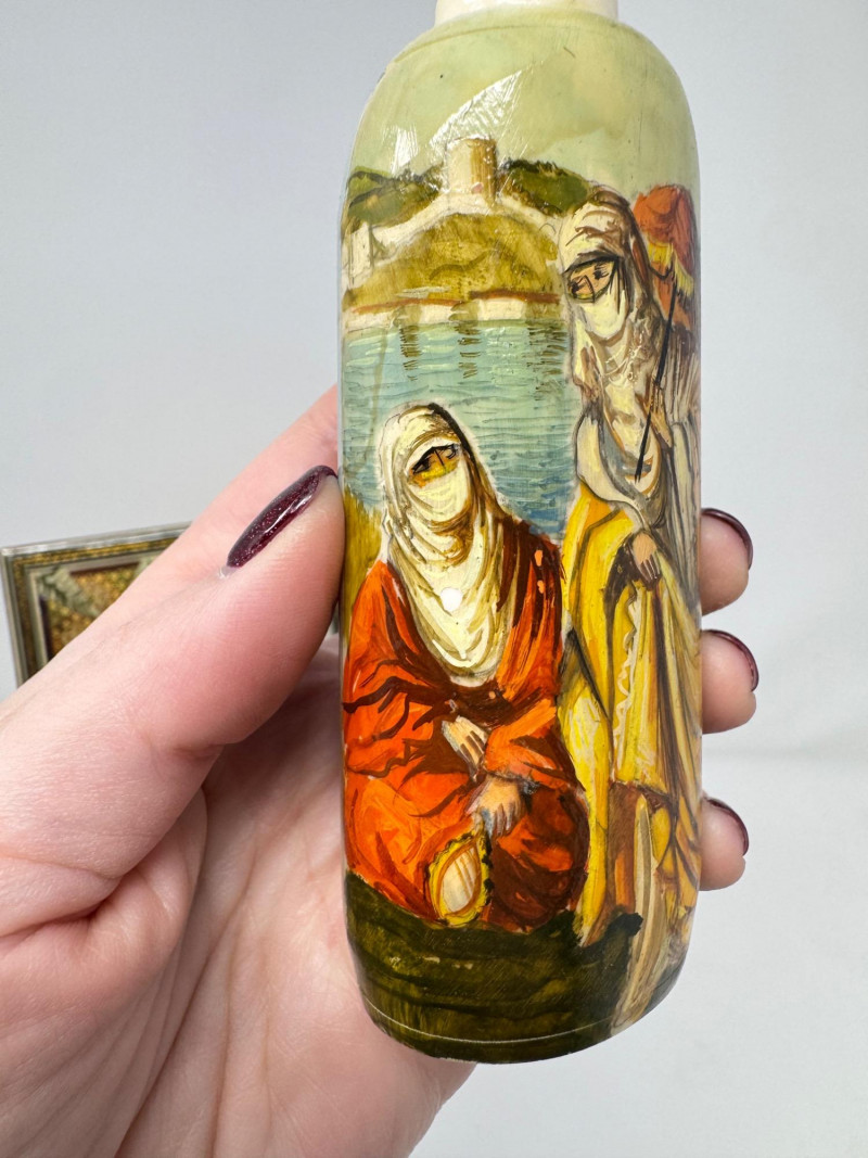 Lot # 117 - Handmade Framed Persian Artwork + 2 Hand-Painted Turkish Bottles