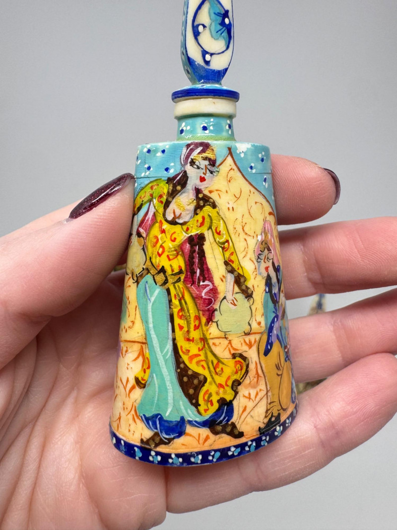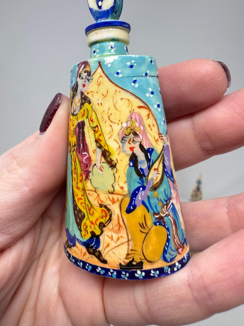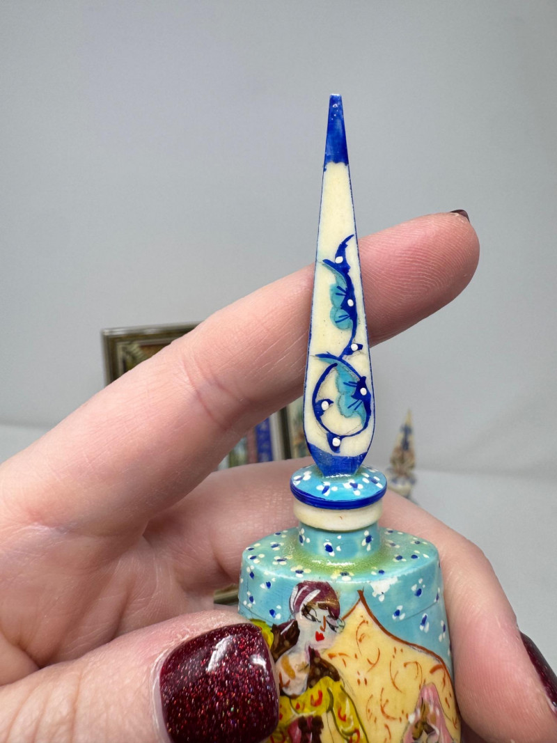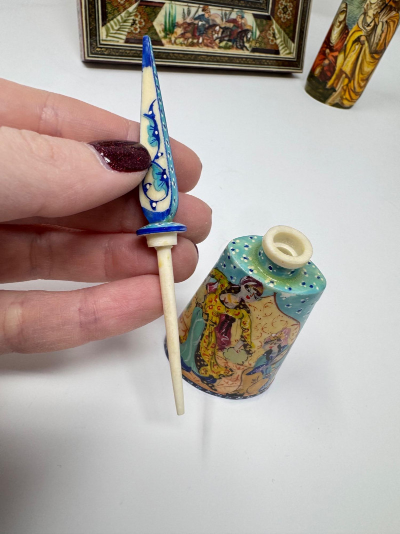 Handmade Framed Persian Artwork + 2 Hand-Painted Turkish Bottles.