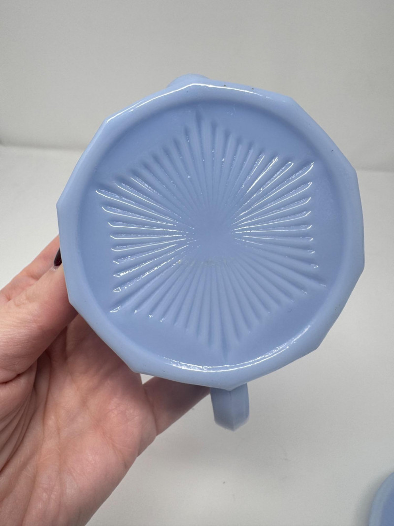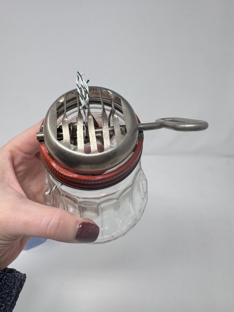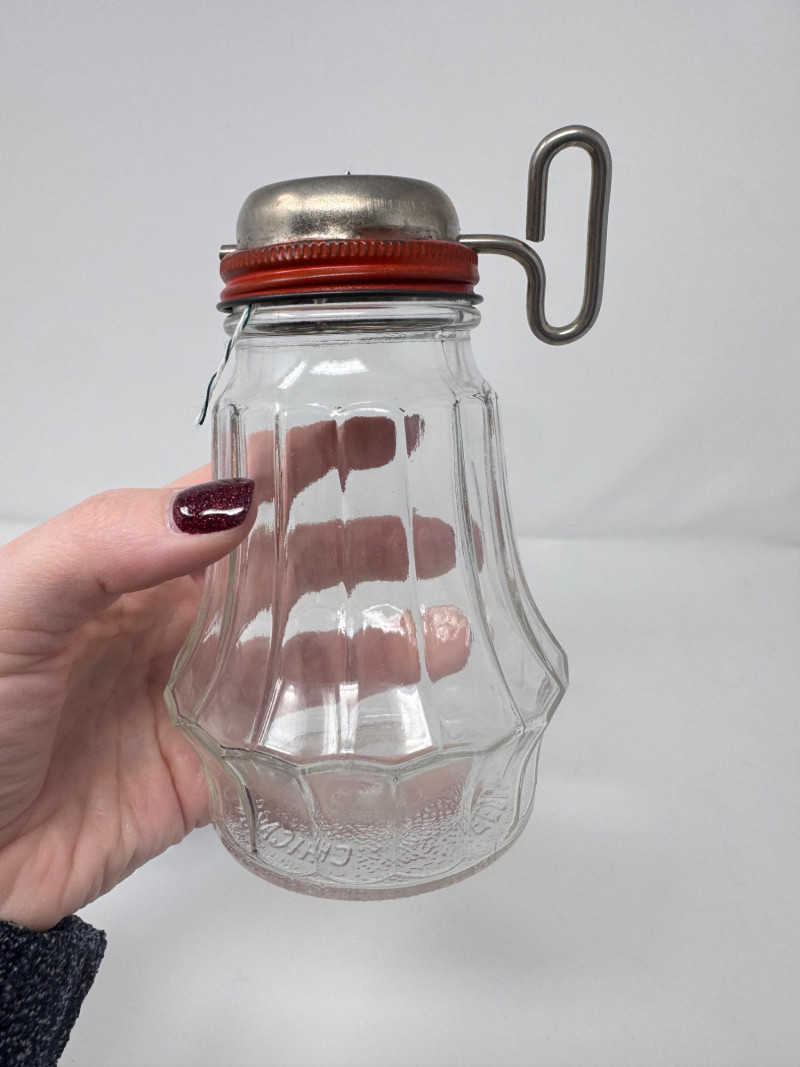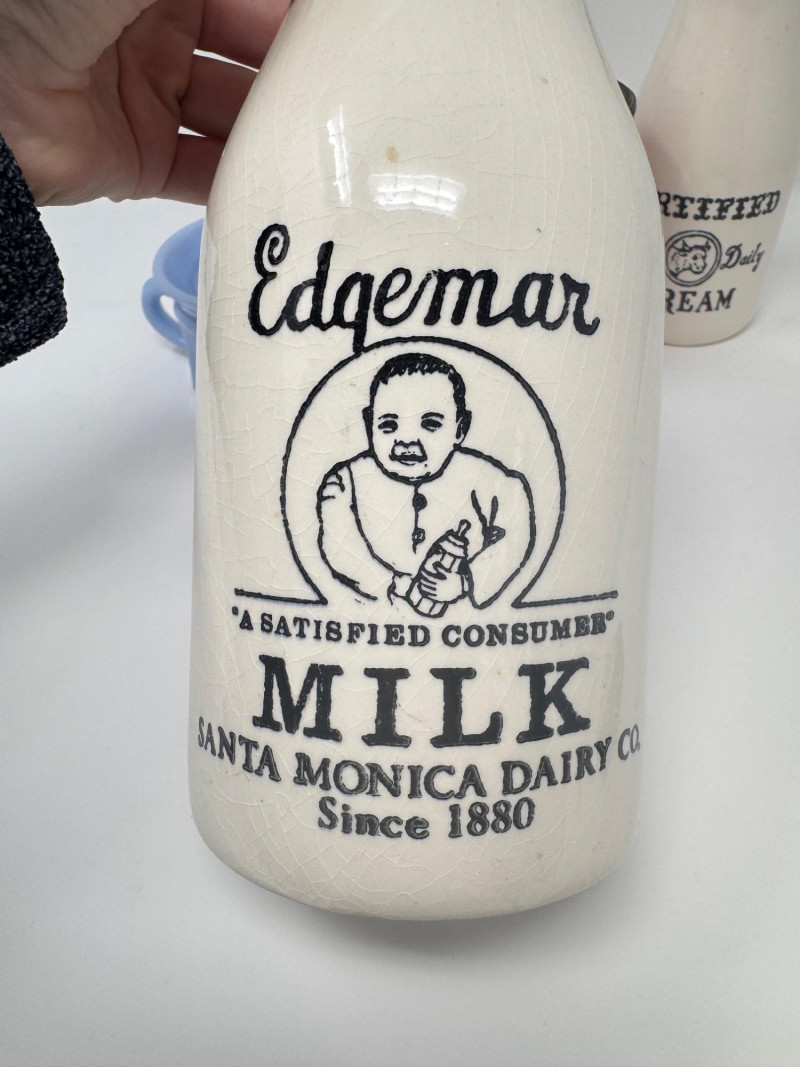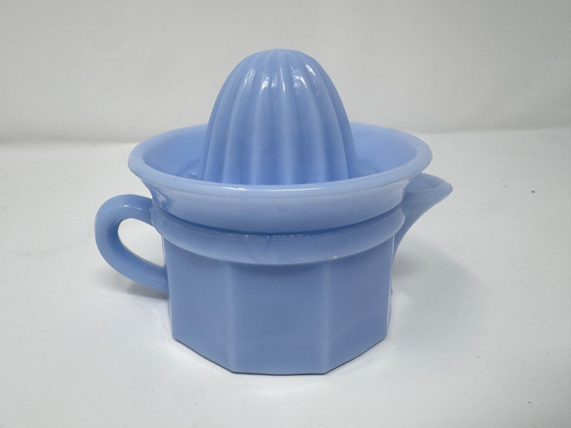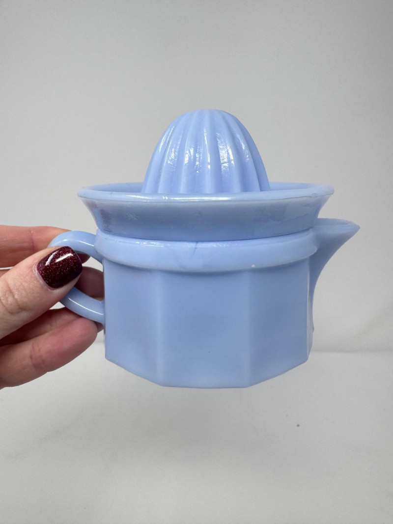 Vintage Delphite Juicer, Milk Bottles, Rumford Tin, & Chopper Grinder.