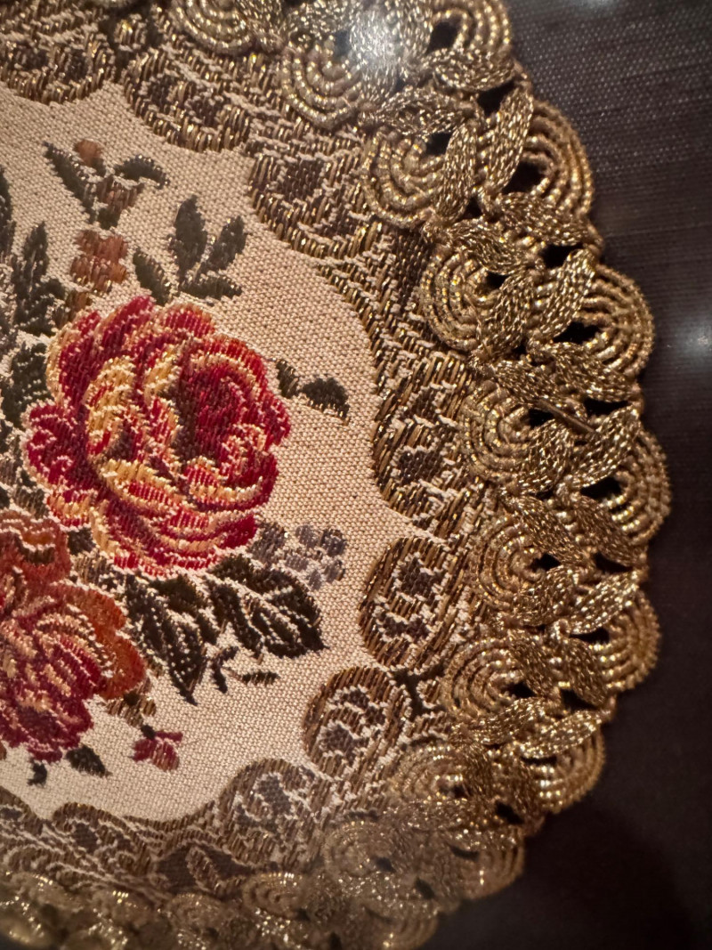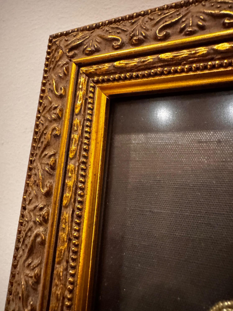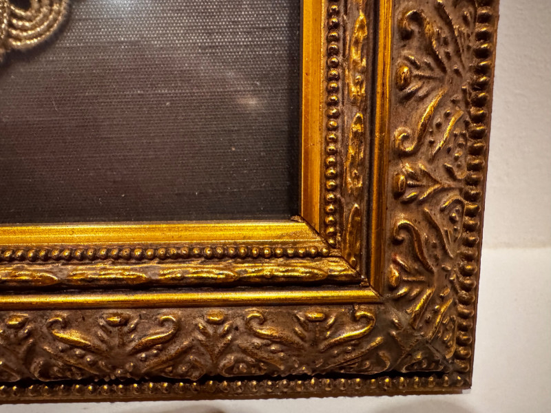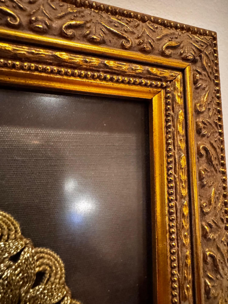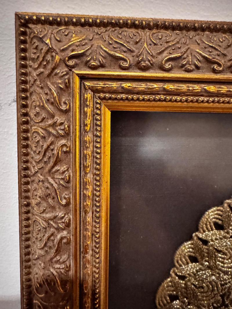 Framed Floral Embroidery Artwork – Ornate Gold Frame.