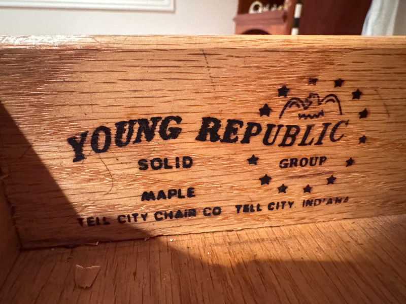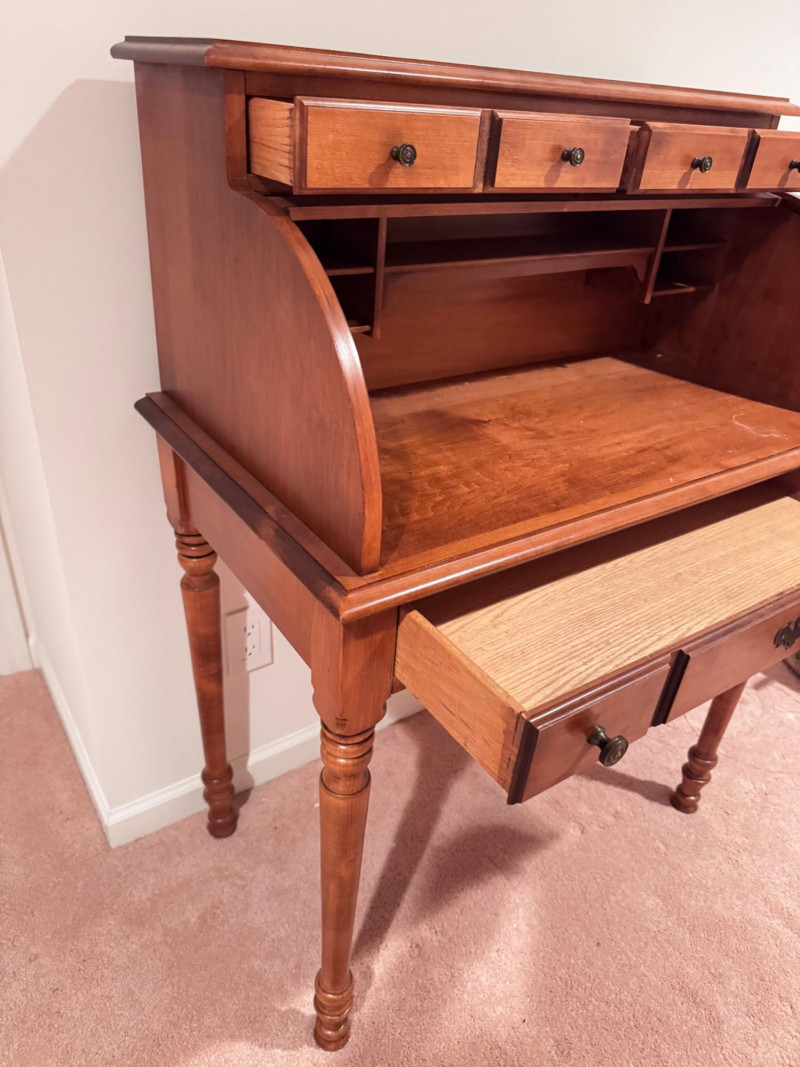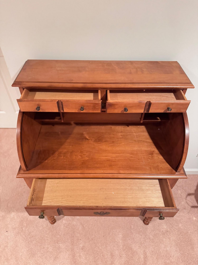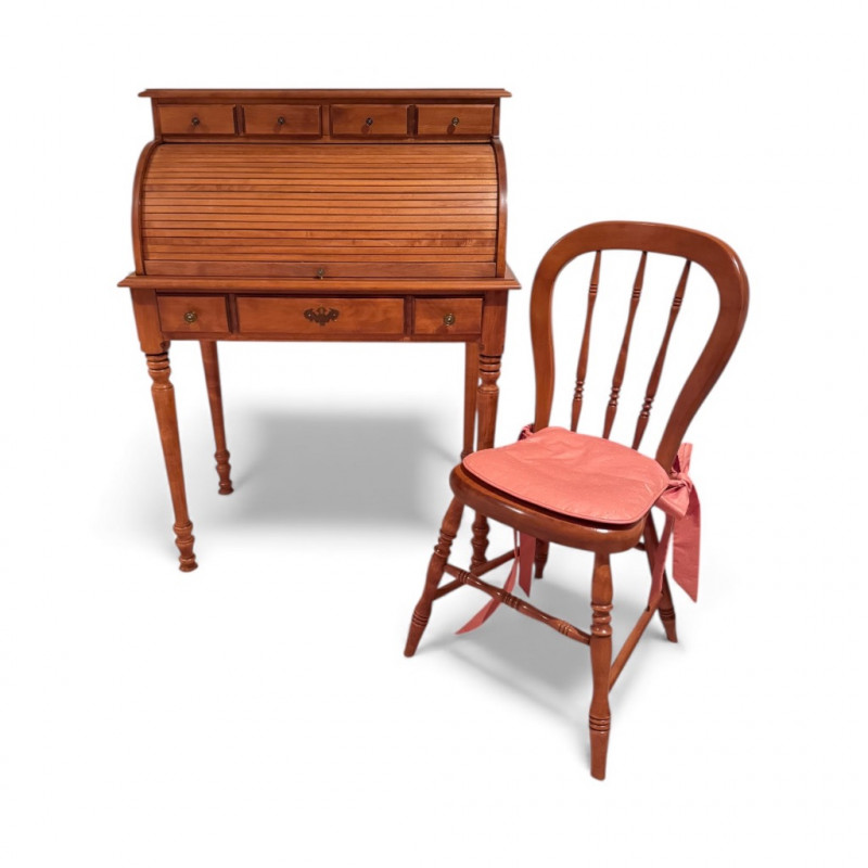 Vintage Tell City Young Republic Maple Roll-Top Desk + Chair.