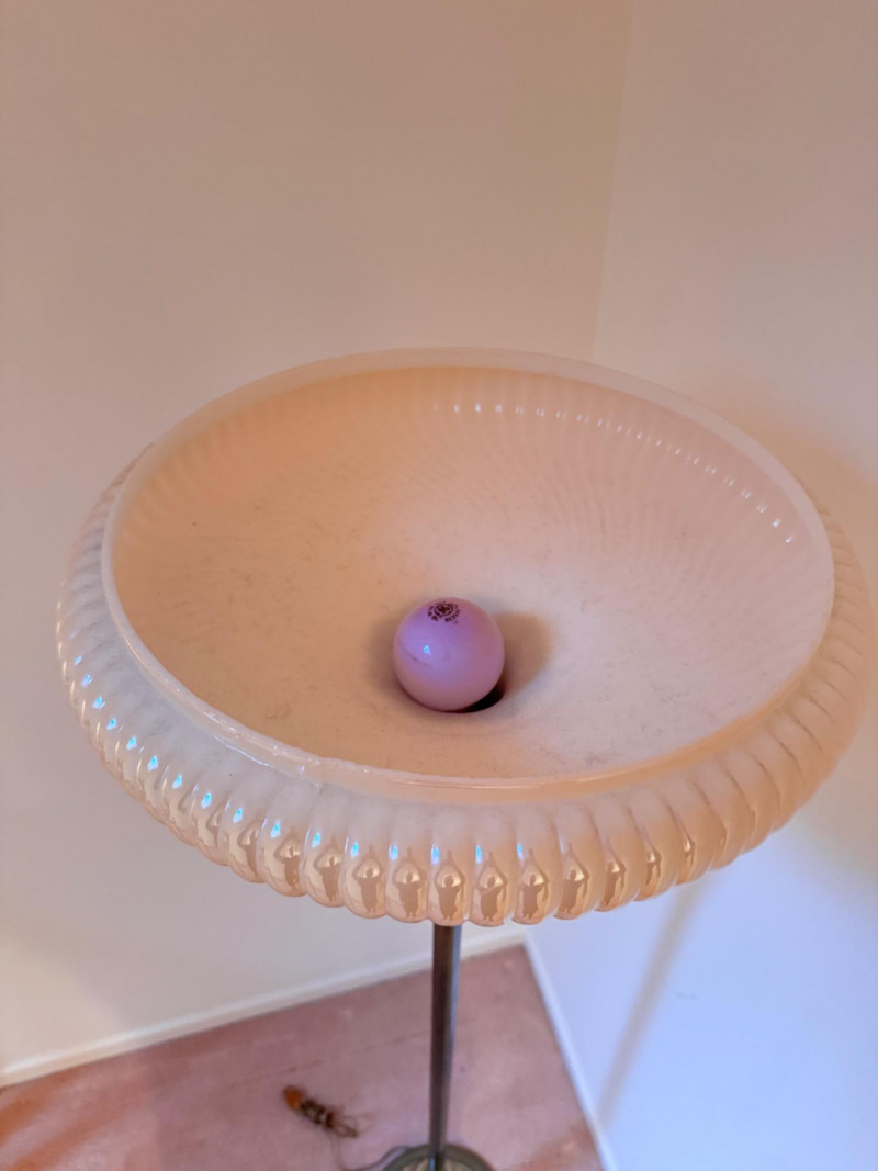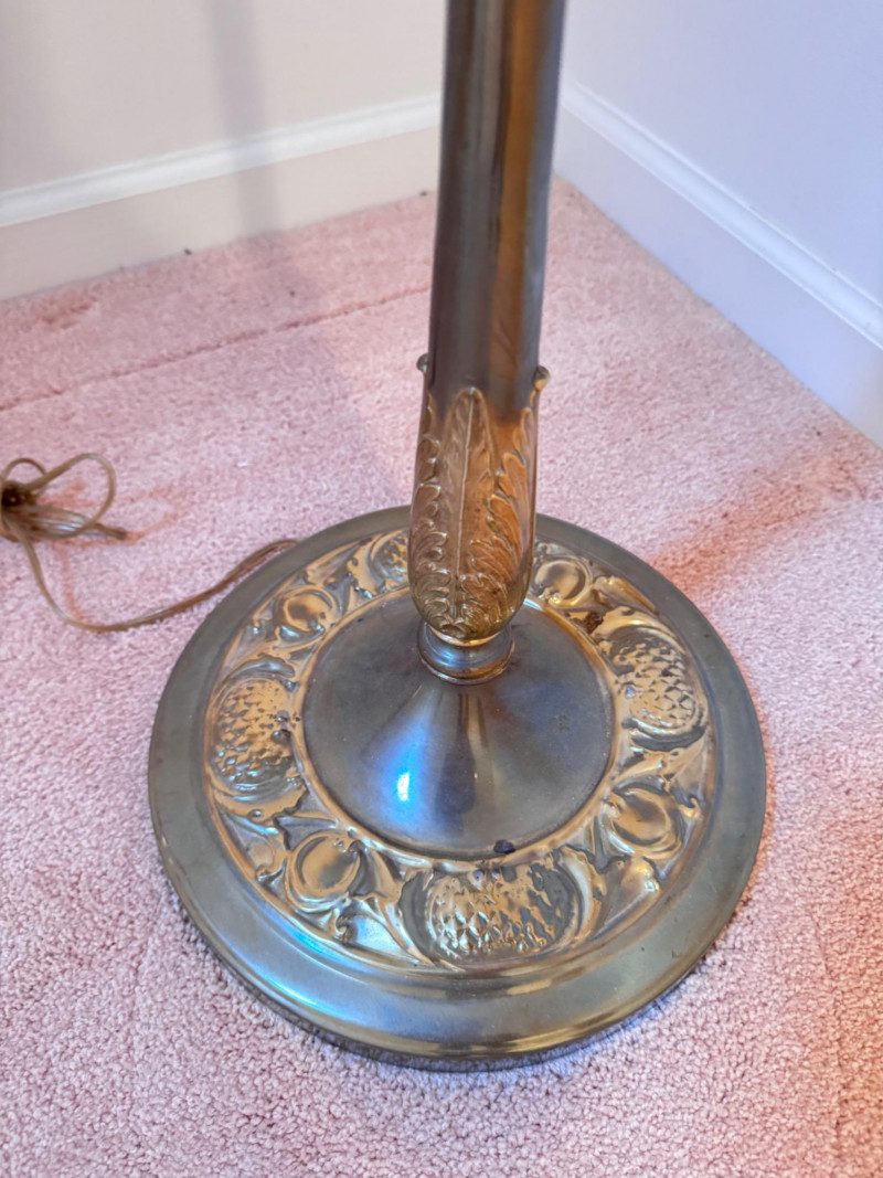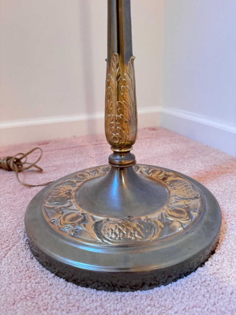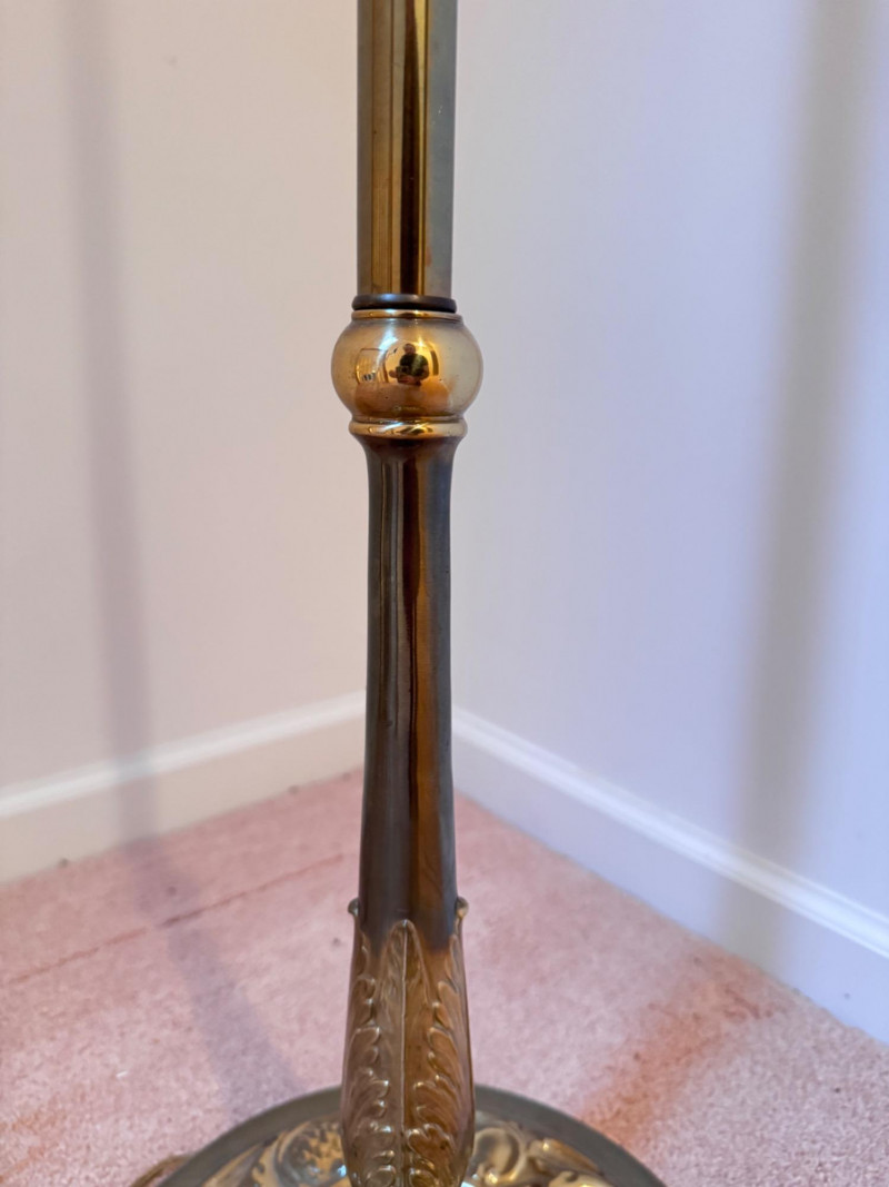 Vintage Brass Torchiere Floor Lamp w/ Frosted Glass Shade. • Stands 65” tall