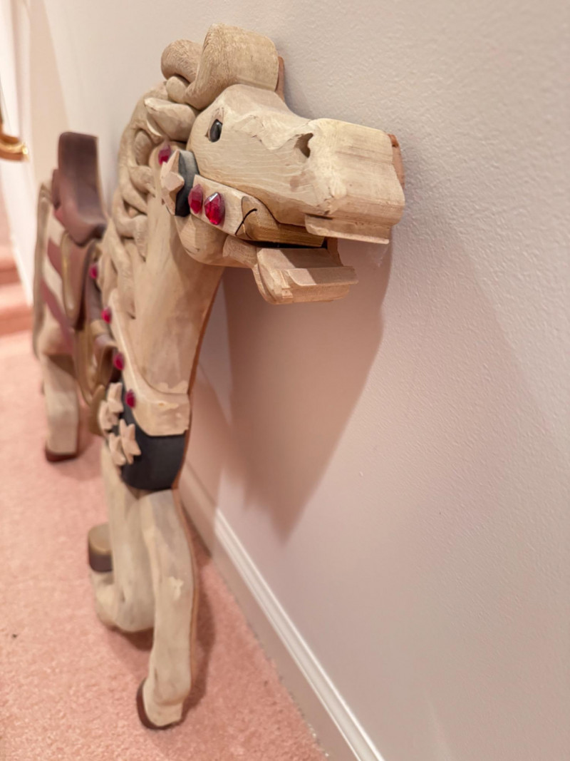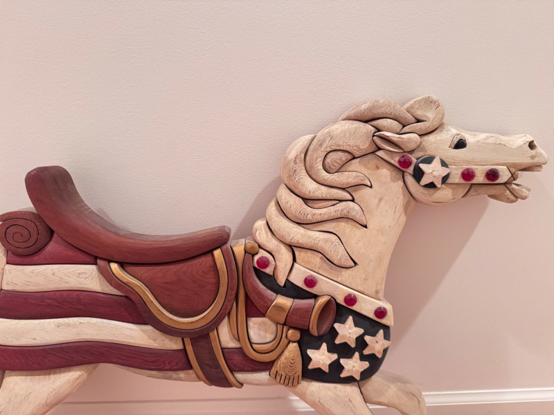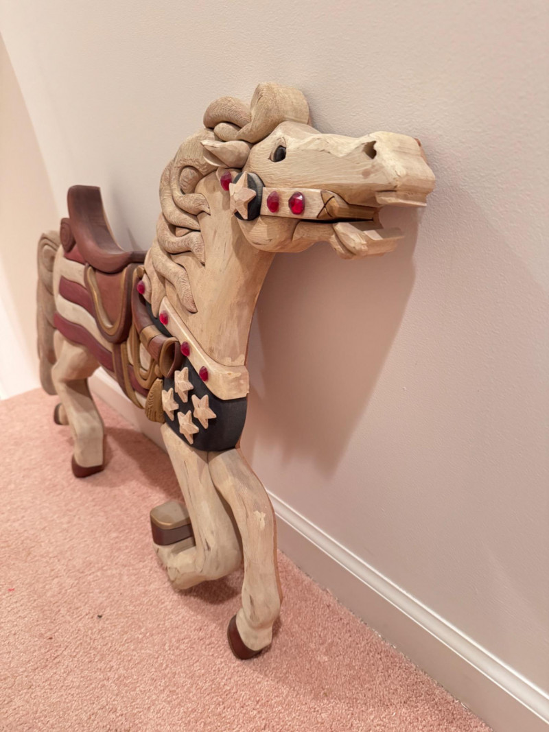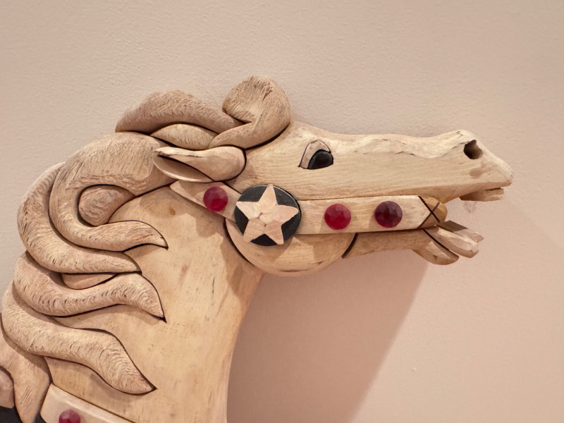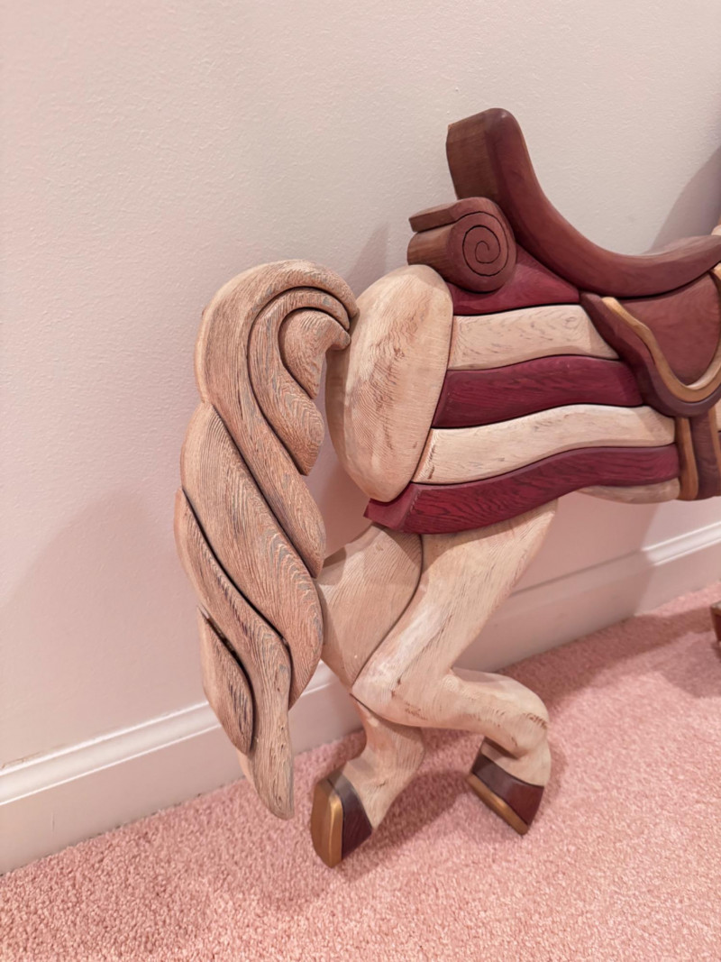 Handcrafted Wooden Horse Wall Decor by Tom Banwell, 1984.