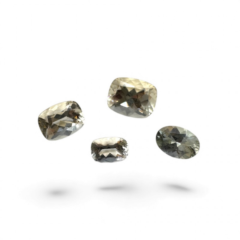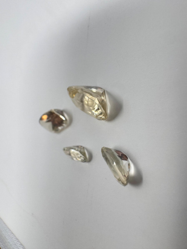 Set of 4 Faceted Spodumene Gemstones – 2.2ct, 1.4ct, 0.70ct & 0.35ct. Group of four loose spodumene gemstones (identified by homeowner’s note). Faceted cuts with mixed yellow and green tones. Approx. carat weights: Largest stone: 2.2 ct (yellow hue) Second stone: 1.4 ct (yellow hue) Third stone: 0.70 ct (oval cut, green hue) Fourth stone: 0.35 ct (green hue) Nice brilliance and color variation across the group. General Disclaimer:All items are sold as-is. Jewelry, metals, gemstones, and other minerals have not been tested unless specifically noted. No guarantees are made regarding metal content, gemstone type, or origin. Refunds will not be issued based on identification, classification, or perceived quality.