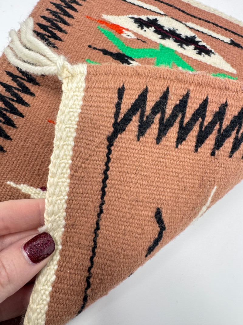Handwoven Navajo Mini Wool Rug – 11” x 13.5”.