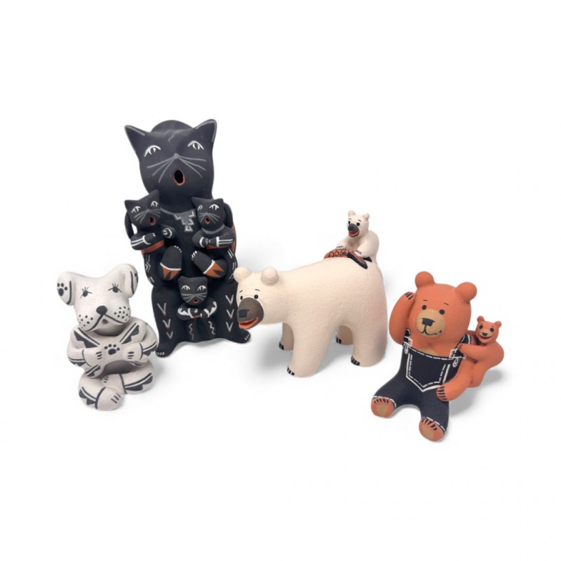 Pueblo Storyteller Pottery Figures – Tsosie Cat & Dog + Herrera Bears.