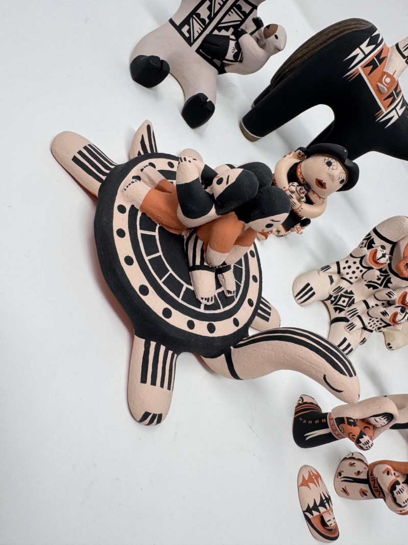 Native American Storyteller Pottery Figurines – Signed Cochiti & Jemez.