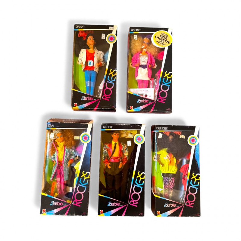 Barbie and the Rockers Doll Set – 5 Dolls, 1980s, Boxes Included.