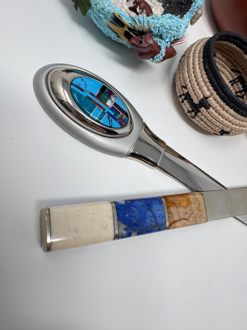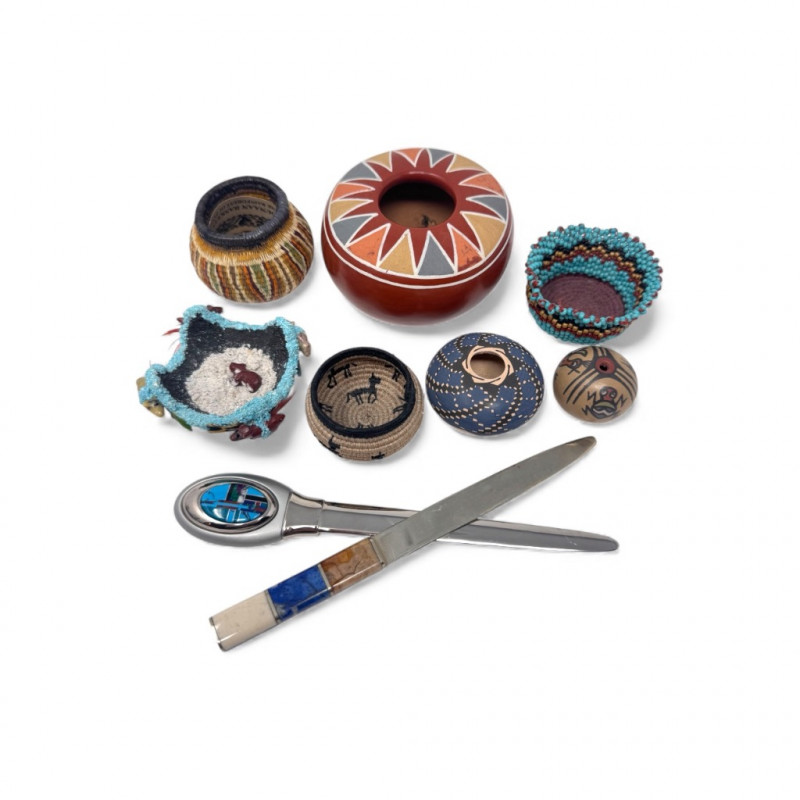 Mini Native American Pottery, Baskets & Stone-Handle Letter Openers +