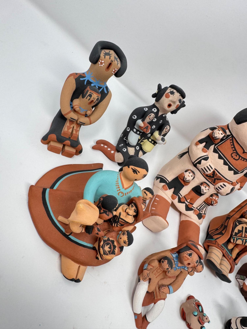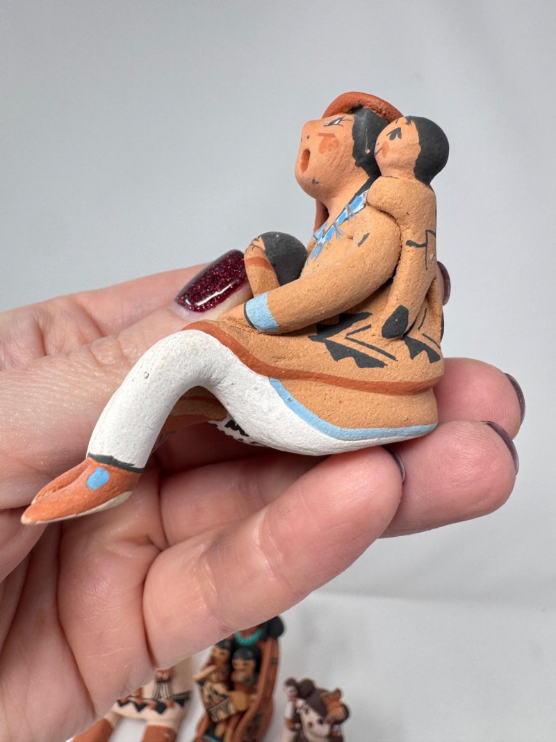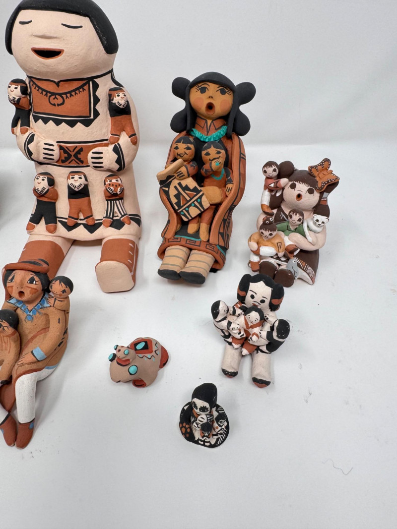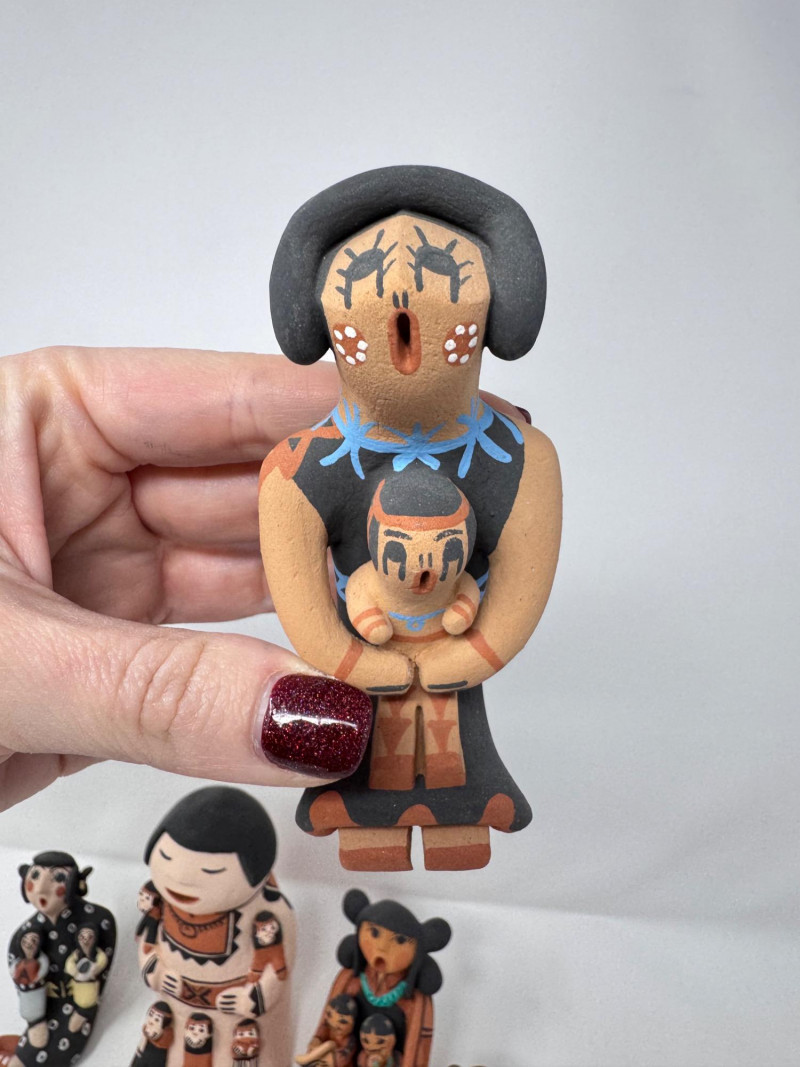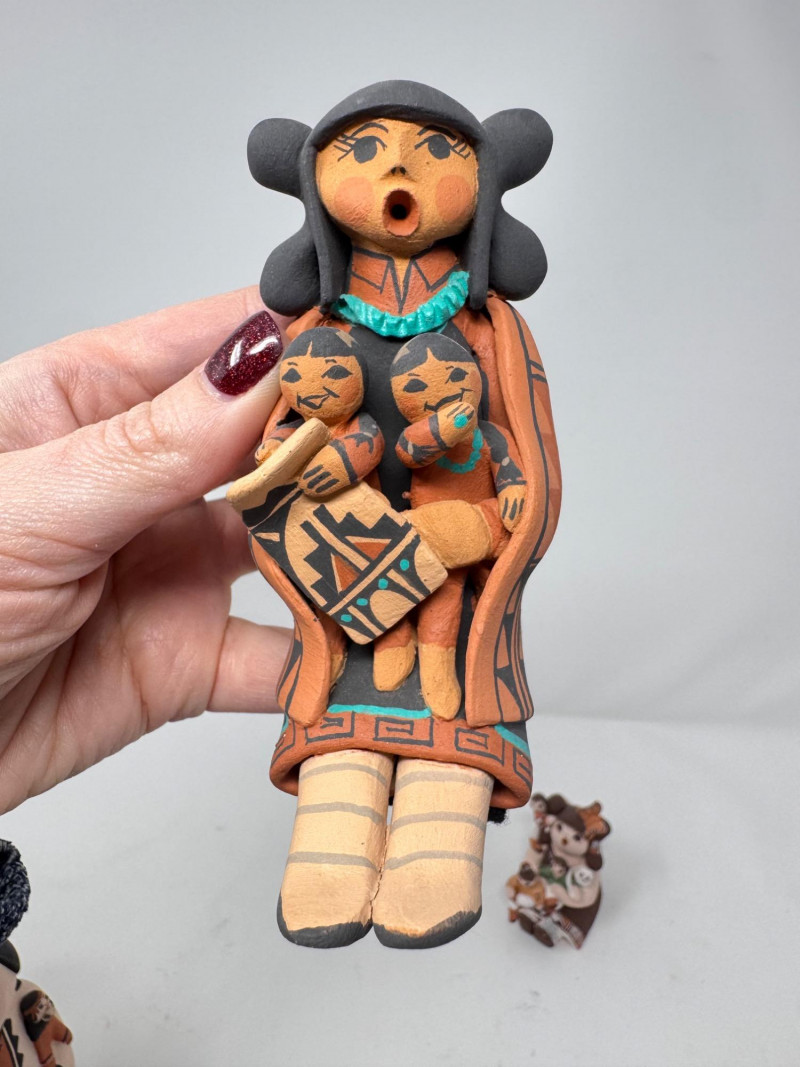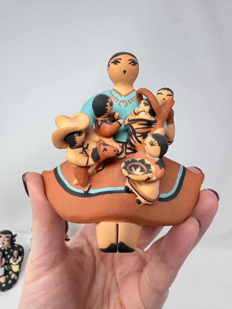 Lot # 201 - Native Storyteller Pottery Figurines + Floral Vase – Signed Pieces
