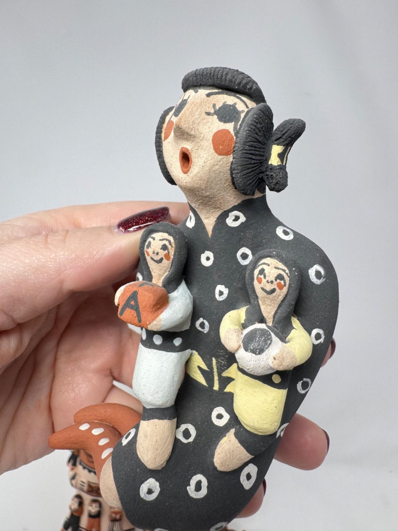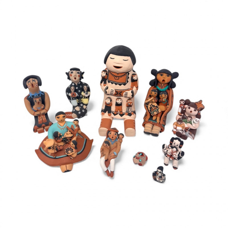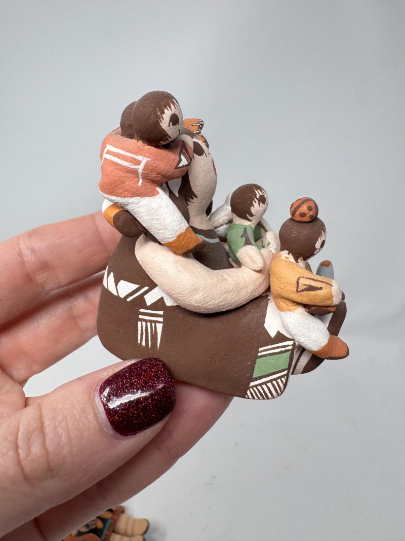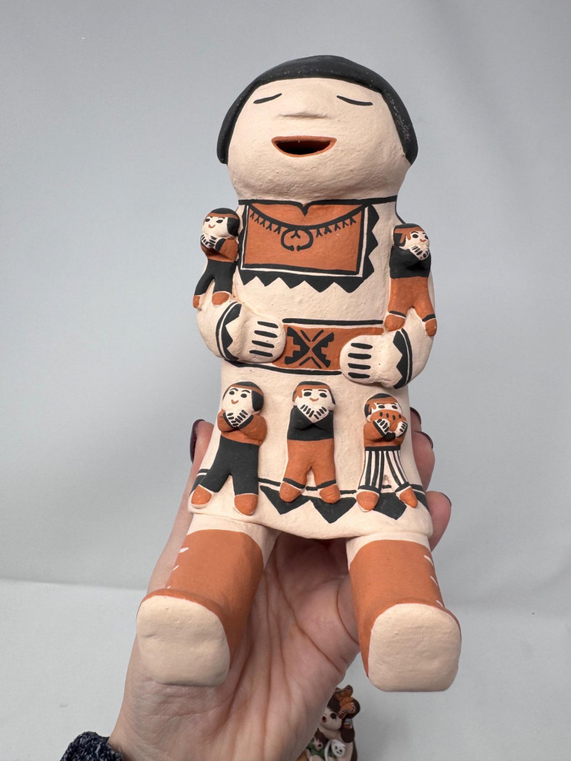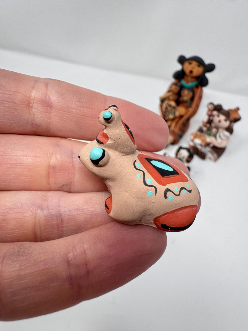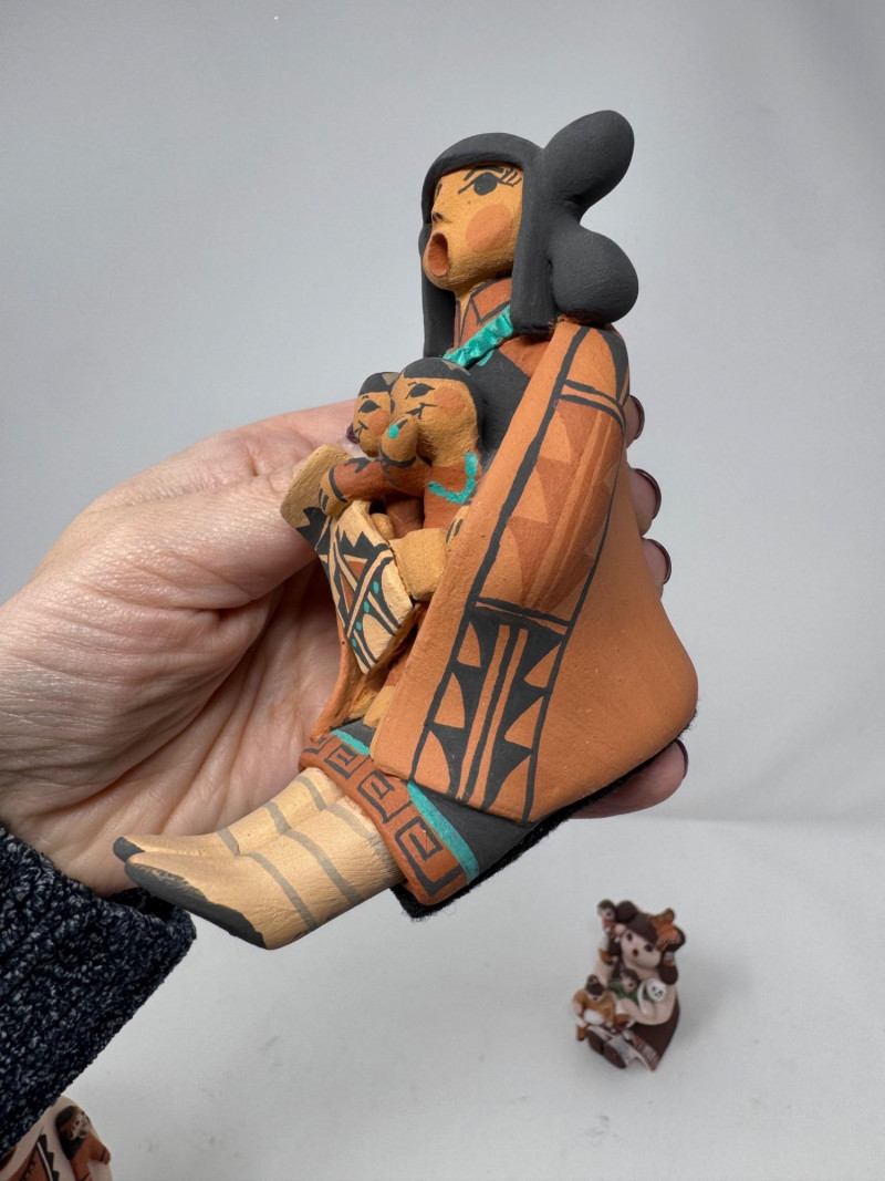 Lot # 201 - Native Storyteller Pottery Figurines + Floral Vase – Signed Pieces