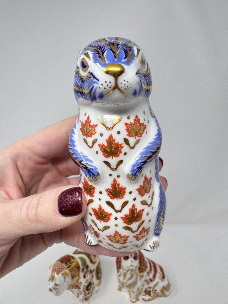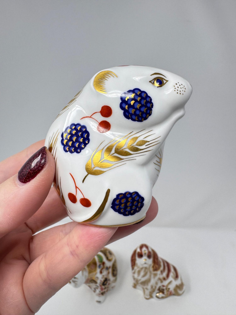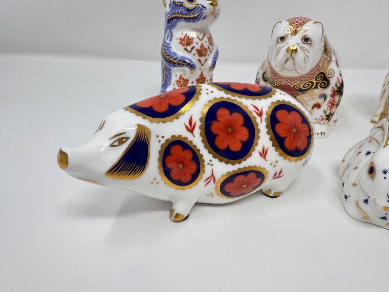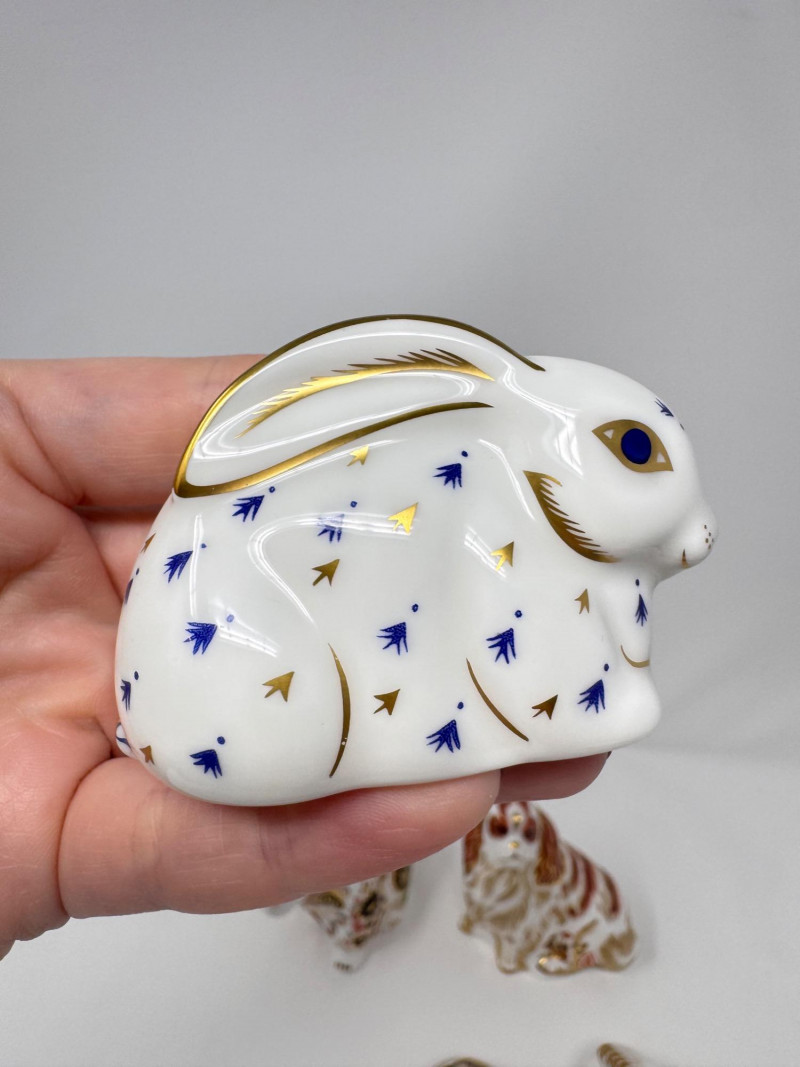 Lot # 202 - Royal Crown Derby Paperweight Figurines - Spaniel, Bulldog, Rabbit +