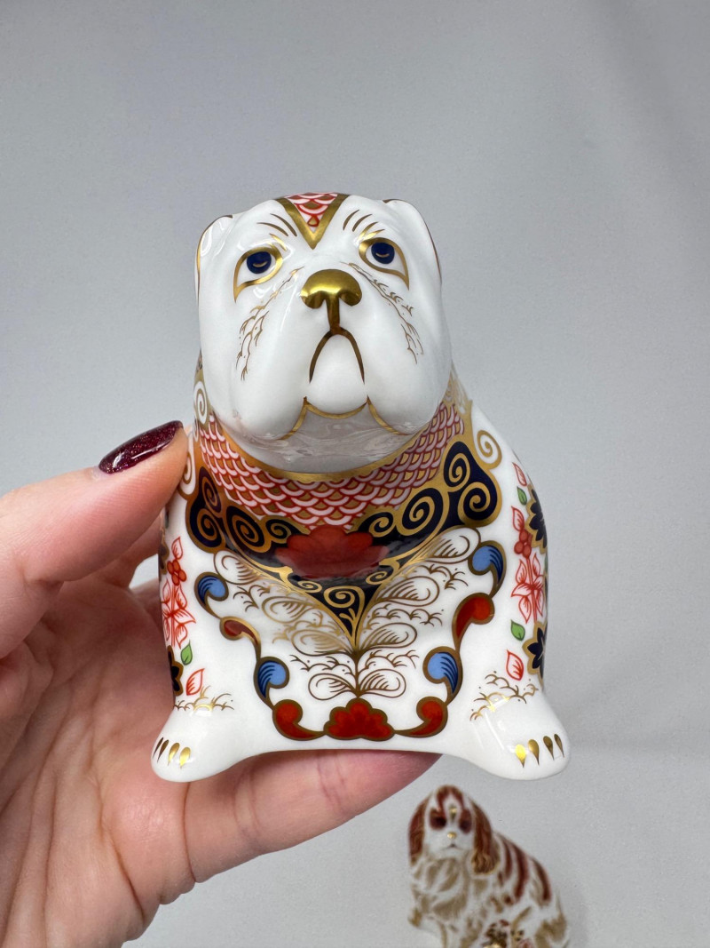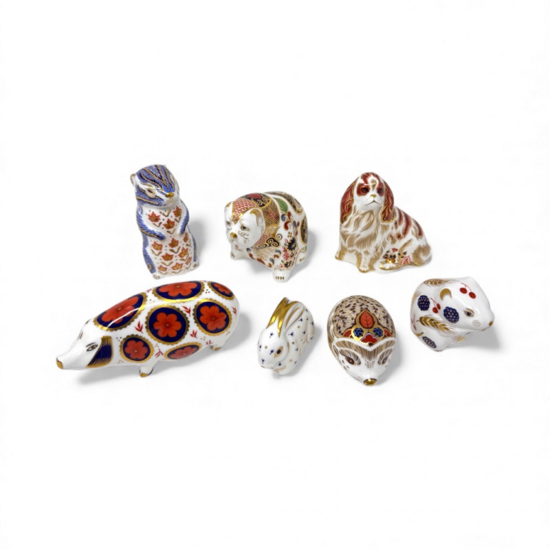 Royal Crown Derby Paperweight Figurines - Spaniel, Bulldog, Rabbit + Group of 7 Royal Crown Derby English bone china paperweights Includes: