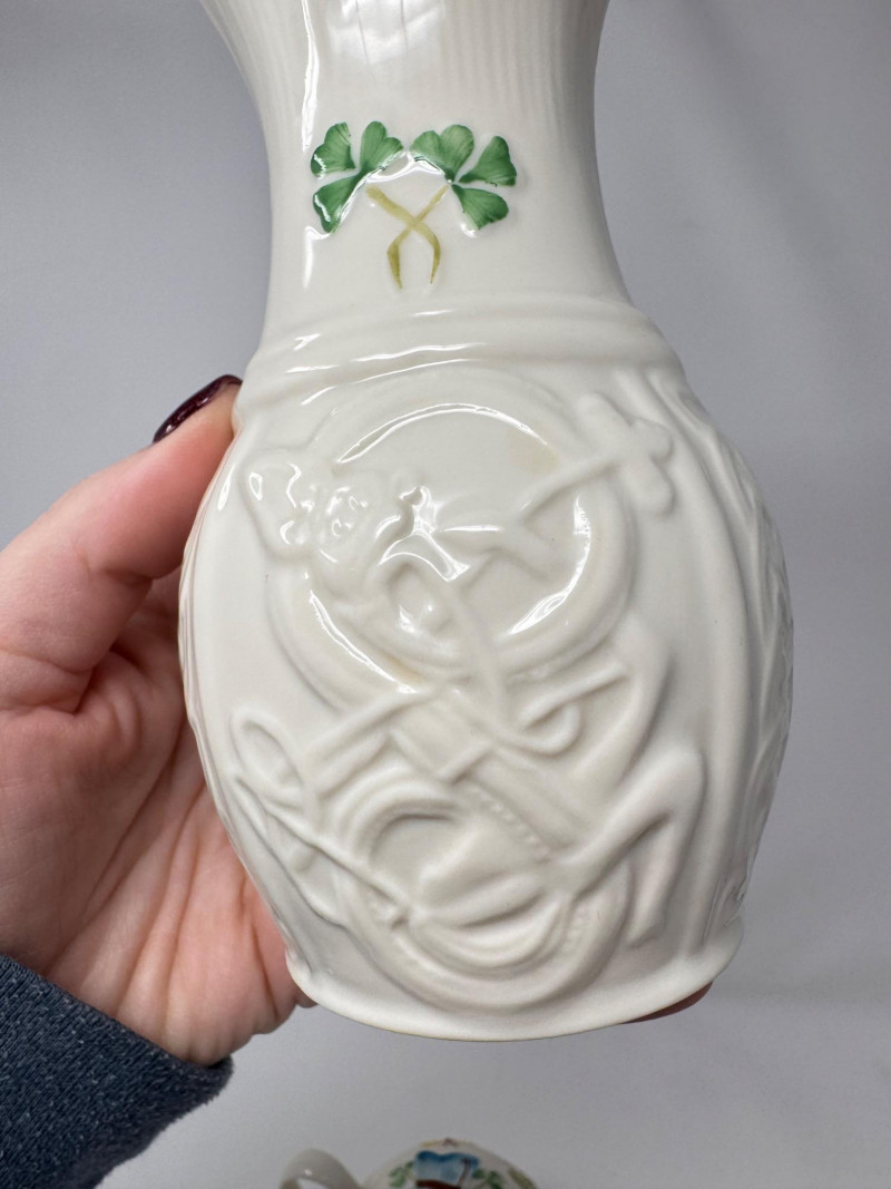 Lot # 203 - Belleek Irish Porcelain – Iona Vase, Teapot-for-One & Animal Figurines