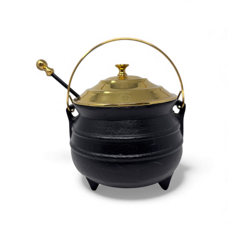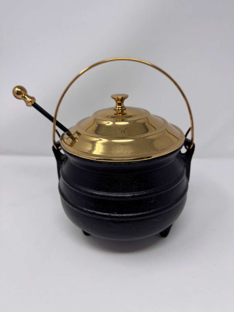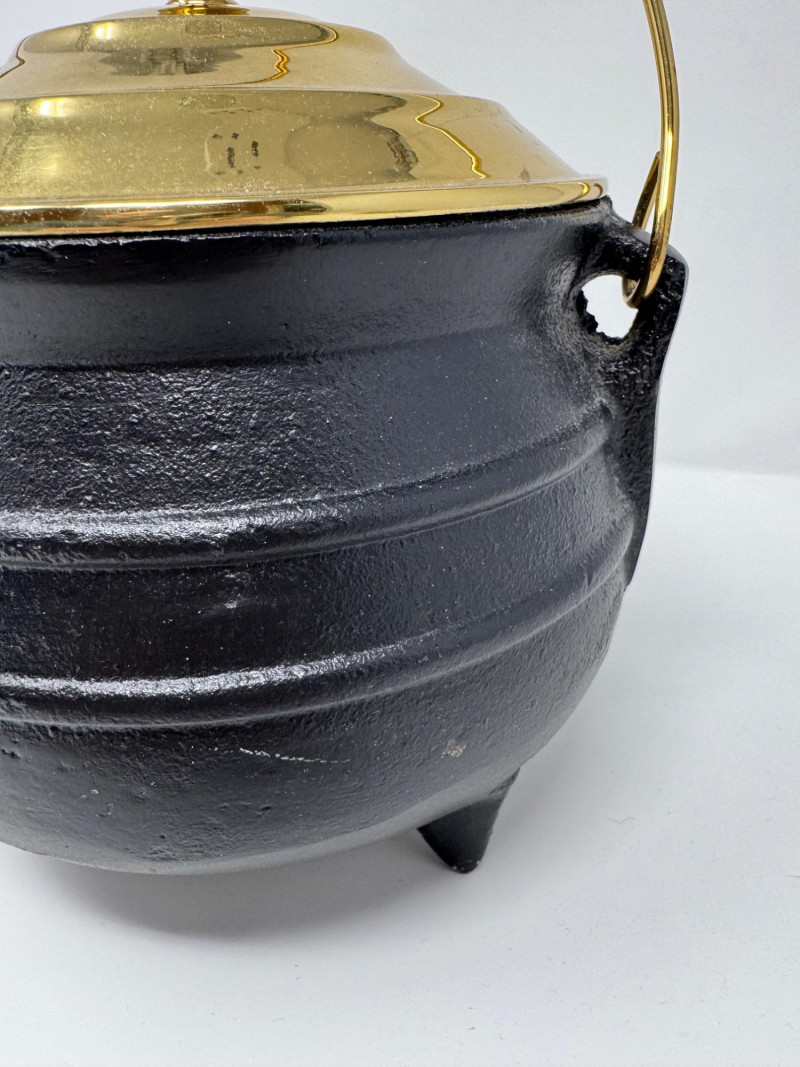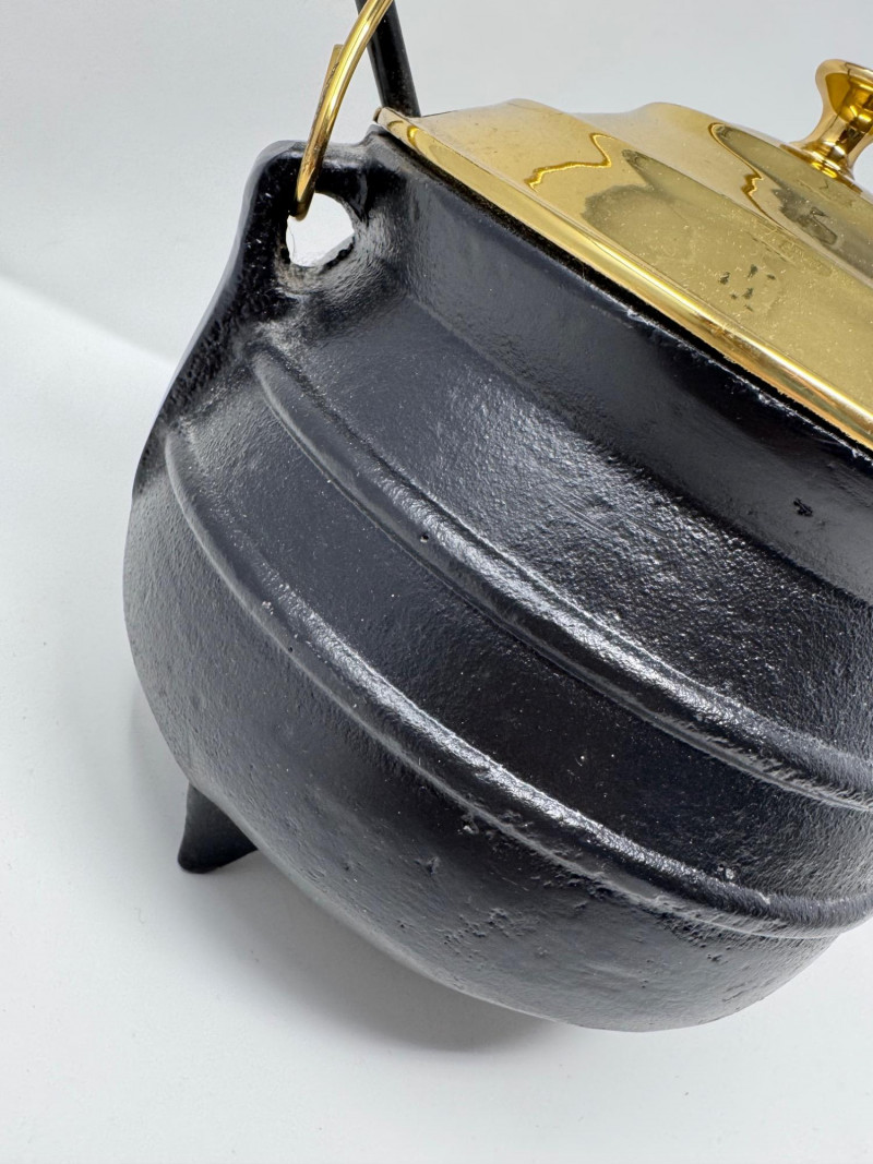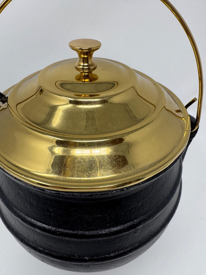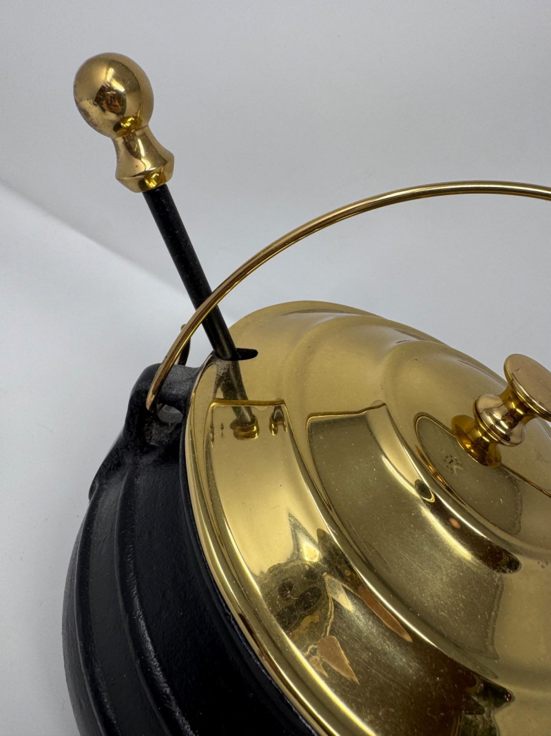 Cast Iron Fireplace Firestarter Pot w/ Brass Lid & Wick Rod.