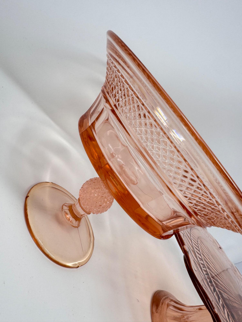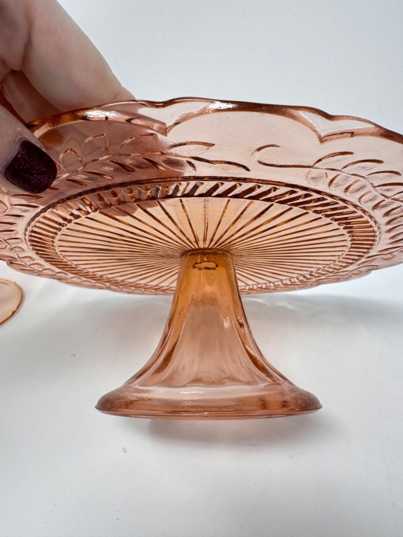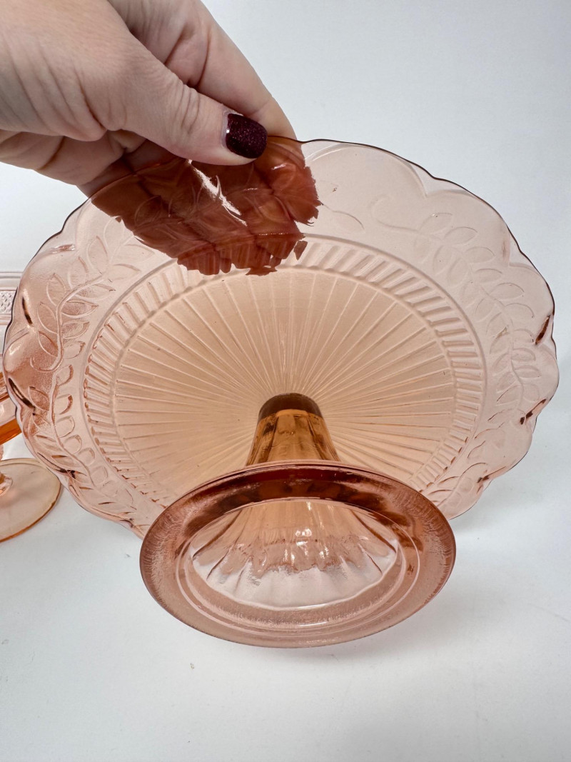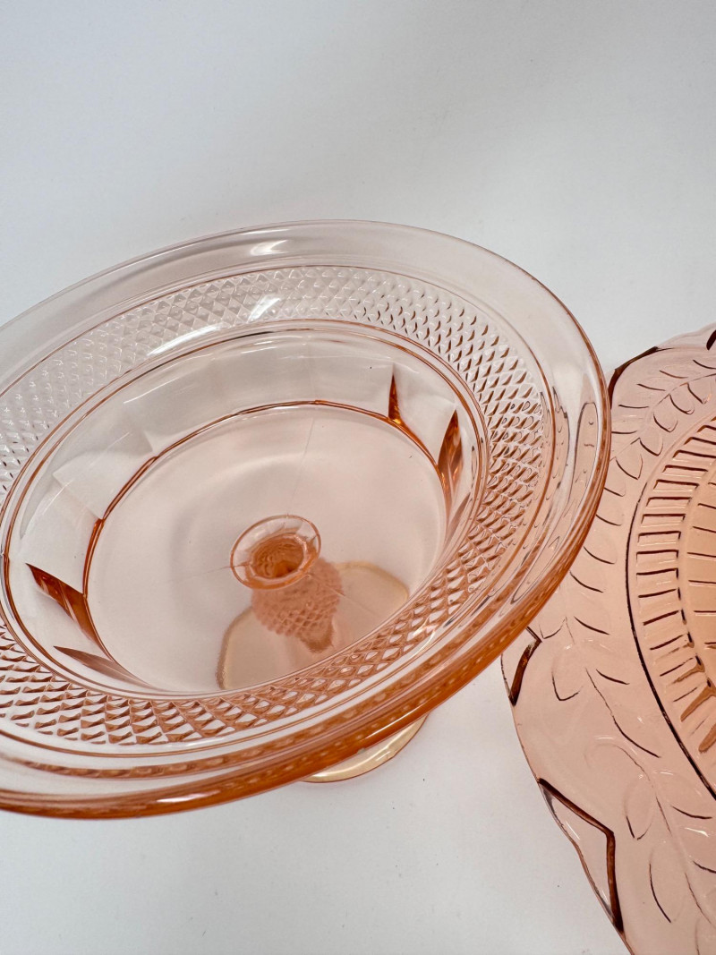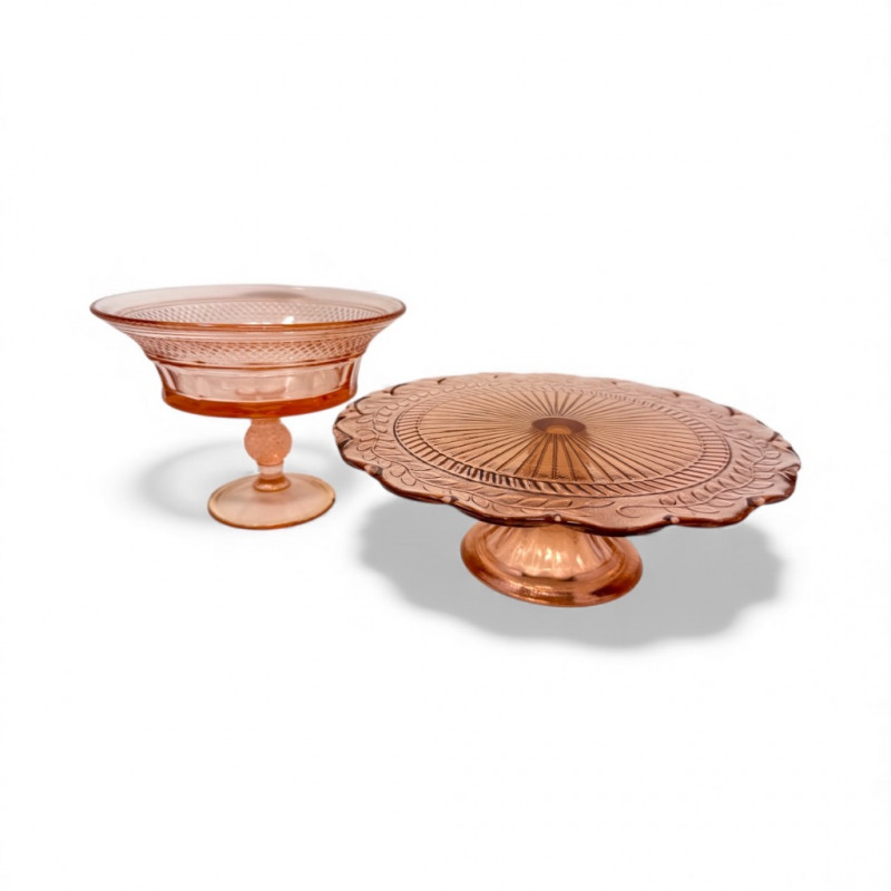Dalzell Viking–Style Pink Pedestal Compote & Pressed Glass Cake Plate.