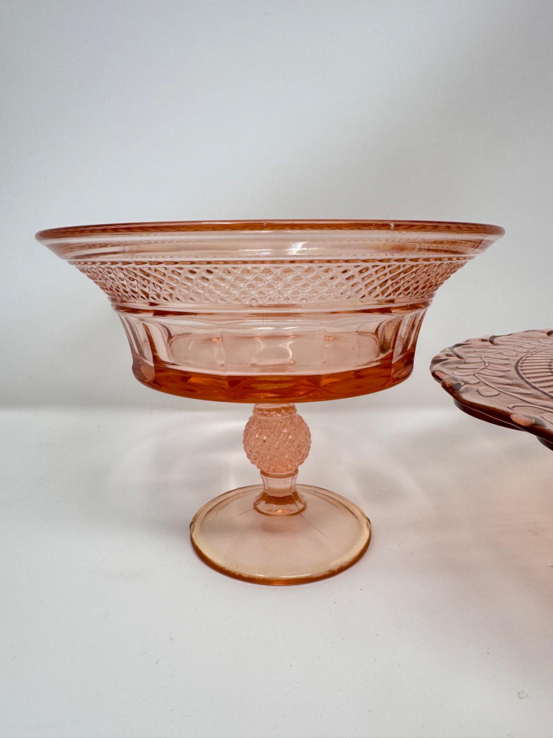 Lot # 206 - Dalzell Viking–Style Pink Pedestal Compote & Pressed Glass Cake Plate