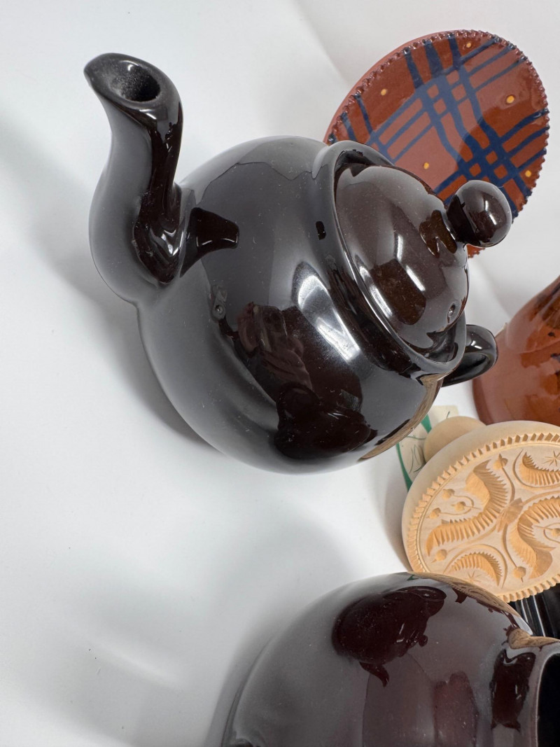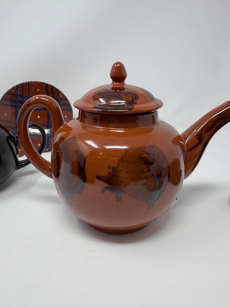 Lot # 209 - Henderson Redware & Brown Betty Teapots, Creamer, Sugar Jar & More
