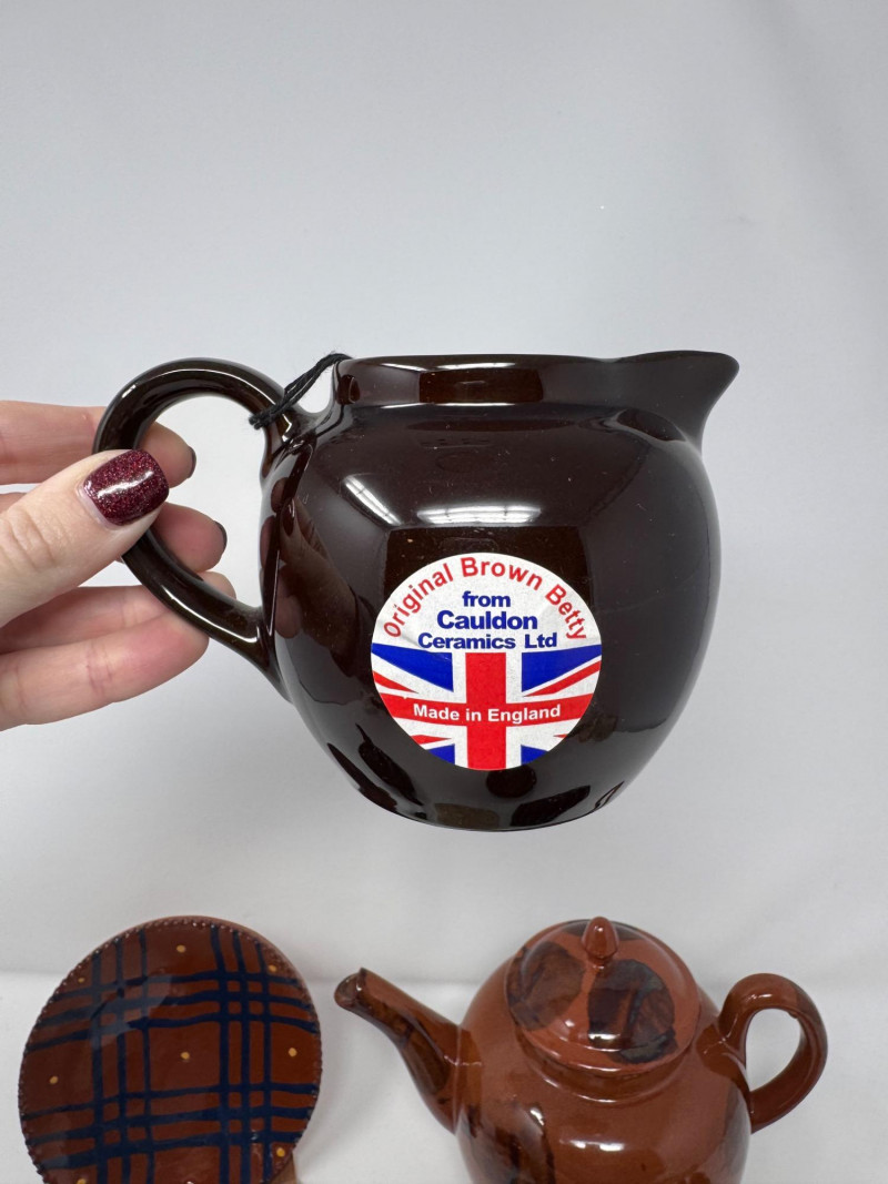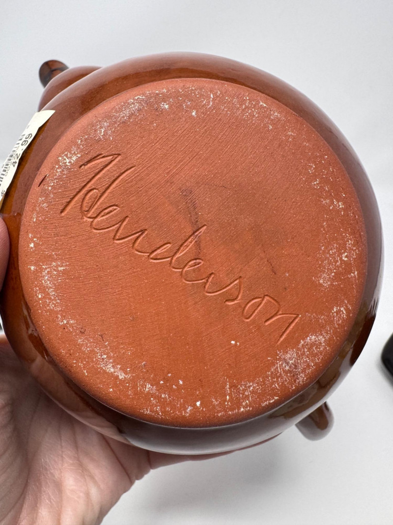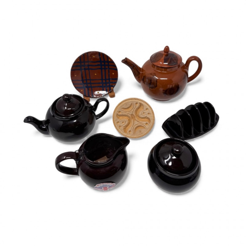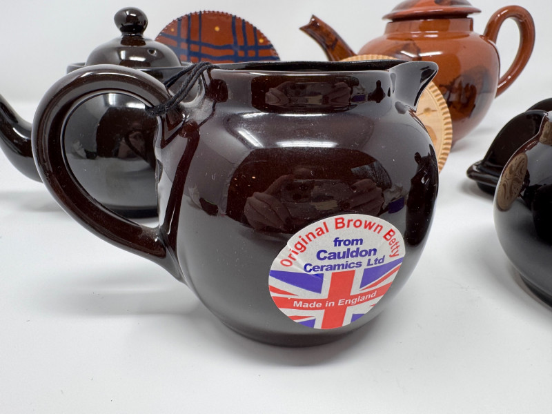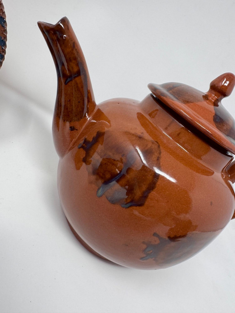 Henderson Redware & Brown Betty Teapots, Creamer, Sugar Jar & More.