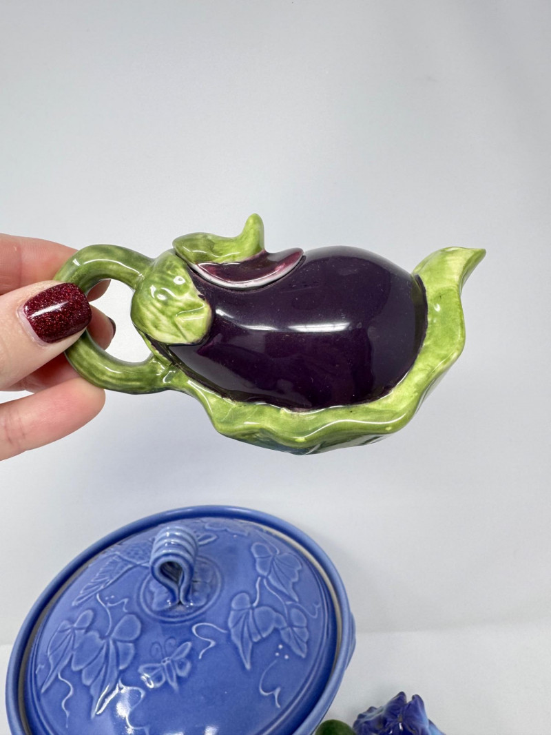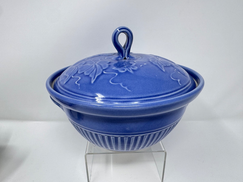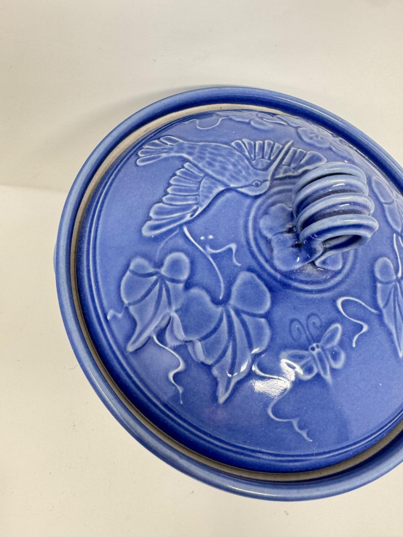 Lot # 210 - Jensen Turnage Pottery Blue Covered Bowl + Mini Teapot Figurines, 4pcs