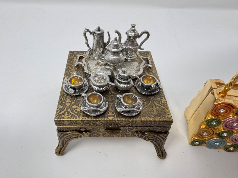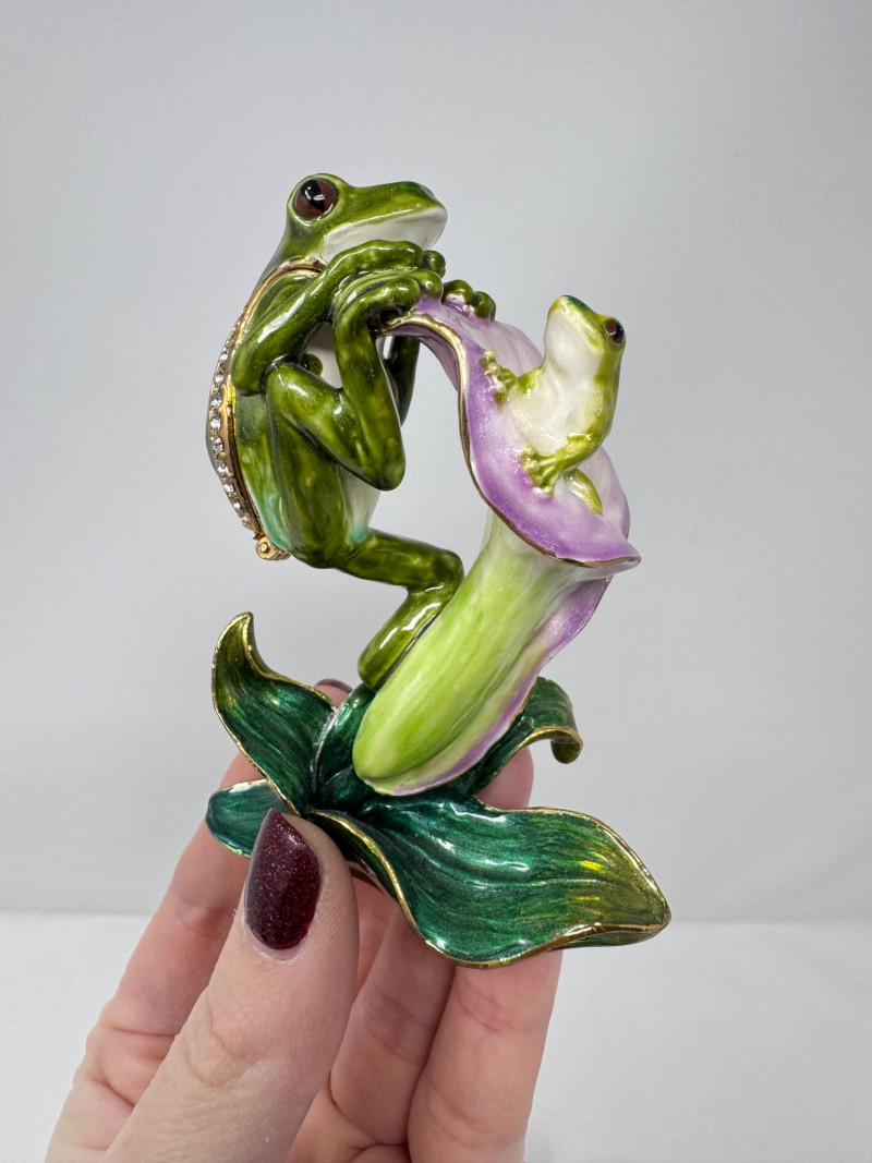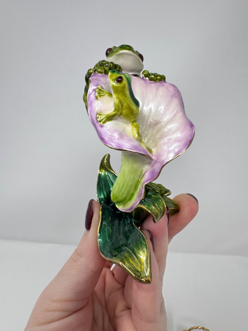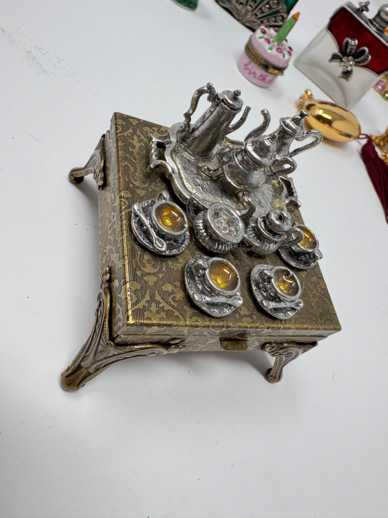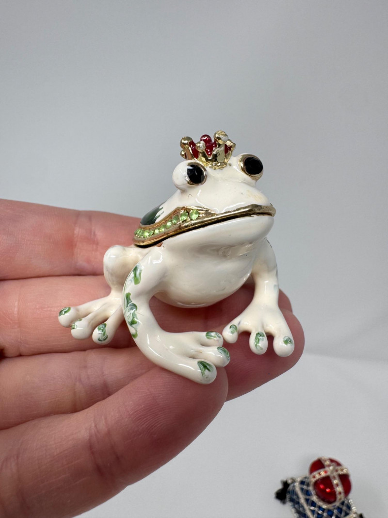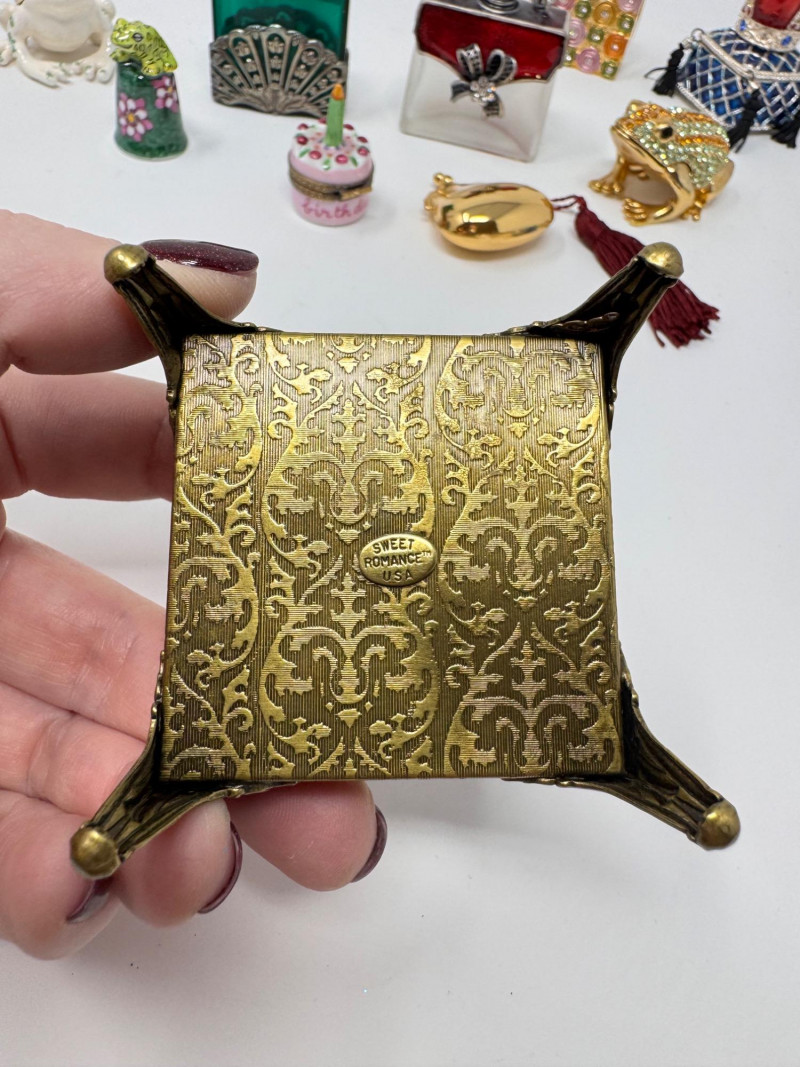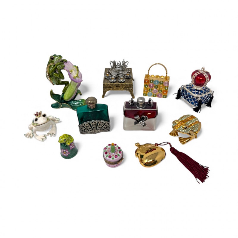 Trinket Boxes & Minis – Limoges France, Frogs, Perfume Bottle + Mixed collection of decorative trinket boxes and miniature collectibles.