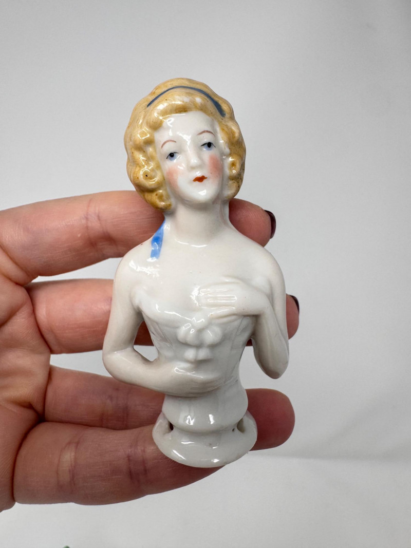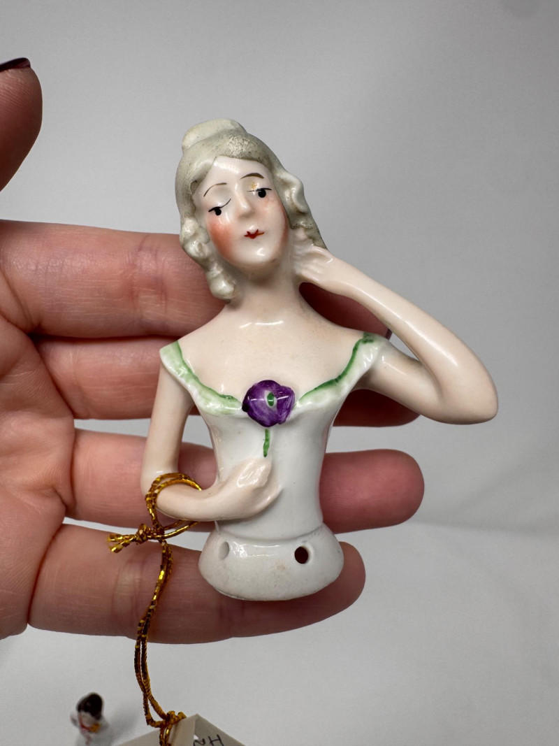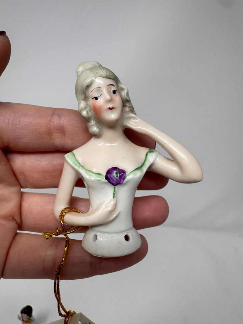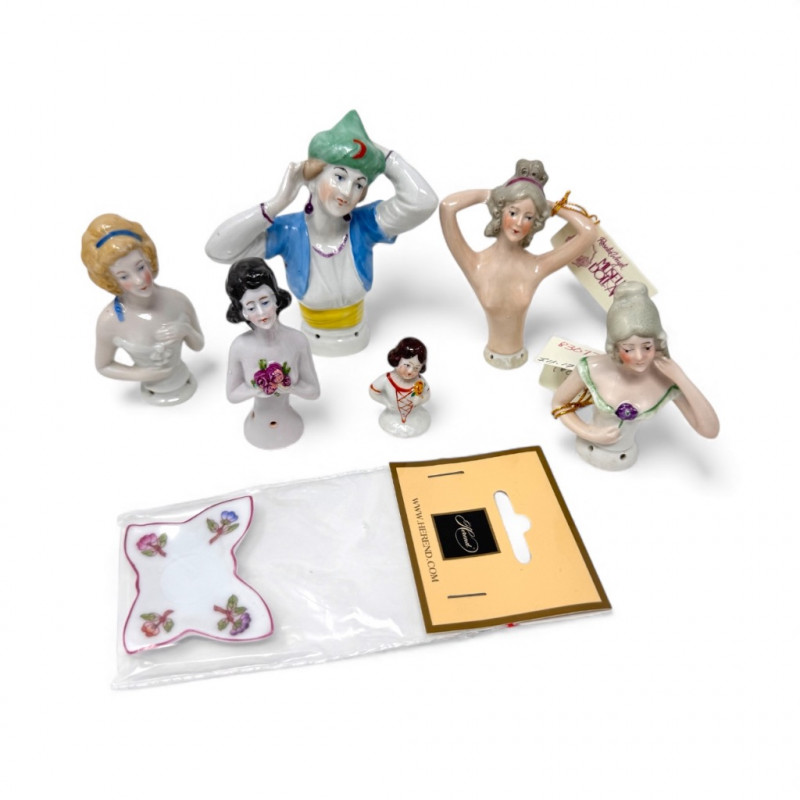 6 Vintage Porcelain Half Dolls + Herend Butterfly Trinket Dish.