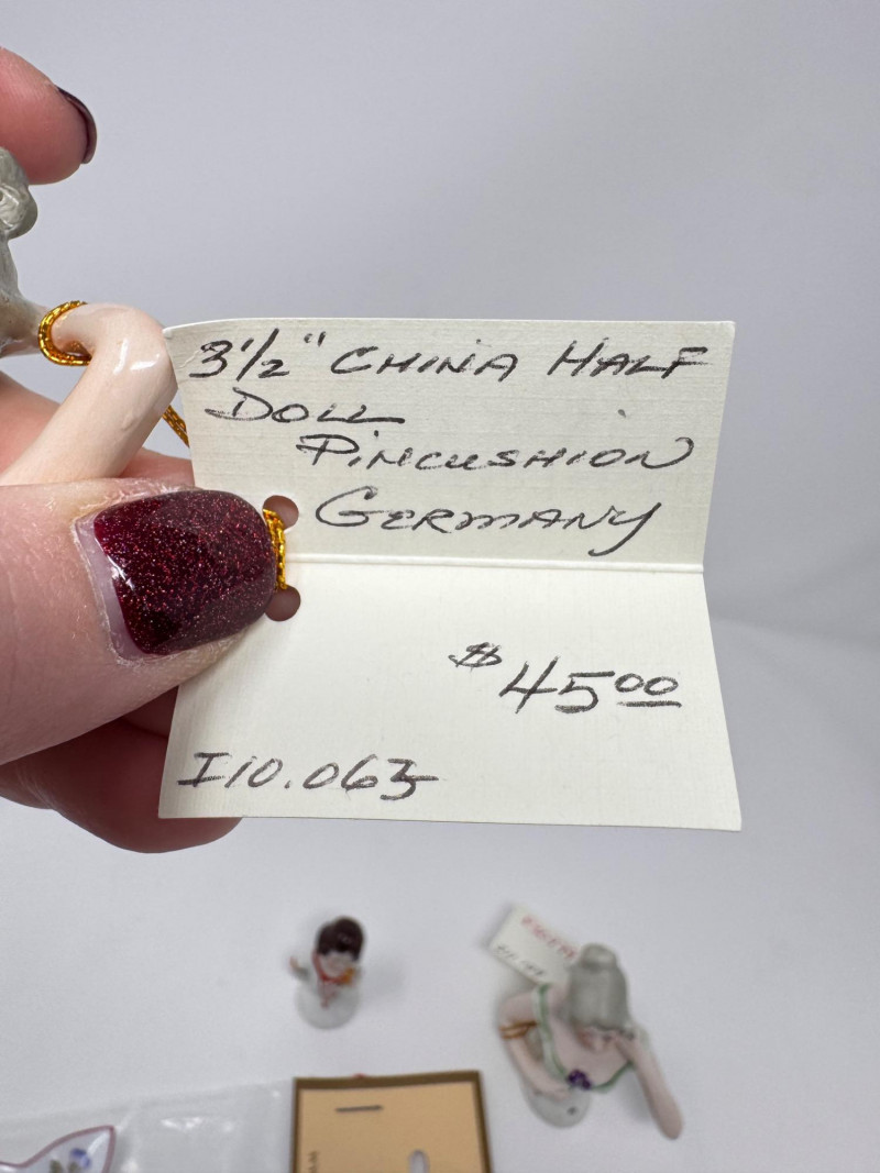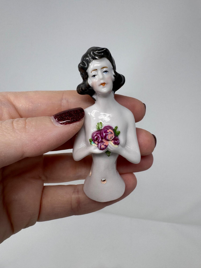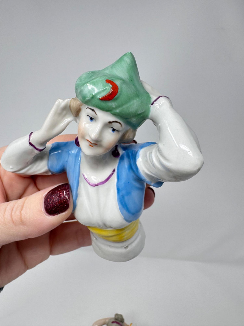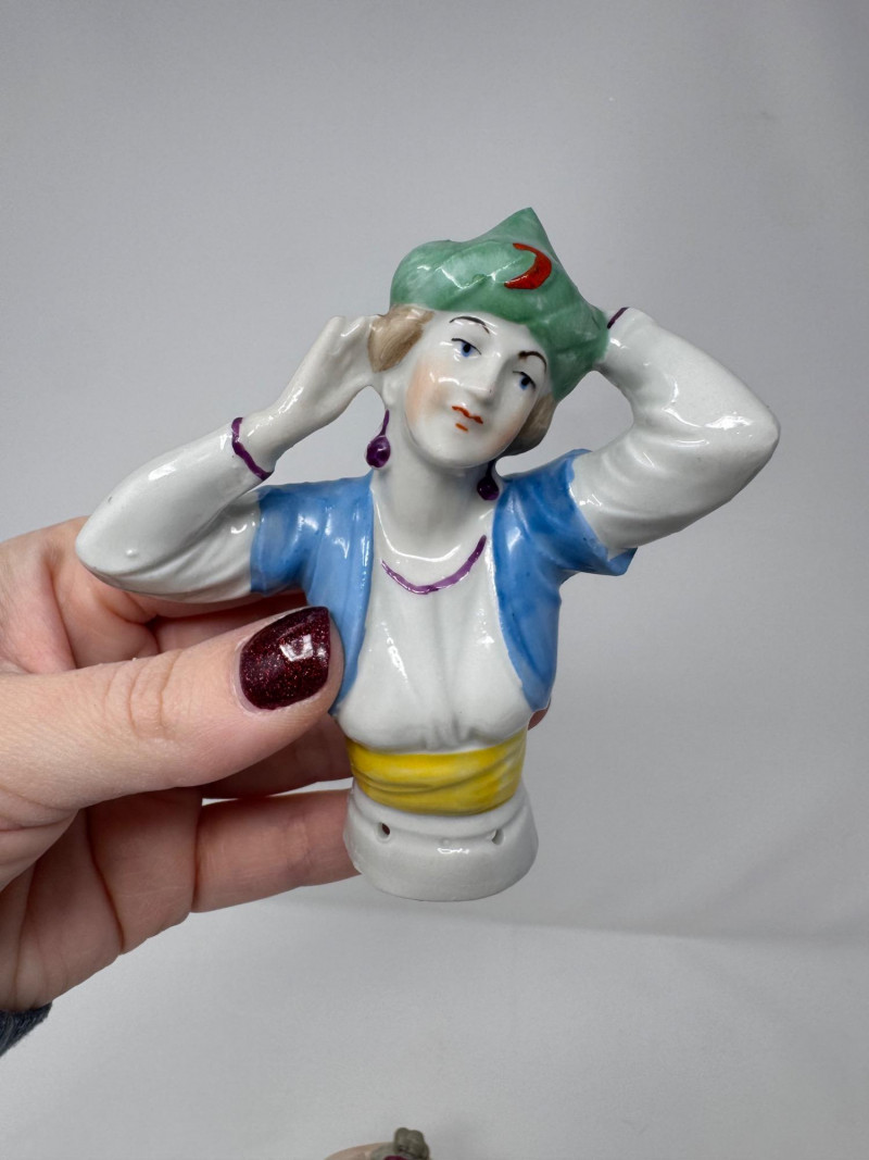 6 Vintage Porcelain Half Dolls + Herend Butterfly Trinket Dish.