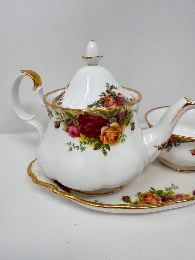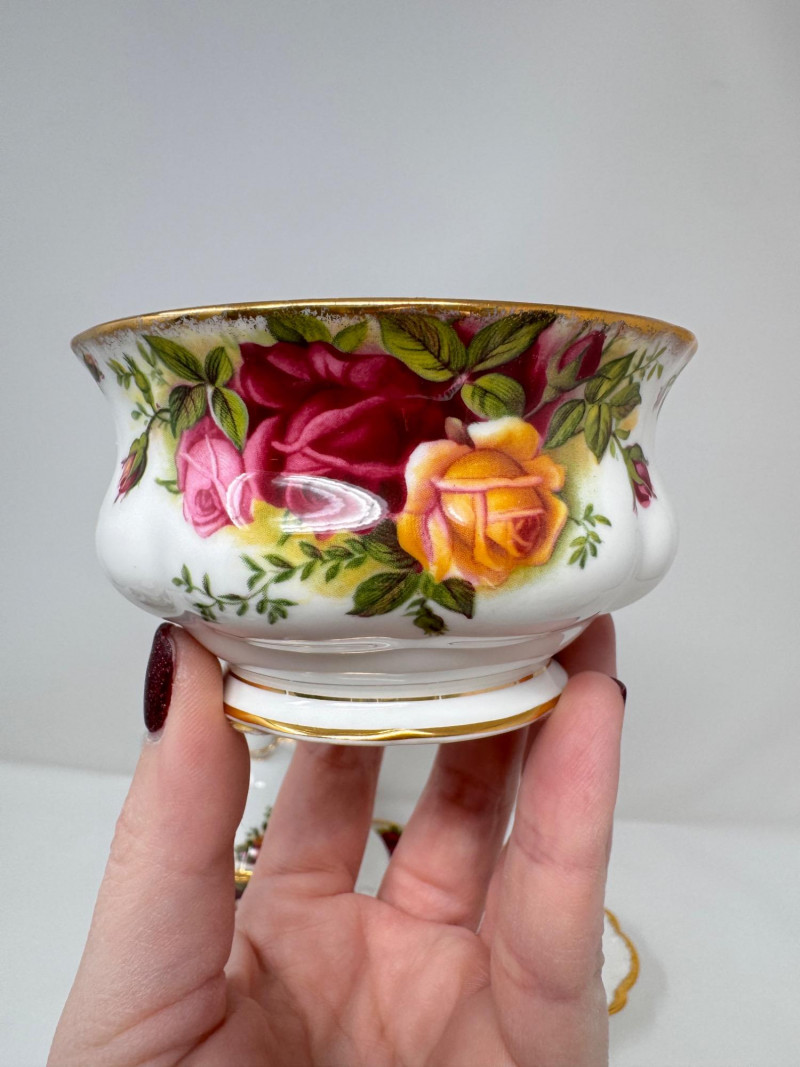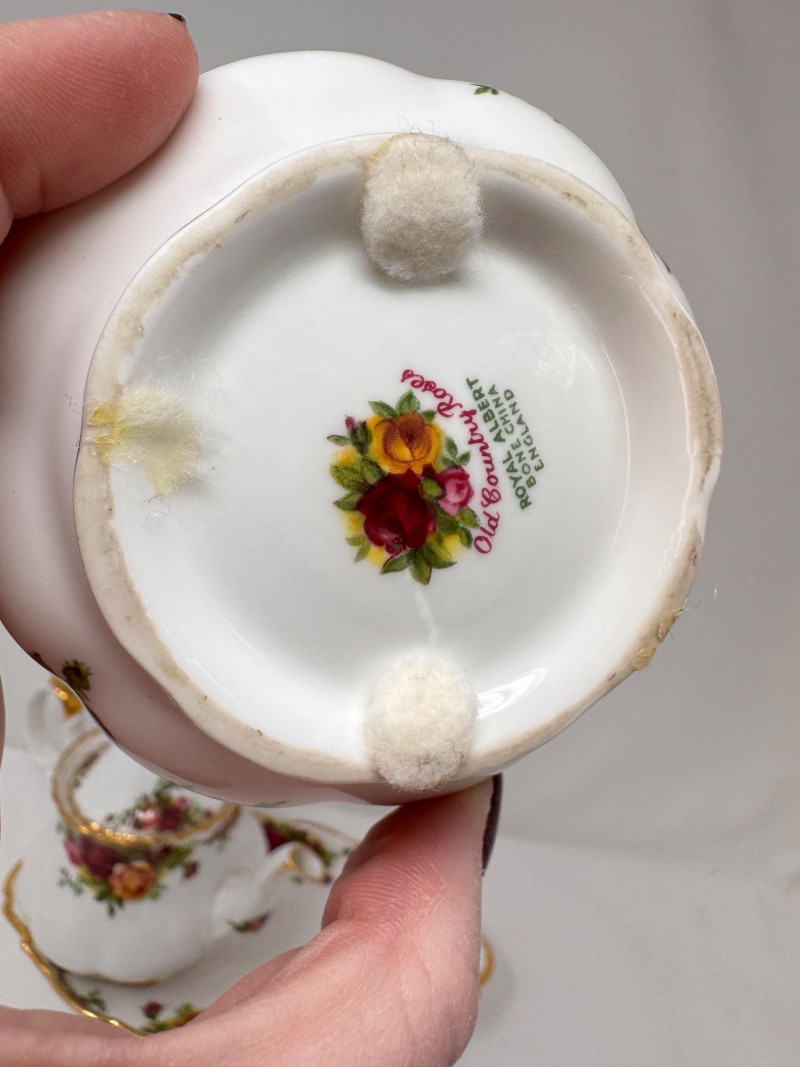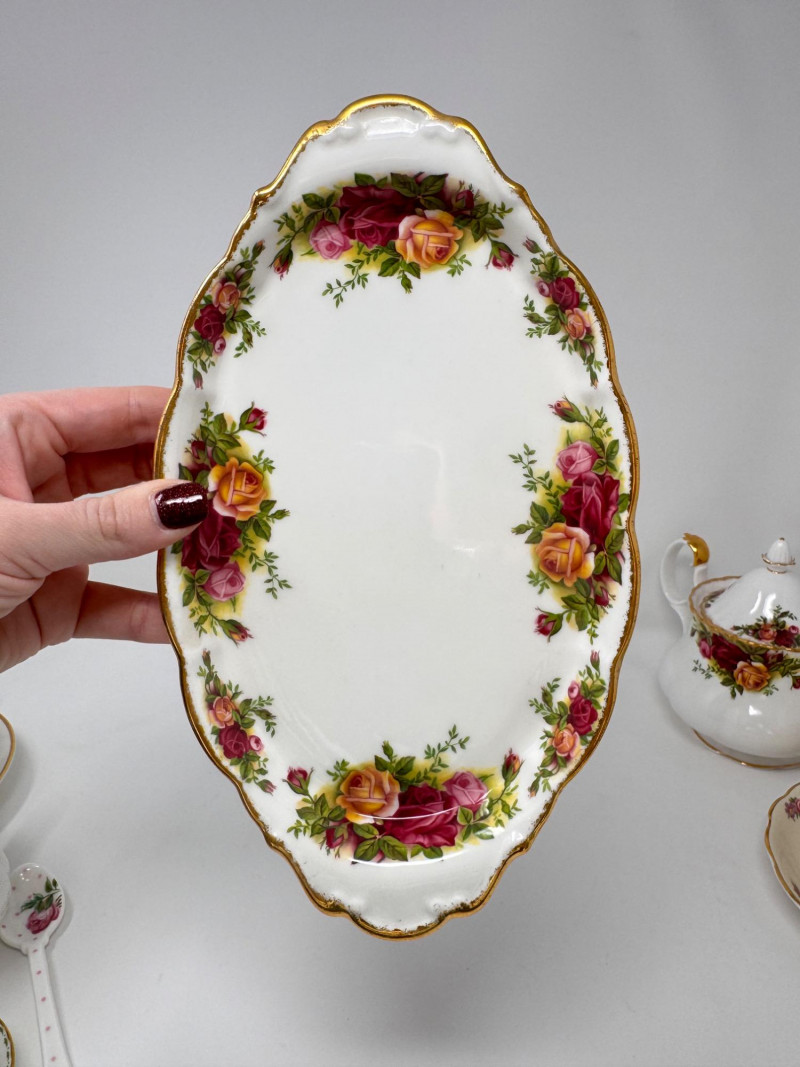 Vintage English Bone China Tea Cup Collection + Old Country Roses Set. Mini floral teacup & saucer + porcelain floral spoon