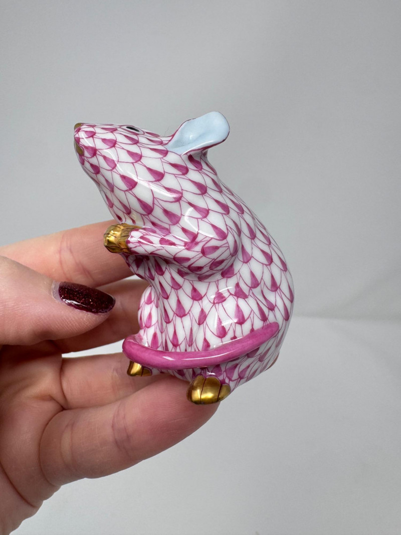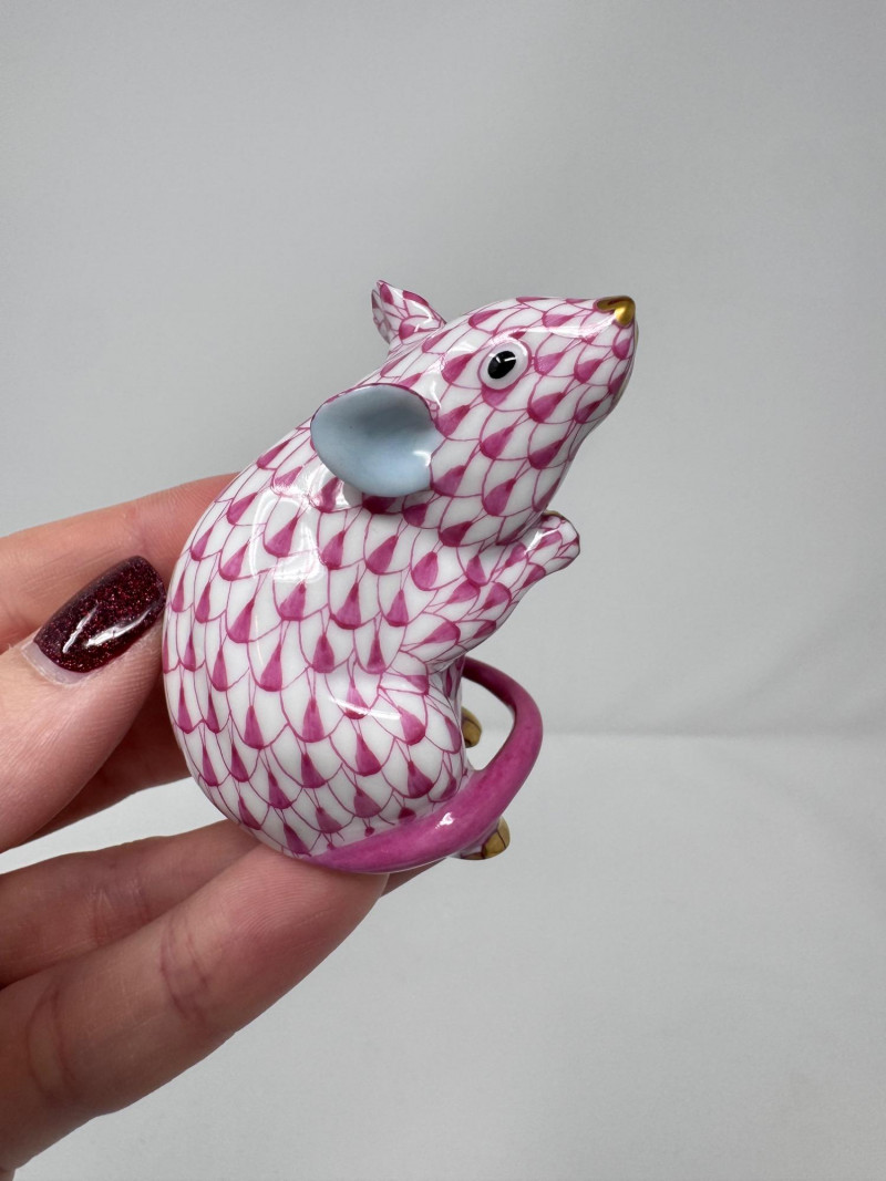 Herend Hungary Pink Fishnet Mouse Figurine – Handpainted.