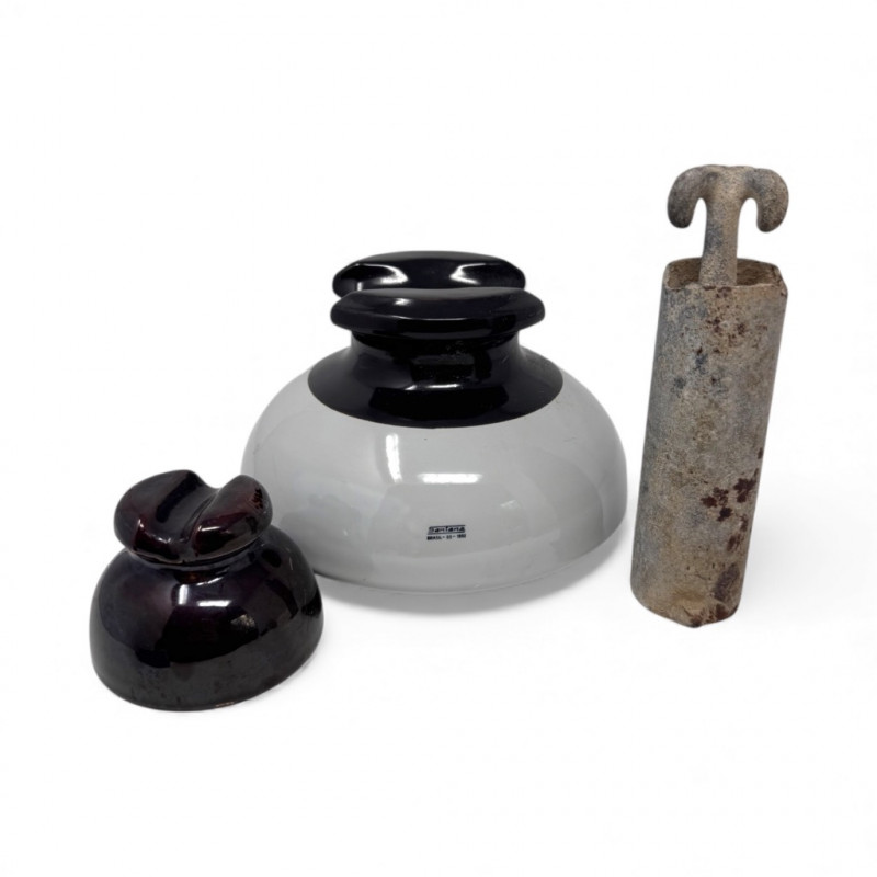 Lot # 224 - HUGE Vintage Santana Ceramic Insulator + 1861 Brooks Patent Iron Hook