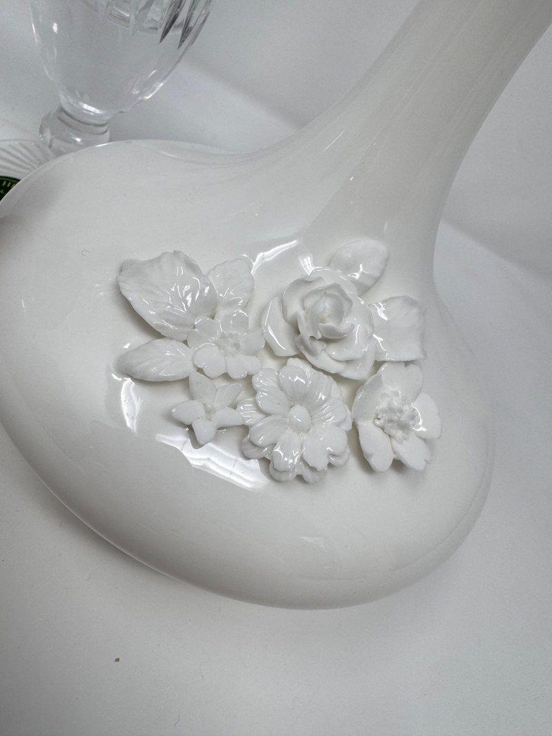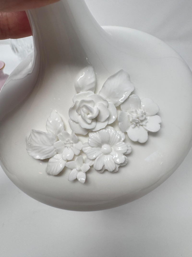 Wedgwood bone china vase with raised white floral detailing, marked Made in England