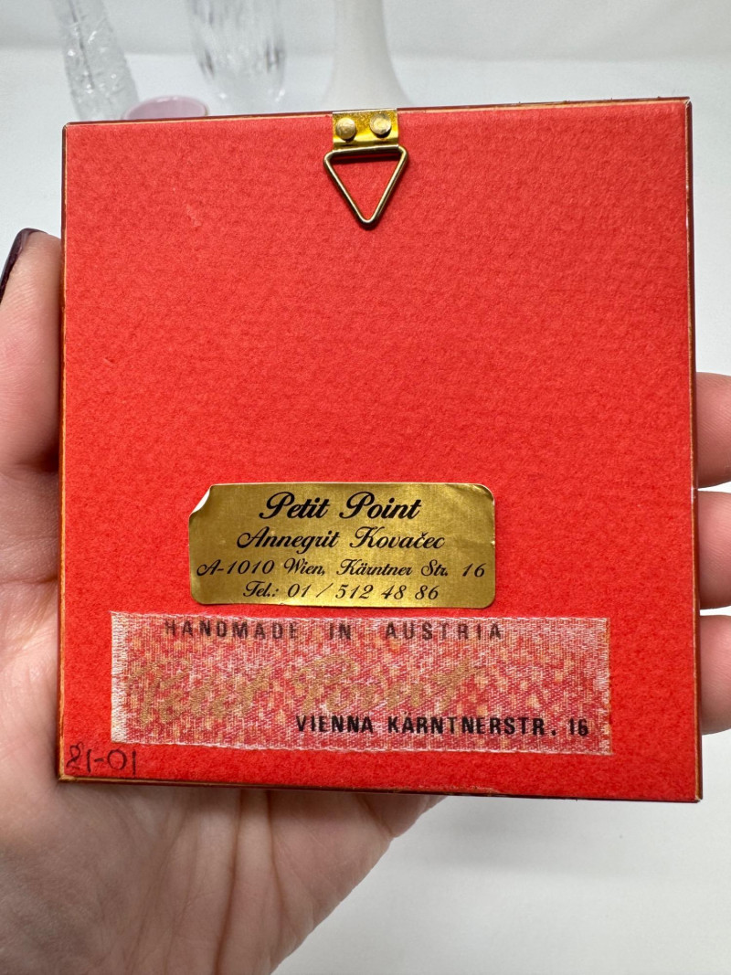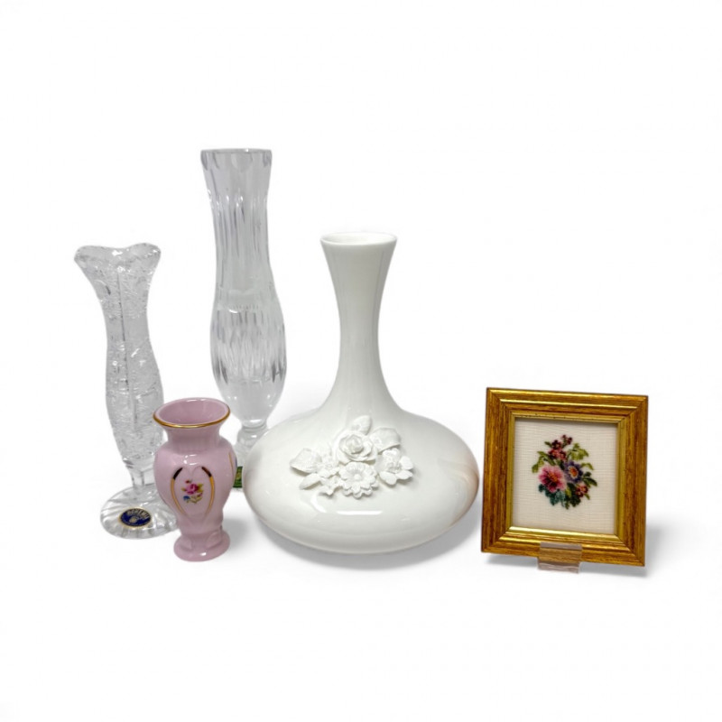 Bohemia Crystal, Irish Lead Crystal, Wedgwood Bone China + Mini Vase Framed Embroidery - Handmade in Austria.