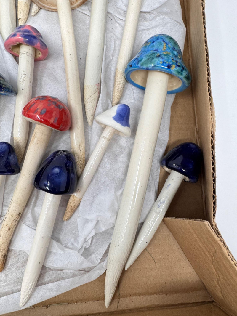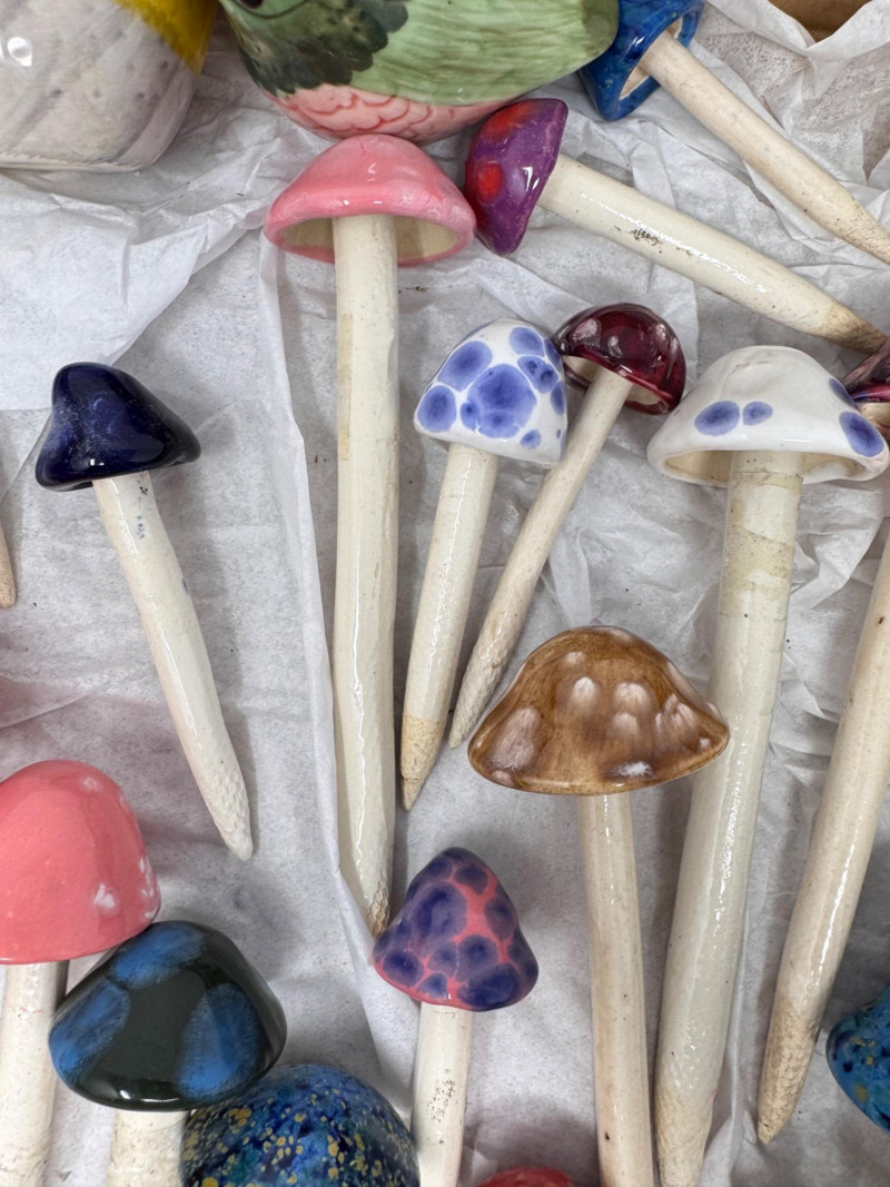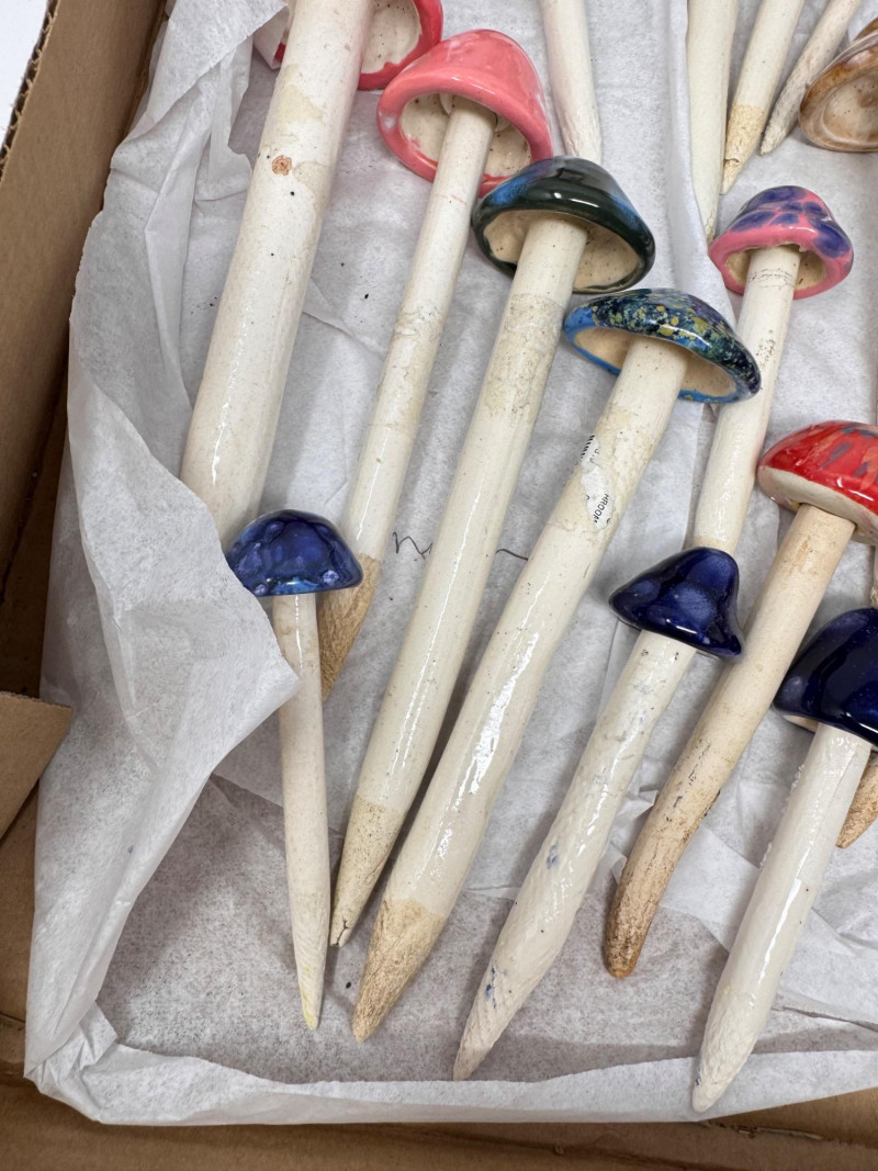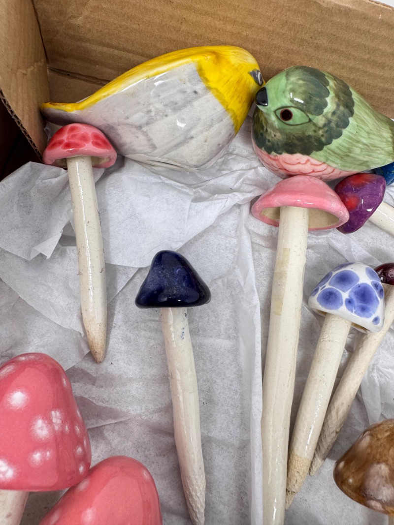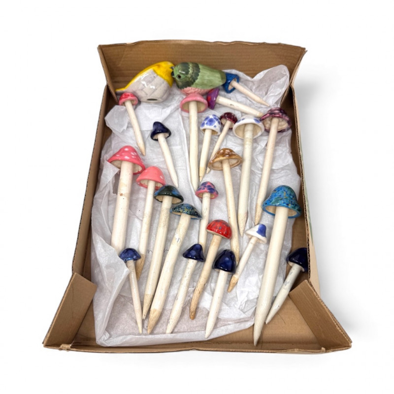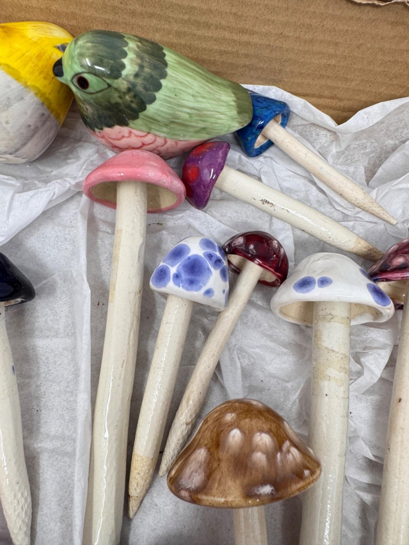 Lot # 240 - Molbak’s Ceramic Planter Mushrooms & Garden Stakes