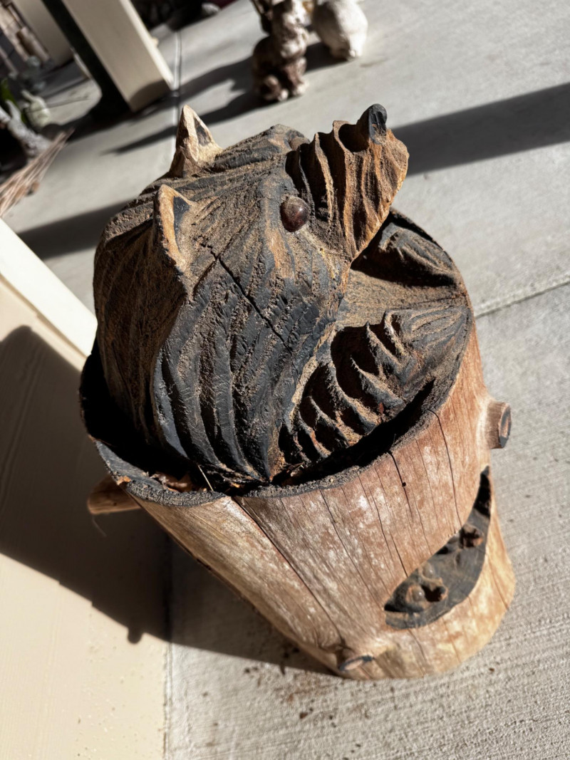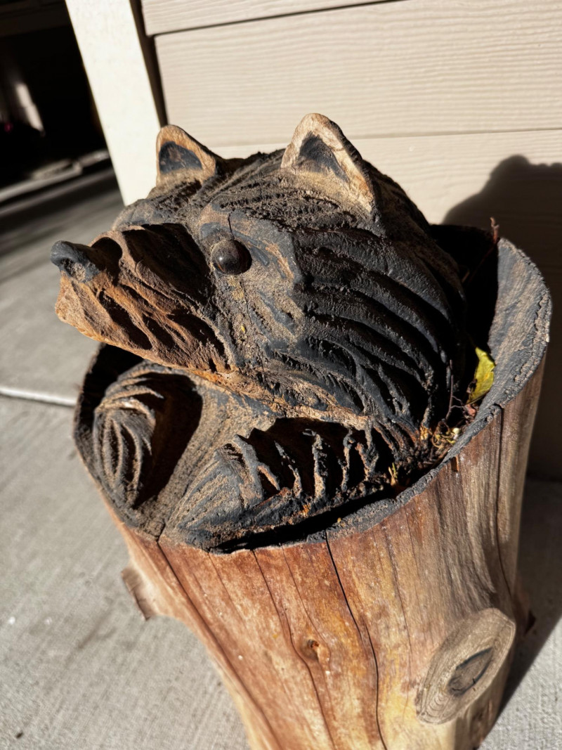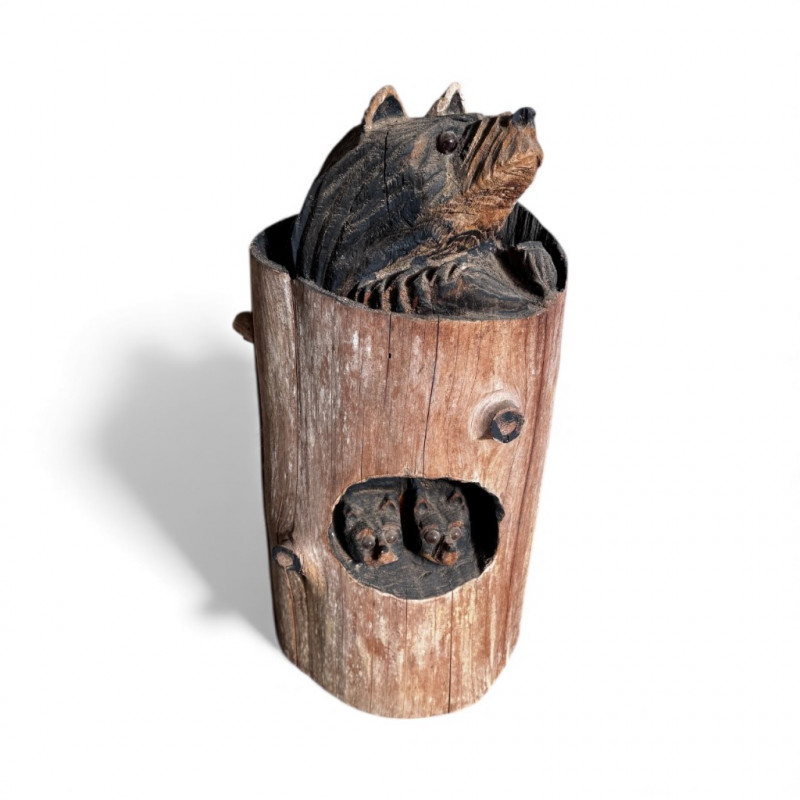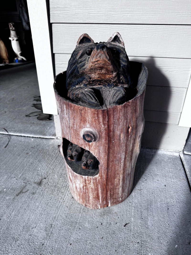Handcrafted Wooden Bear Statue - Wildlife Yard Art.