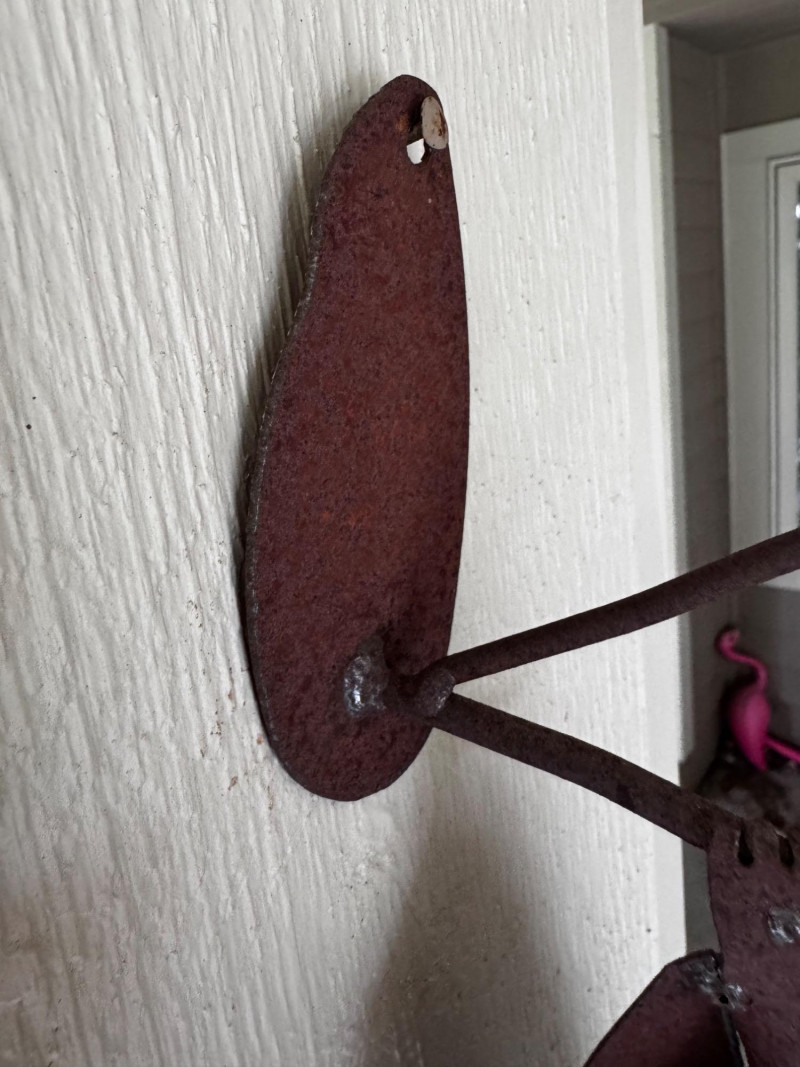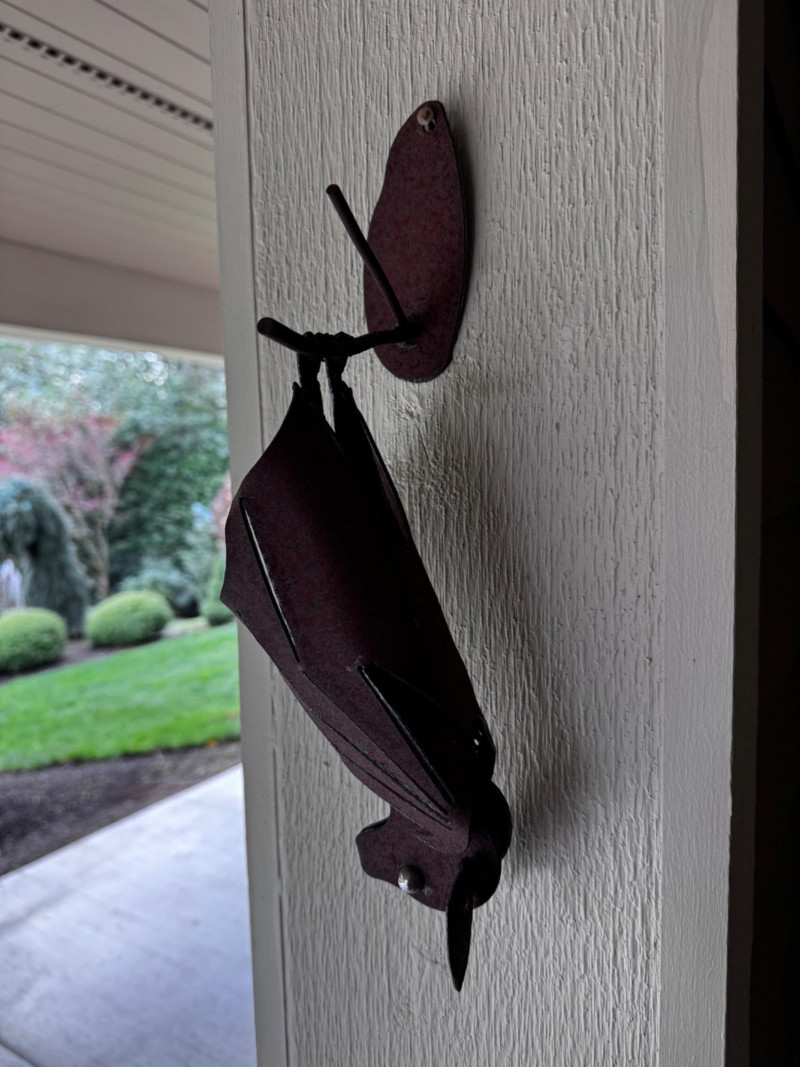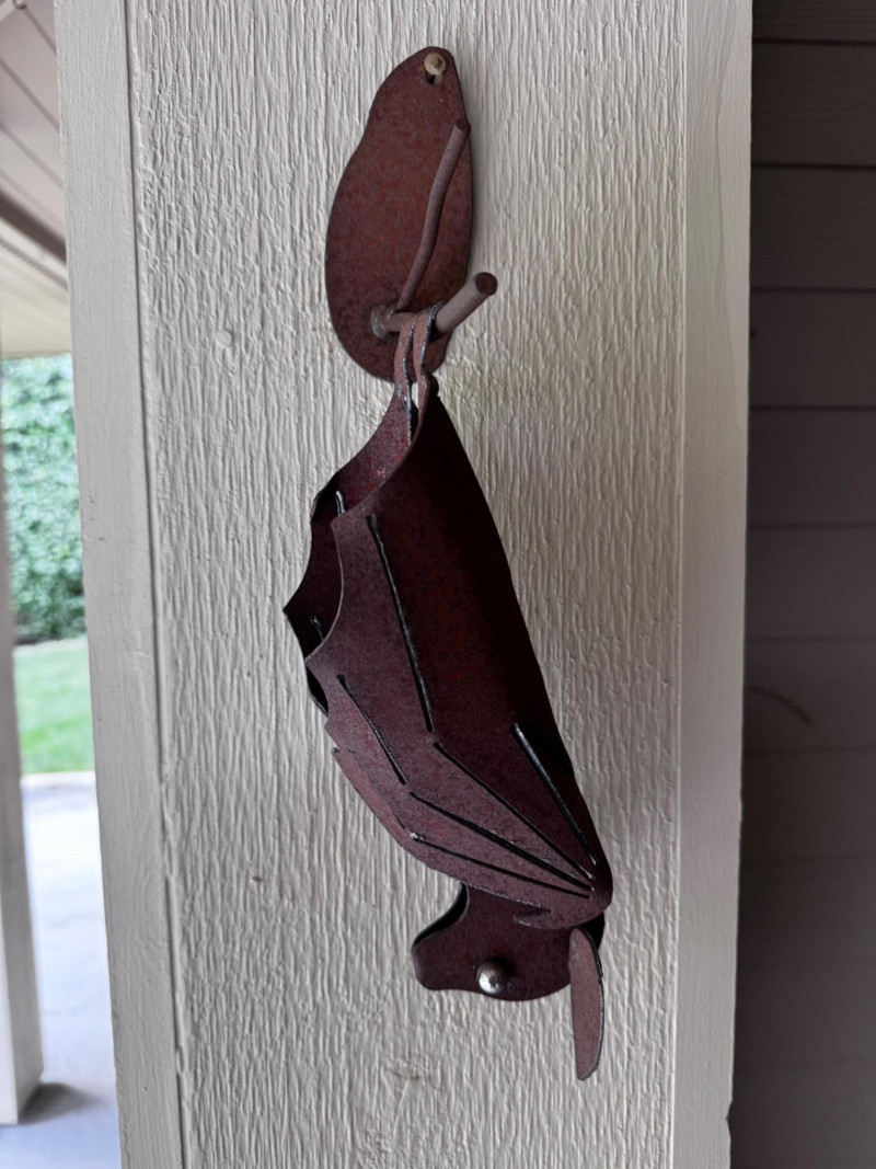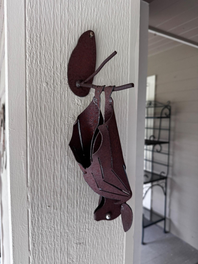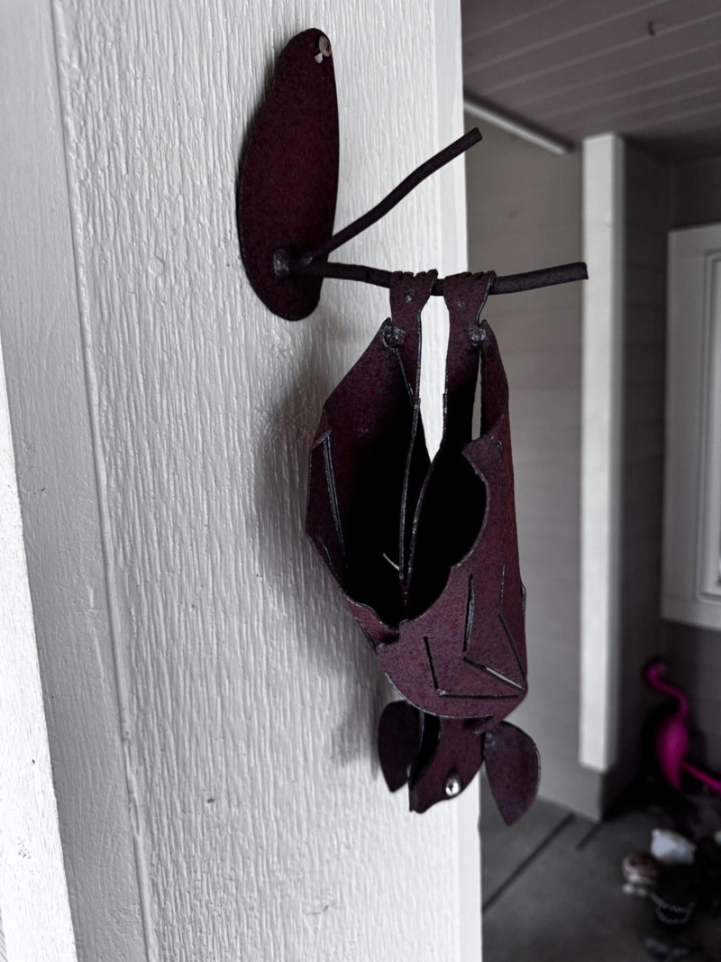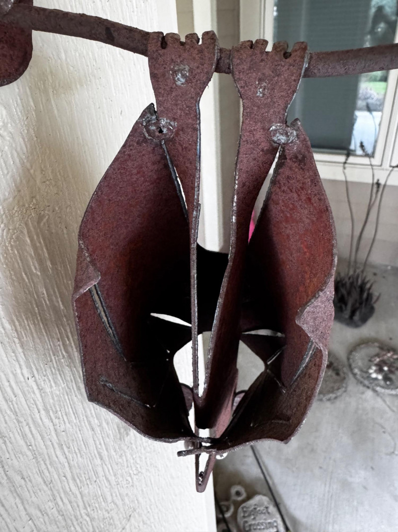 Handcrafted Metal Hanging Bat Sculpture.
