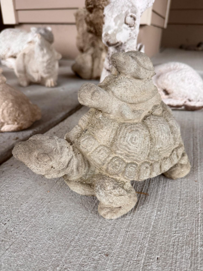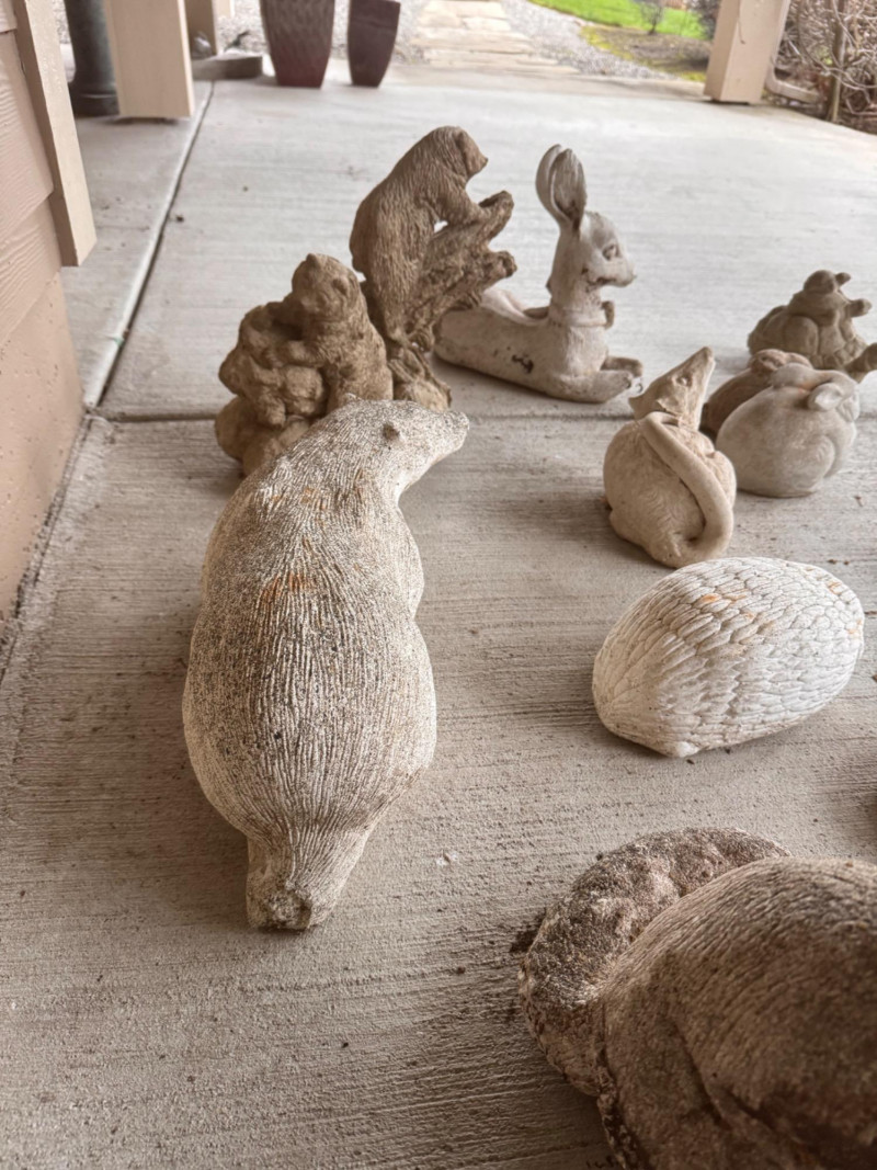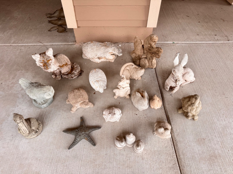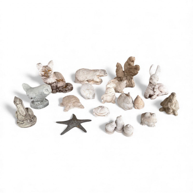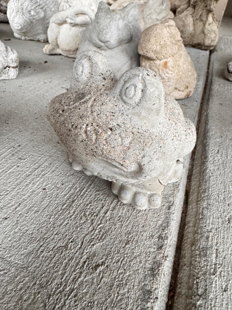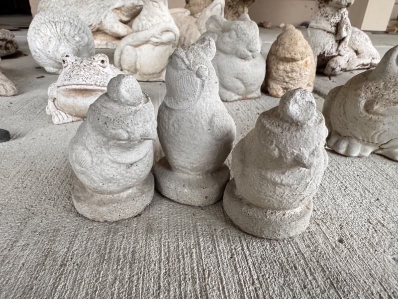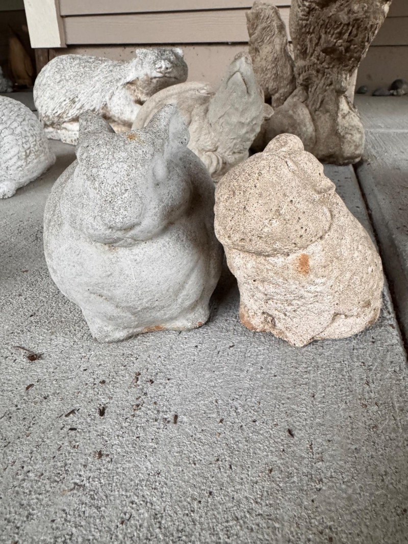 Large Assortment of Cement Animal Yard Art - Rabbits, Frogs, Birds +