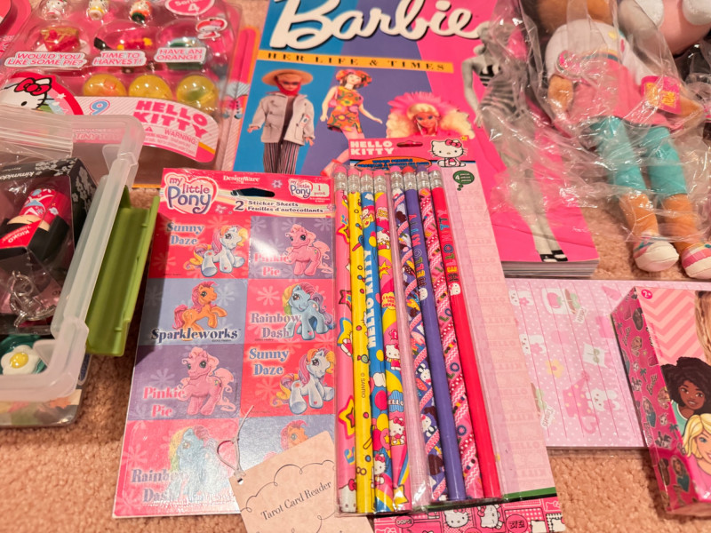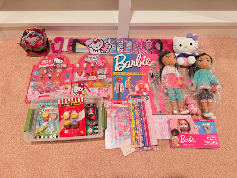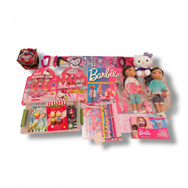 Assortment of Hello Kitty & Barbie Items – Dolls, Stationery, Toys +