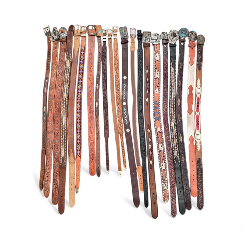Lot # 266 - 21-Piece Leather Belt Collection – Assorted Designs & Buckles