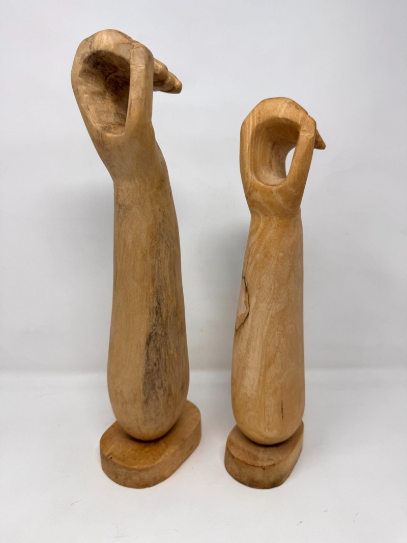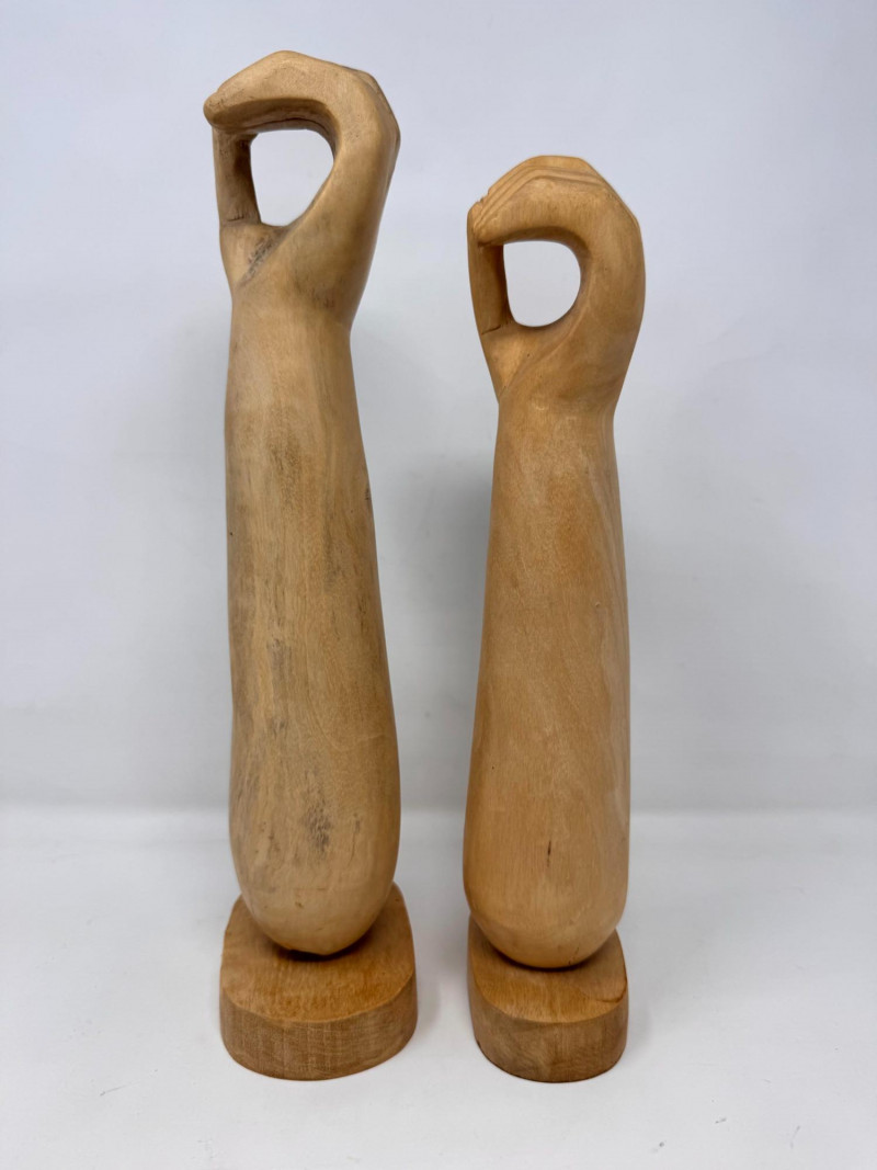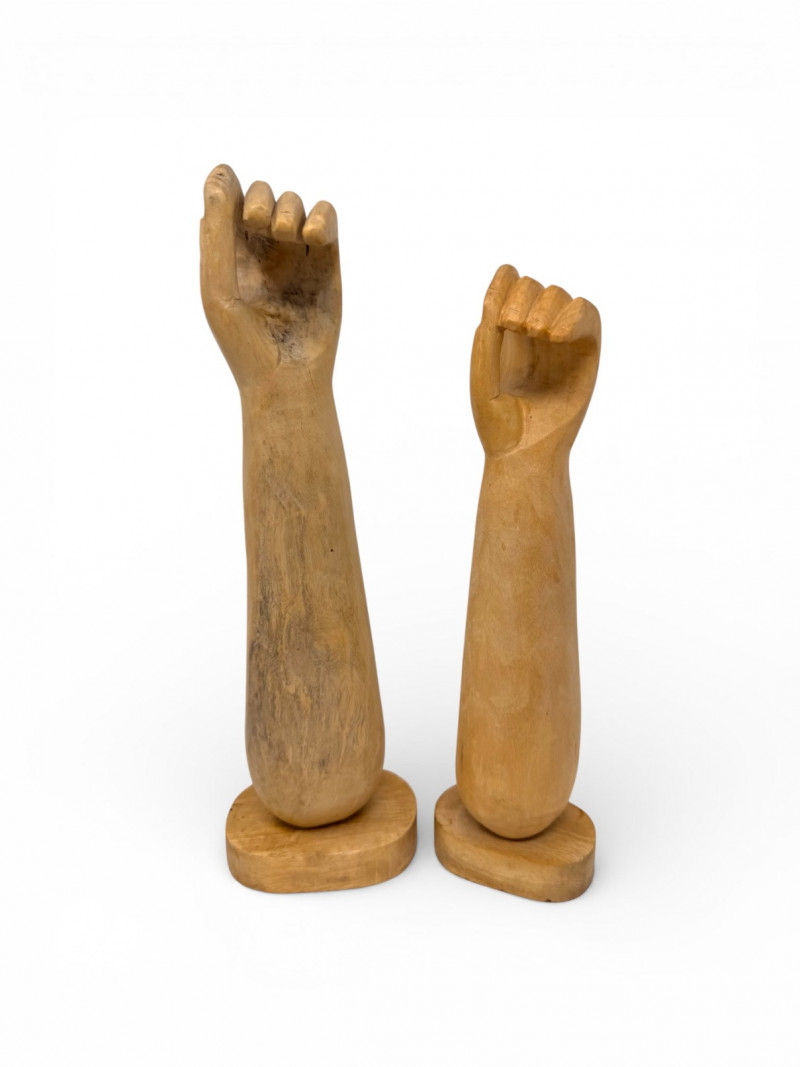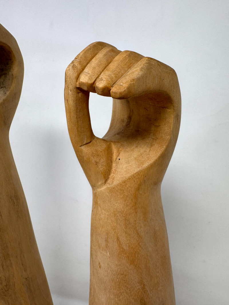 Pair of Hand Carved Wood Arm & Fist Sculptures.