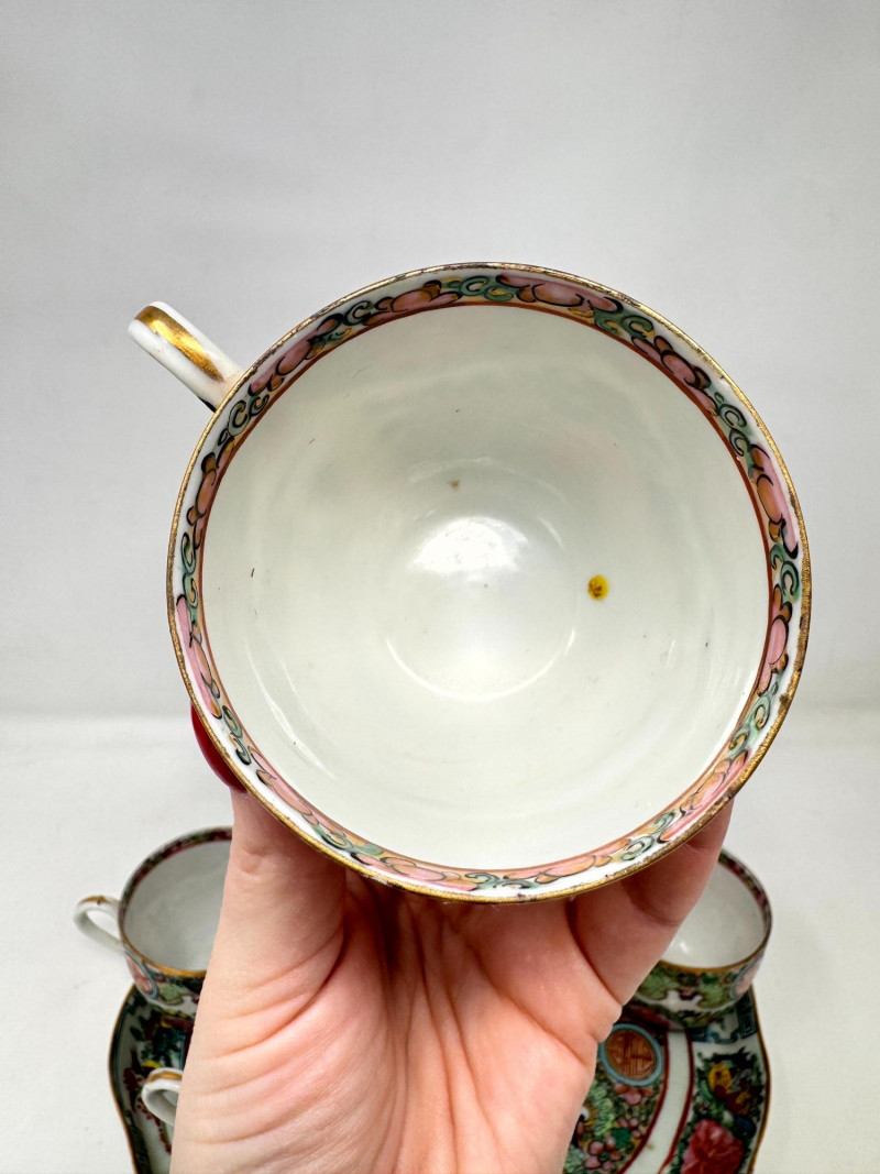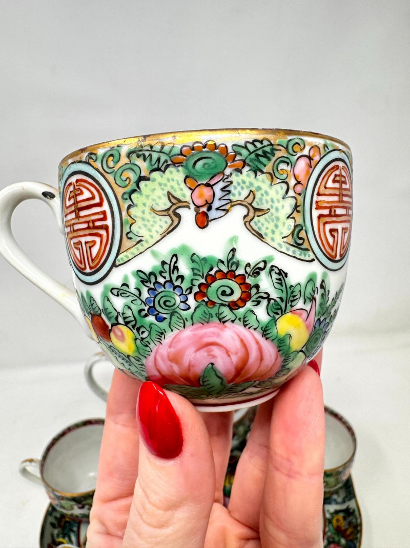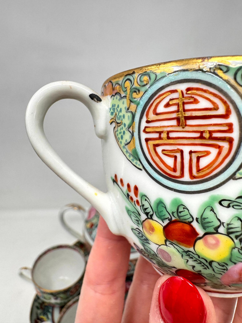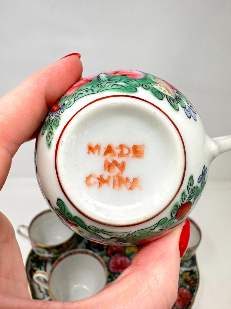 Vintage Chinese Export Porcelain Tea Set: Teapot, Cups & Matching Tray.