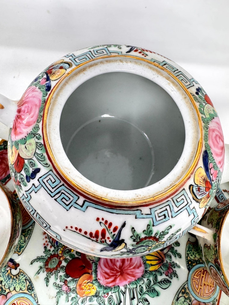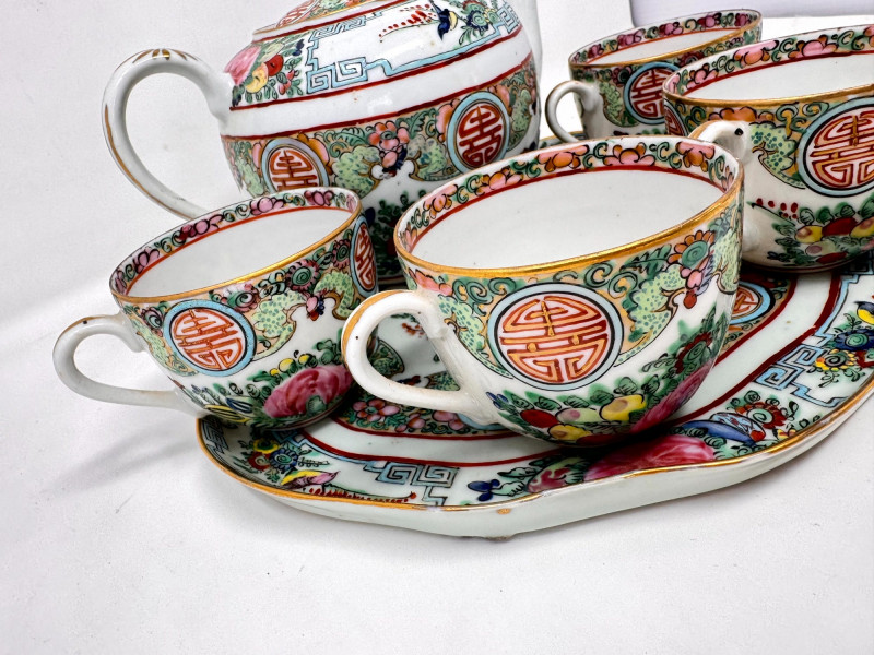 Lot # 8 - Vintage Chinese Export Porcelain Tea Set: Teapot, Cups & Matching Tray