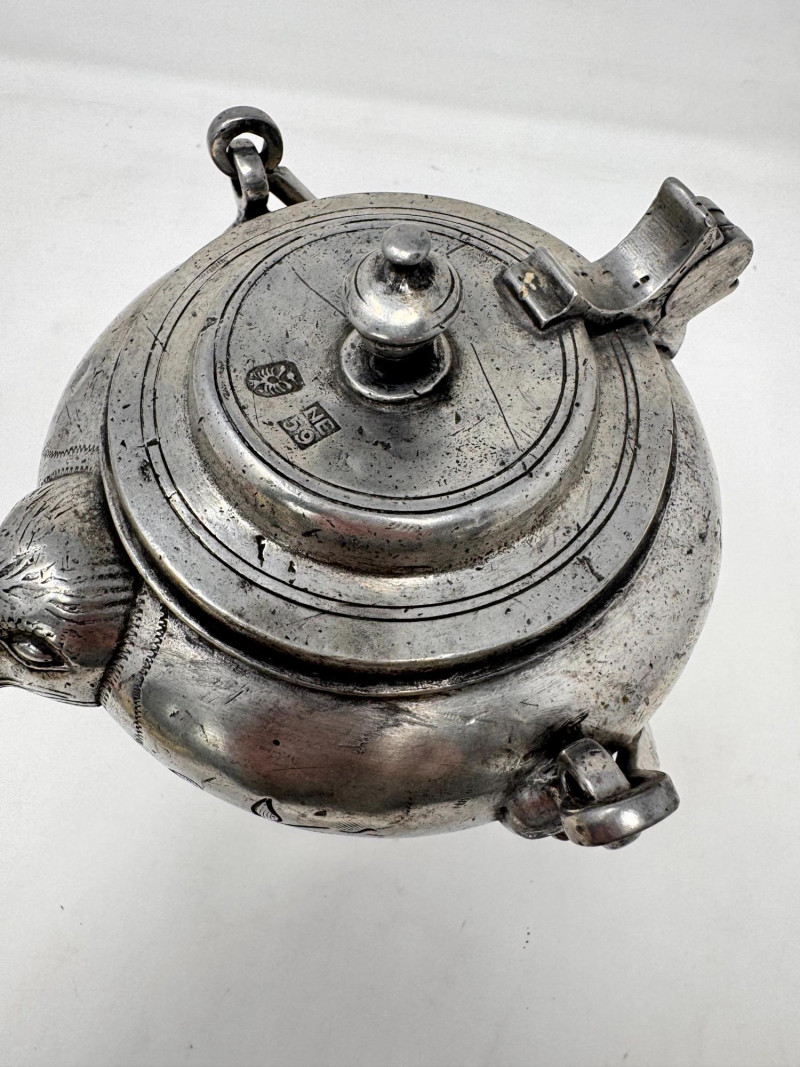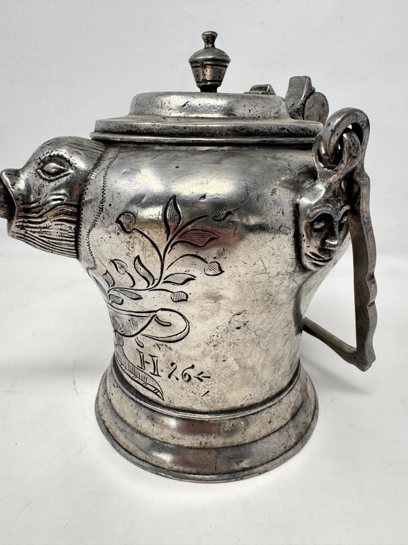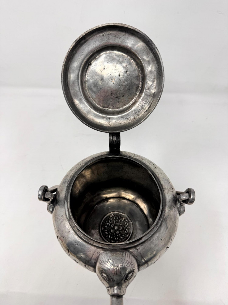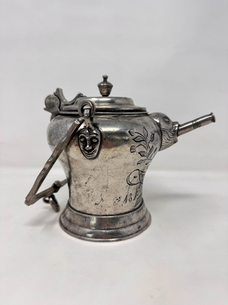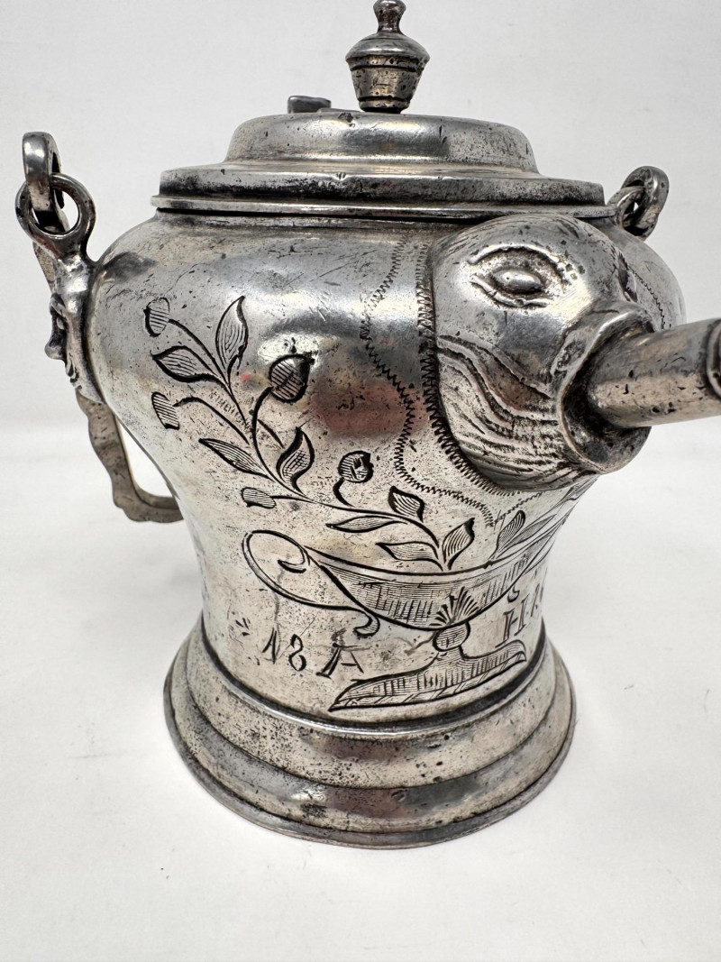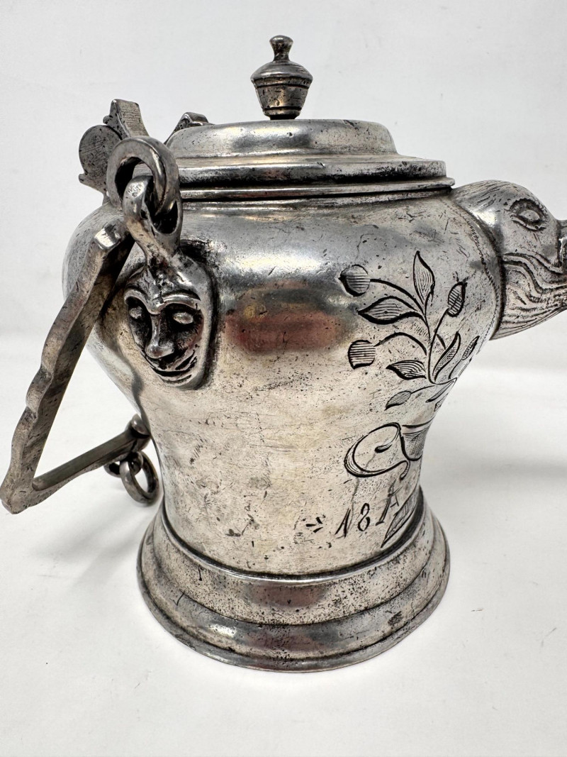 Lot # 10 - Antique Pewter “Sugerli” Jug Bird Head Spout Chain Handle