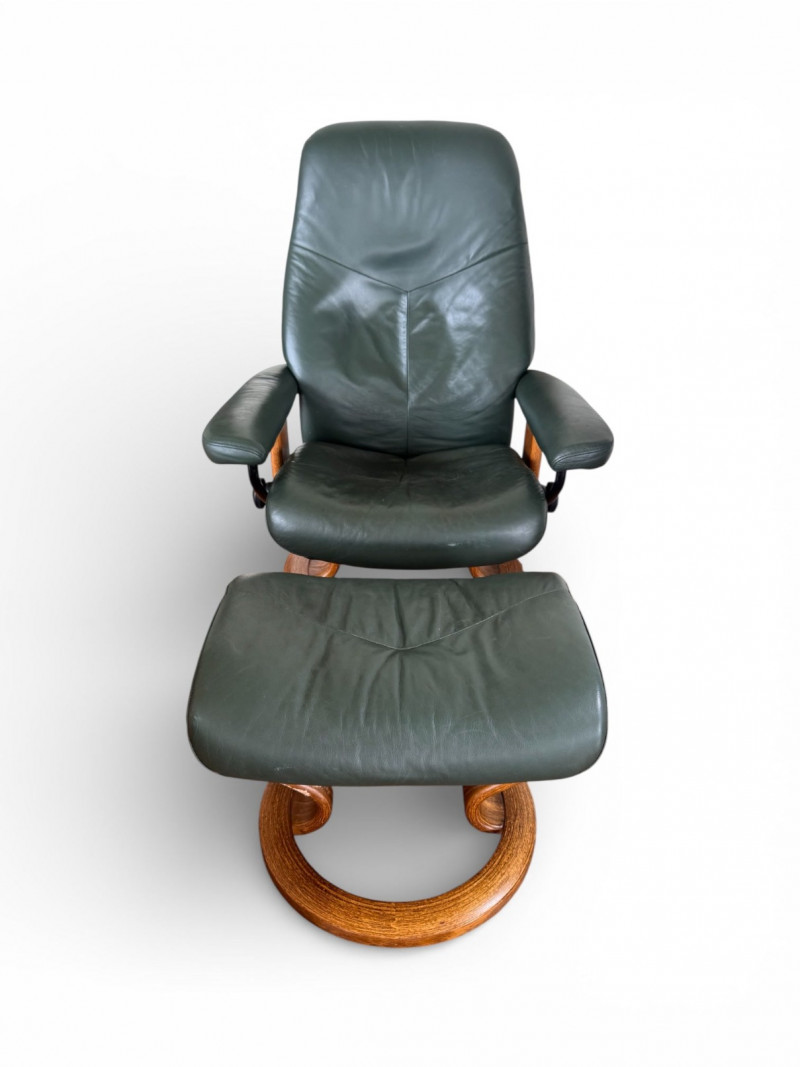 Lot # 50 - Ekornes Green Leather "Stressless" Chair & Ottoman