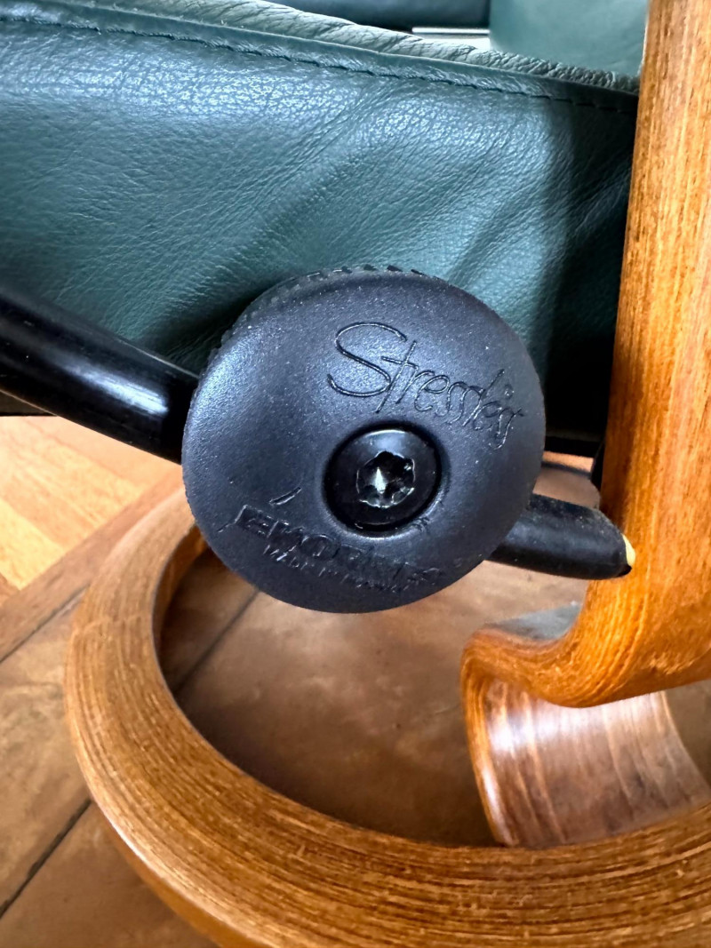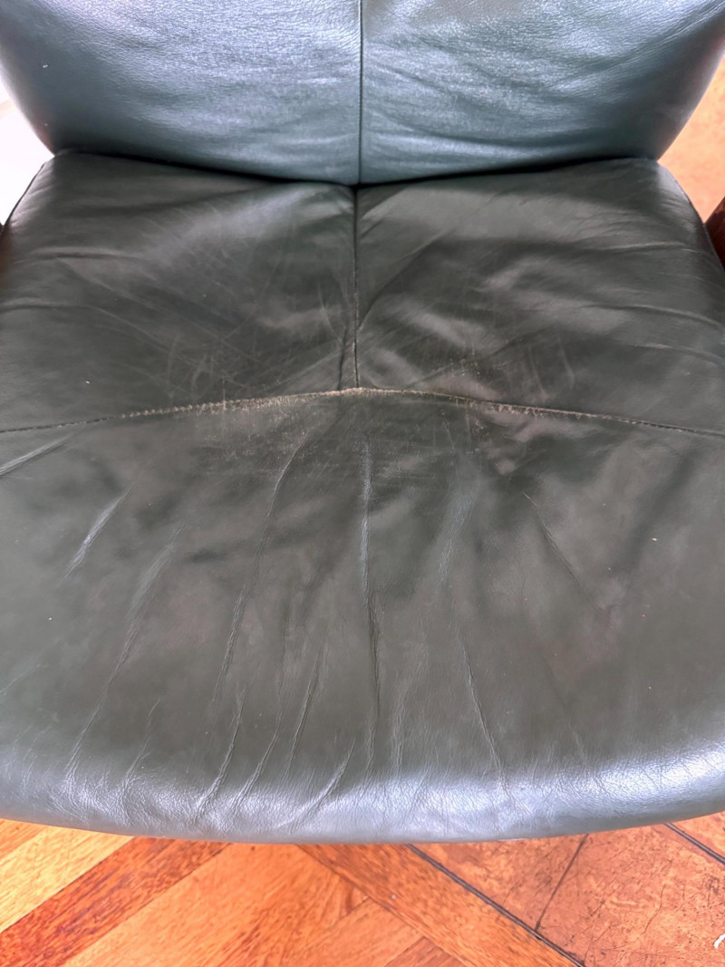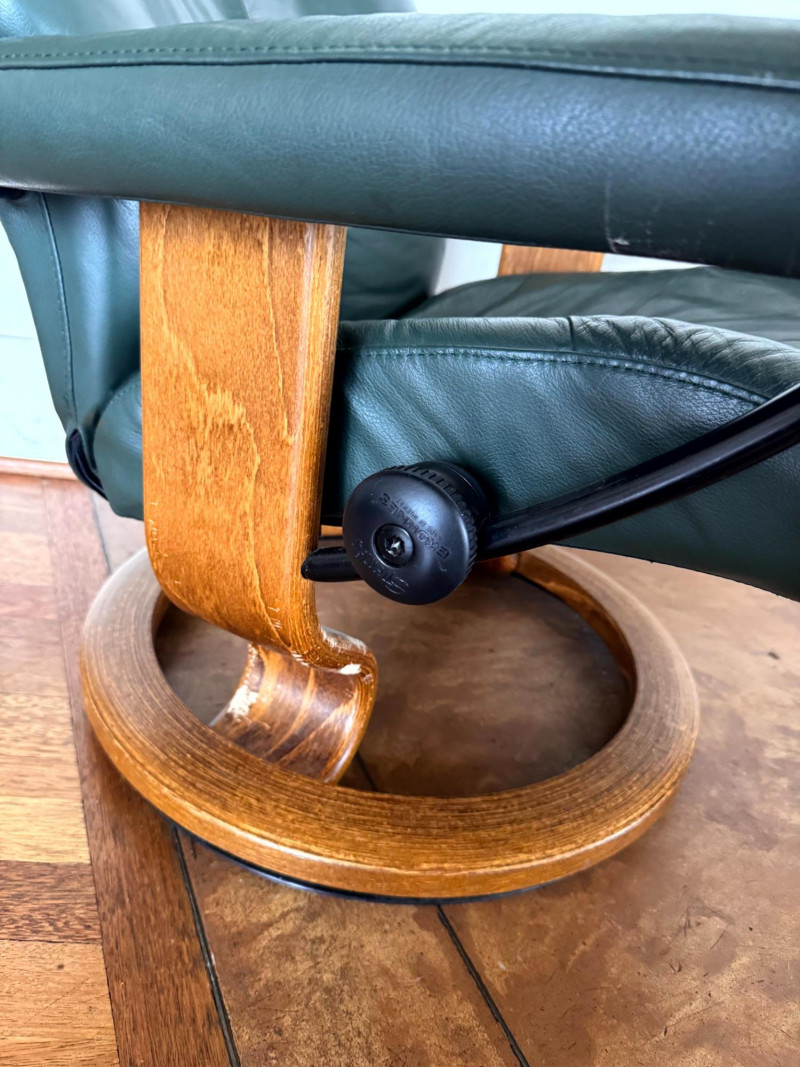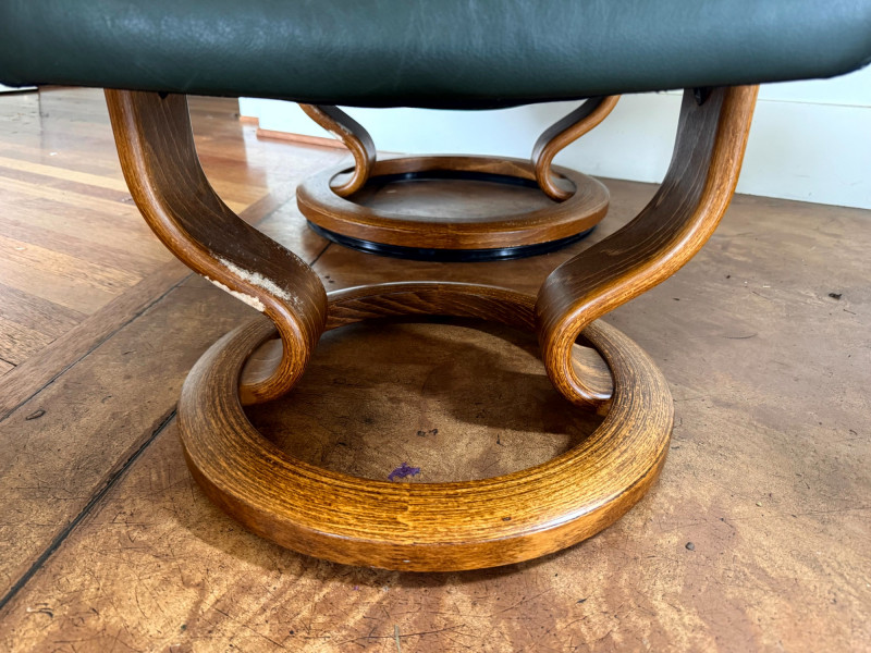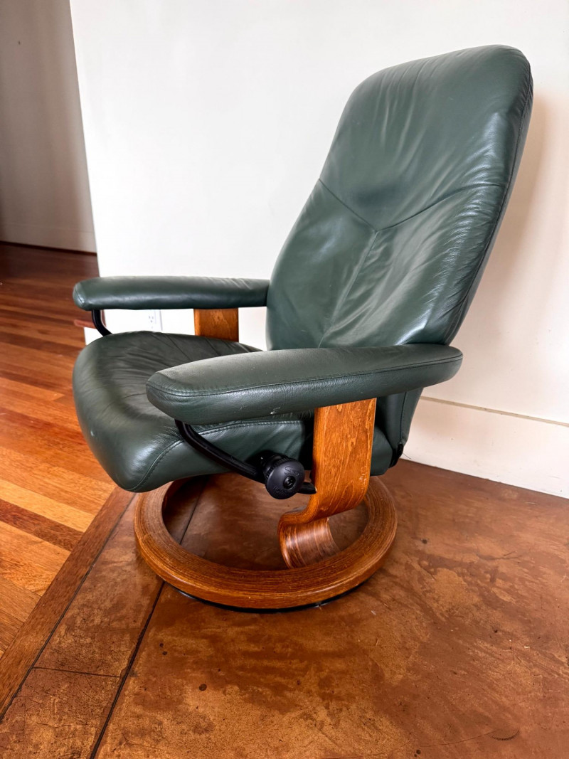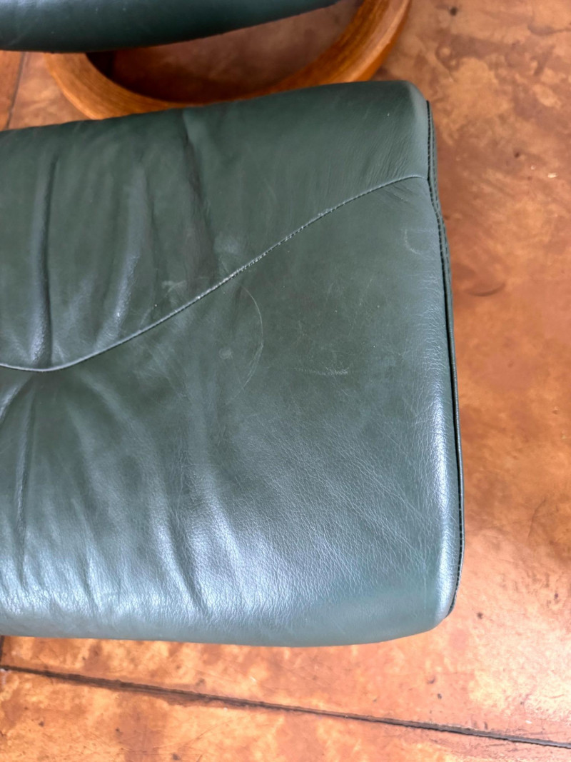 Ekornes Green Leather "Stressless" Chair & Ottoman.