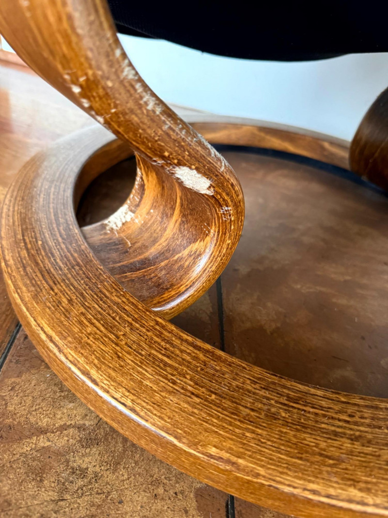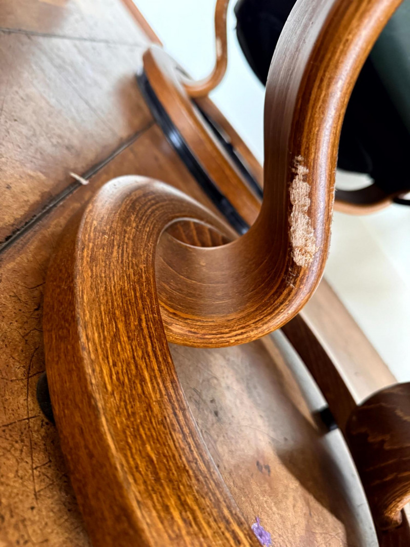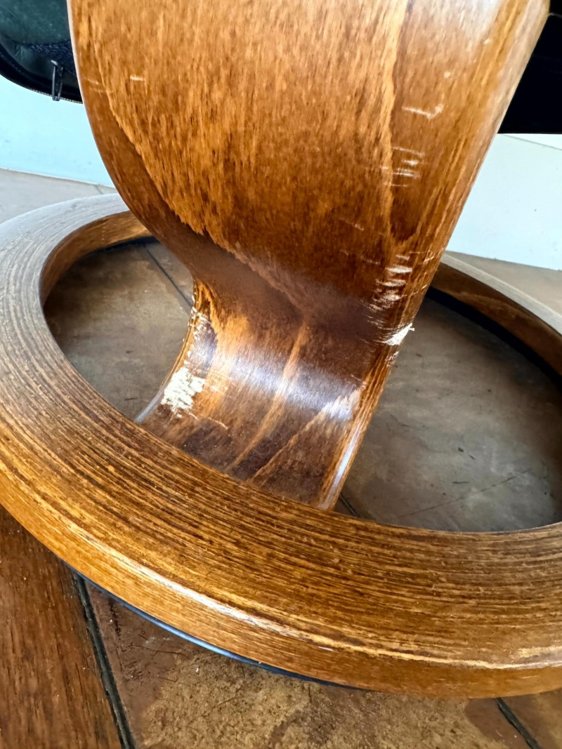 Noticeable damage to wood base (possible chew marks); cosmetic and repairable with wood filler.