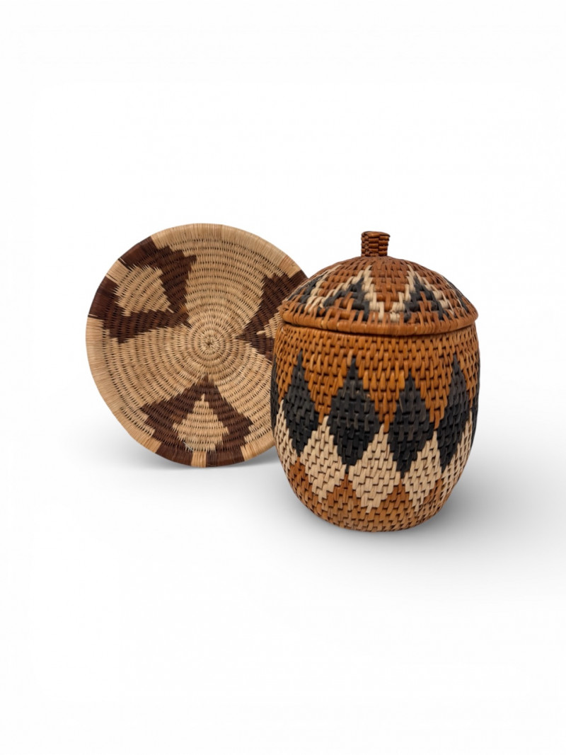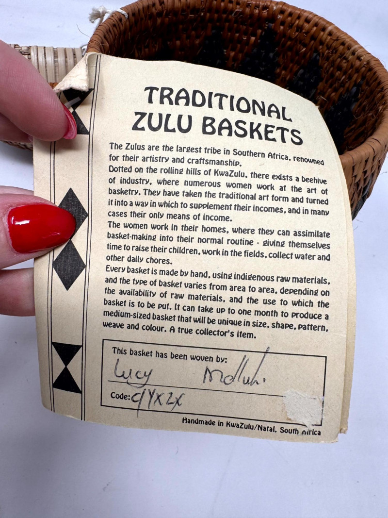 Zulu Handwoven Lidded Basket w/ Matching Saucer Tray.